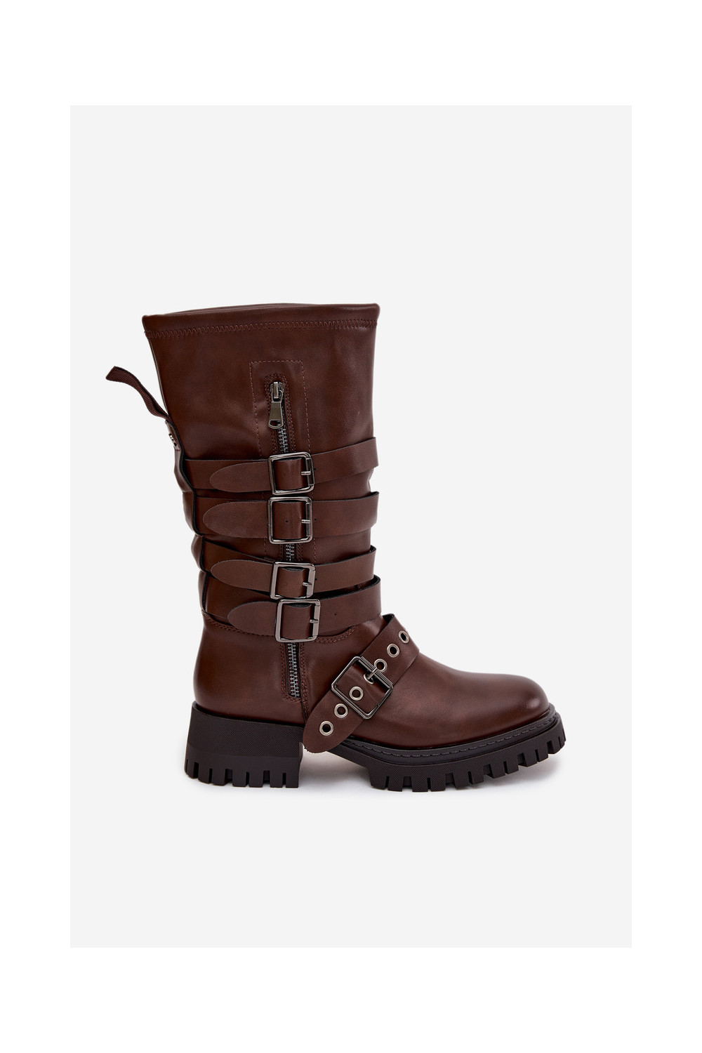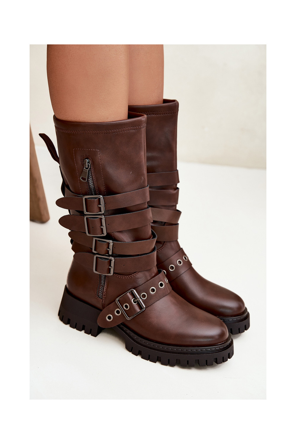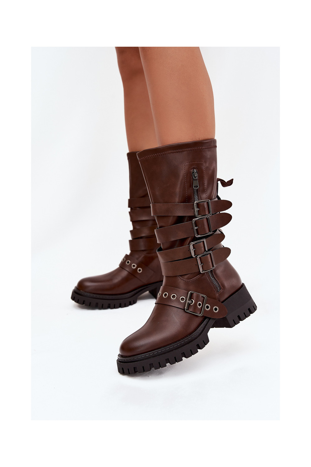 Pruun värv sooja voodriga naiste pikad saapad rihmade ja pandlitega „Ivaline"