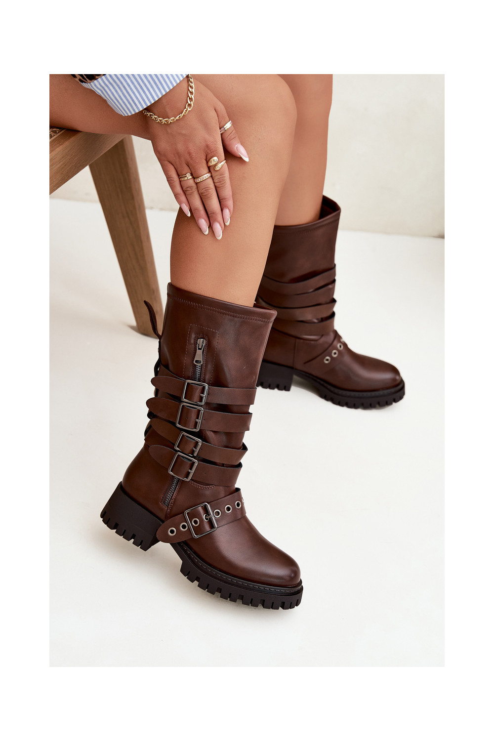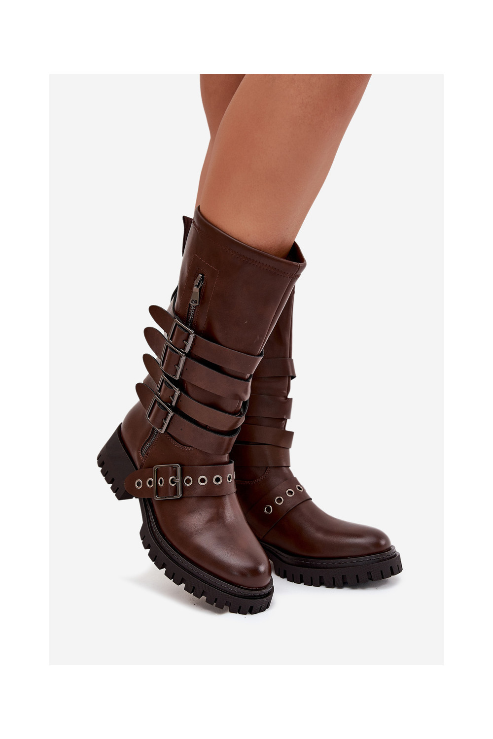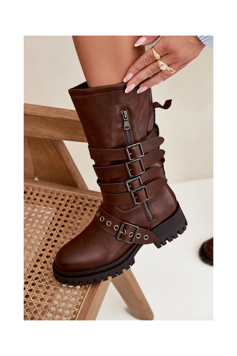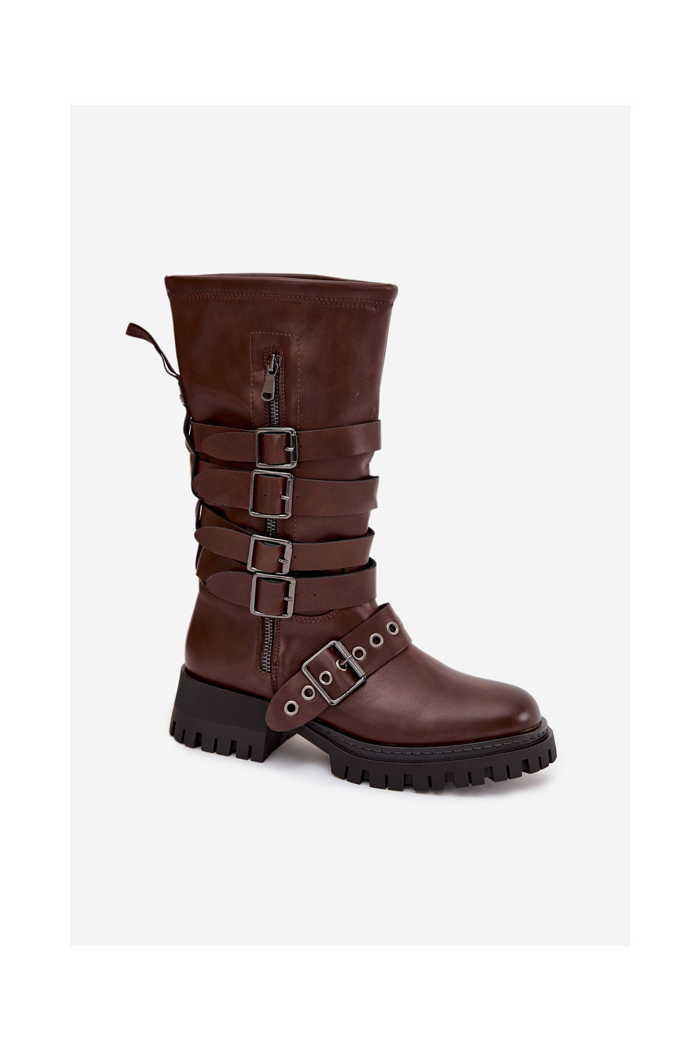 Pruun värv sooja voodriga naiste pikad saapad rihmade ja pandlitega „Ivaline"