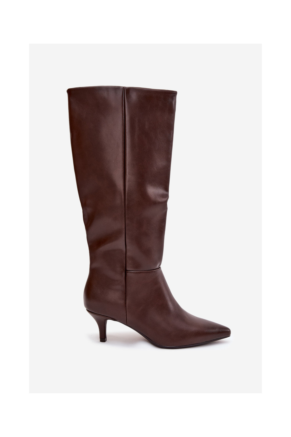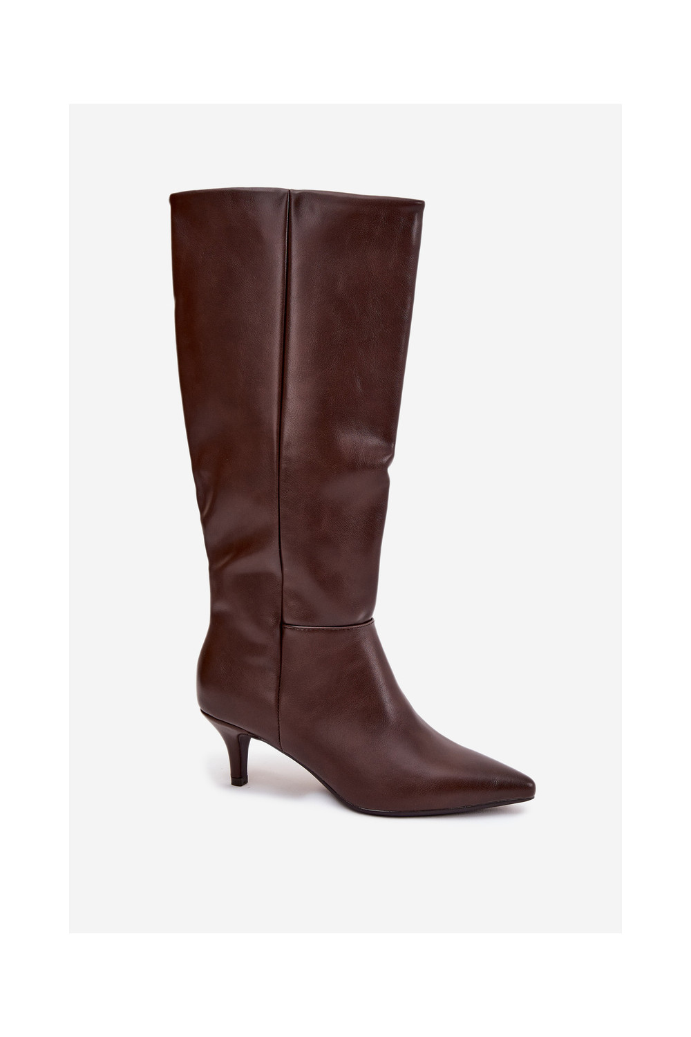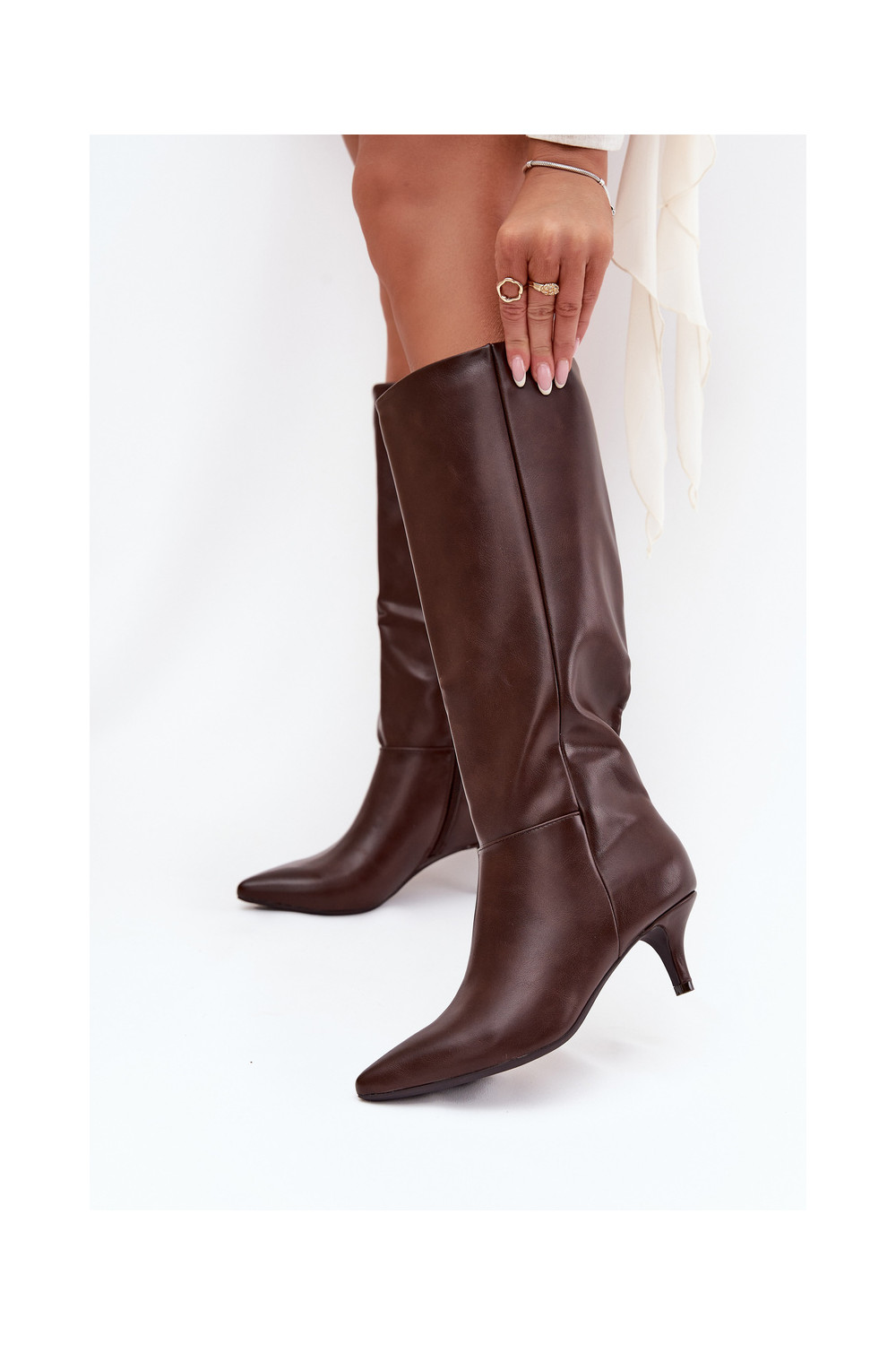 Naistel madalad kõrged saapad madalate kontsadega, soojustatud, ökokunstnahast, šokolaadi värvi, Turircellia