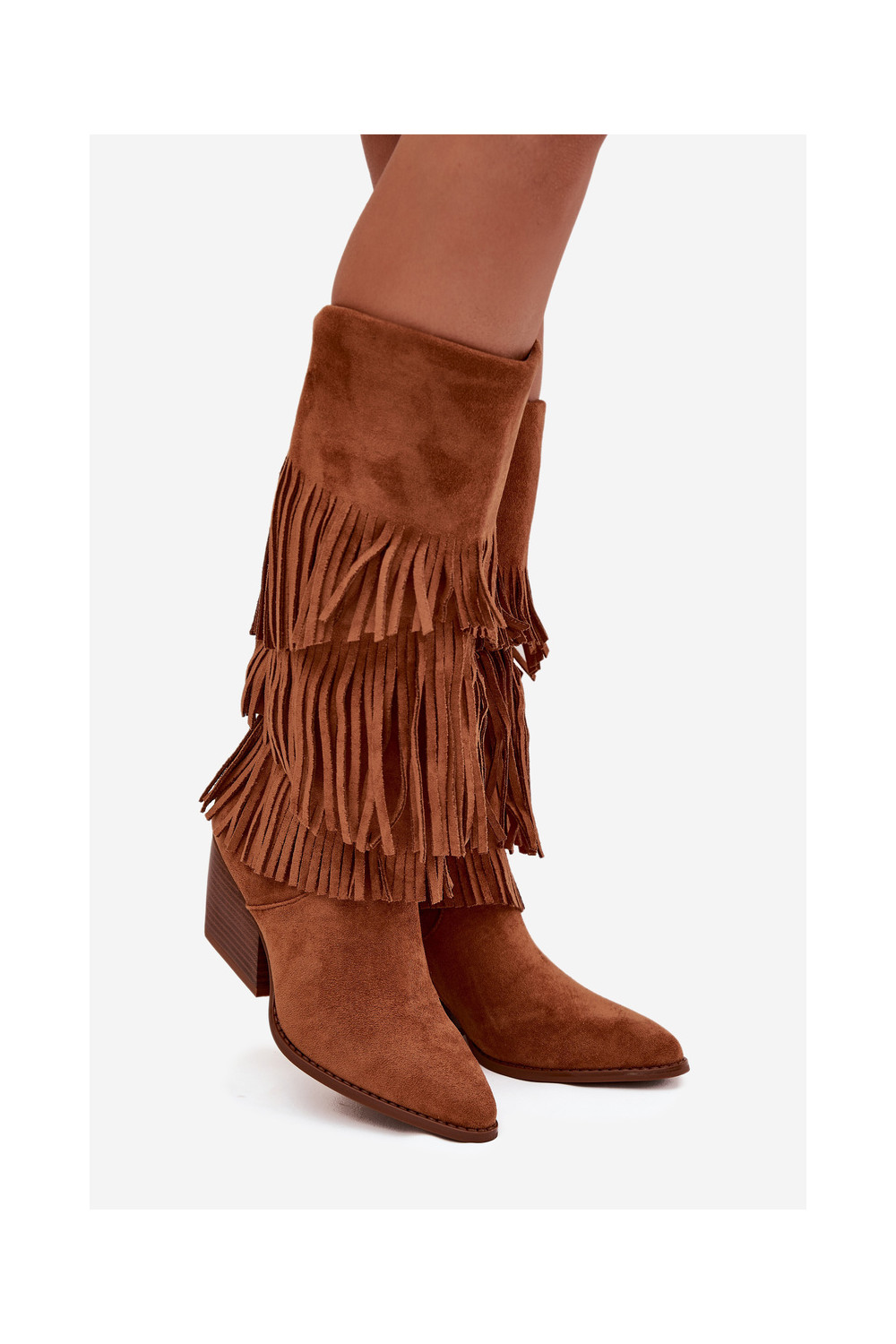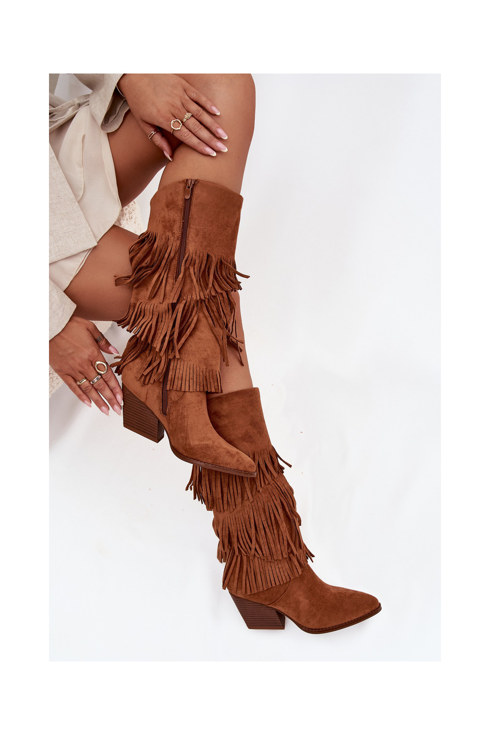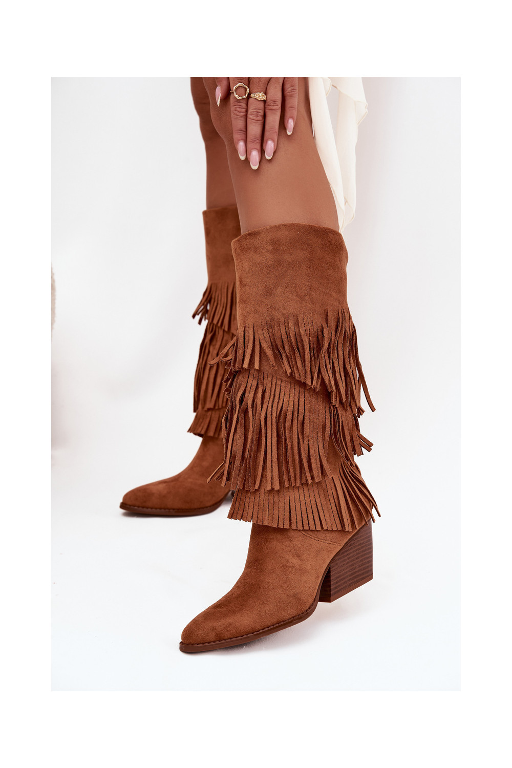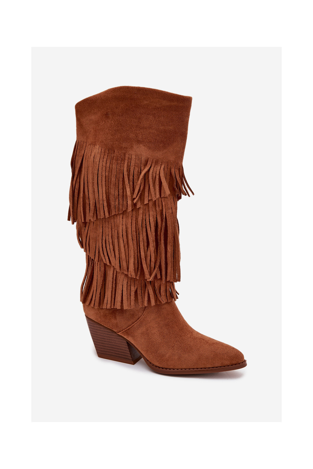 Brivina soojendatud pikad kauboisaapad kutidega pruuni värvi