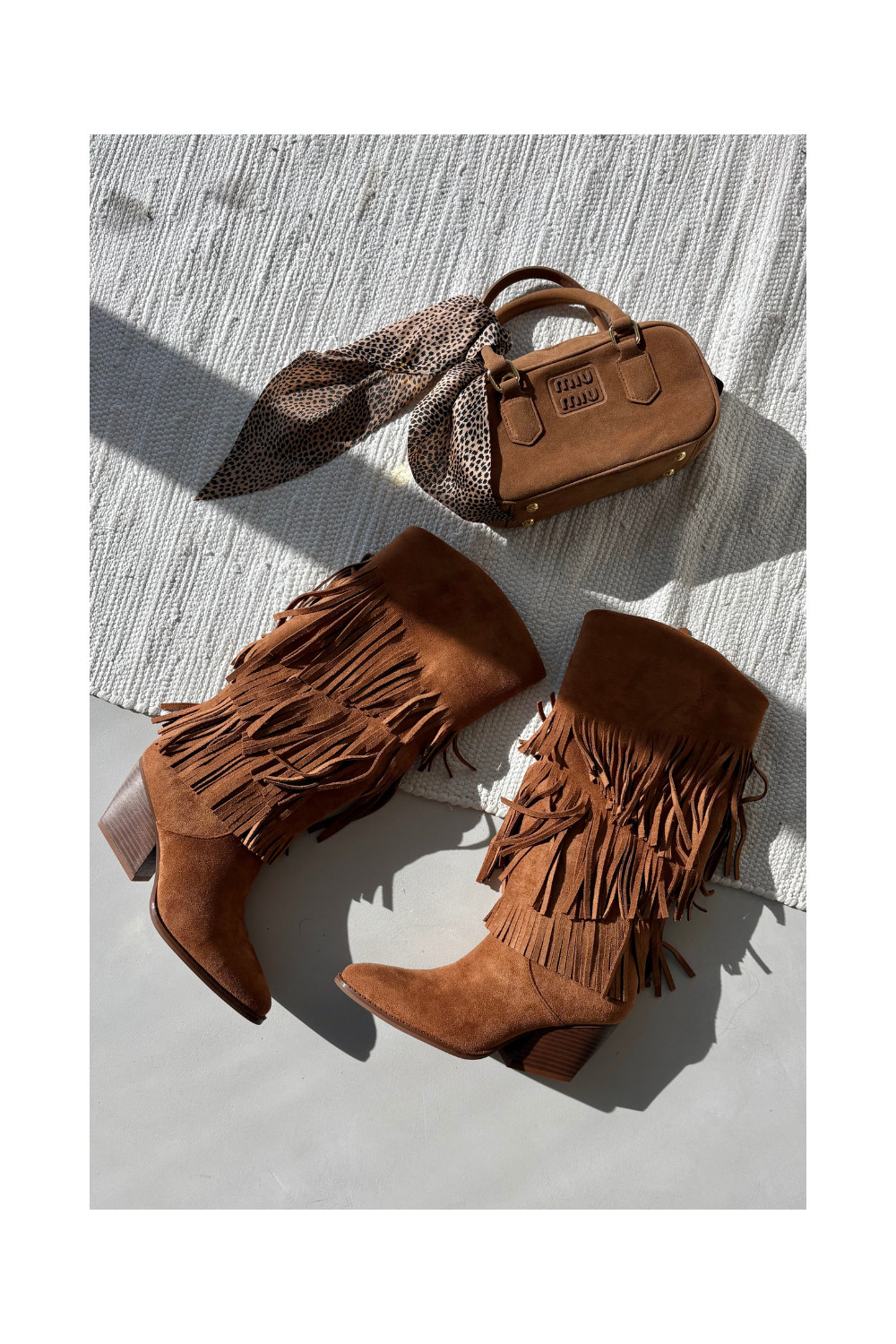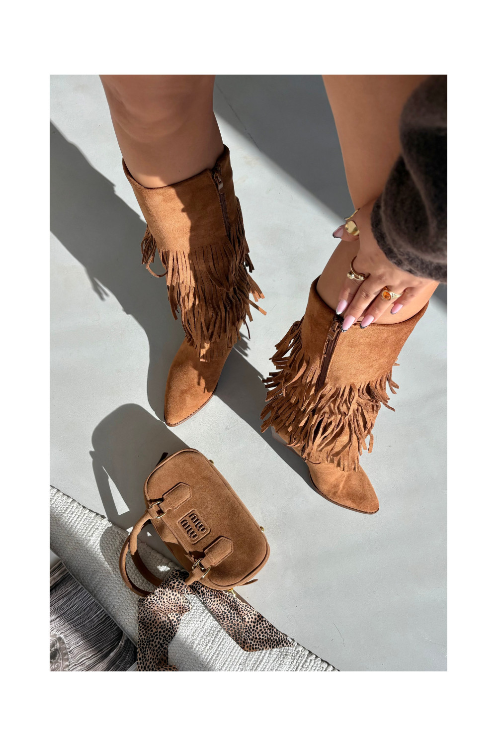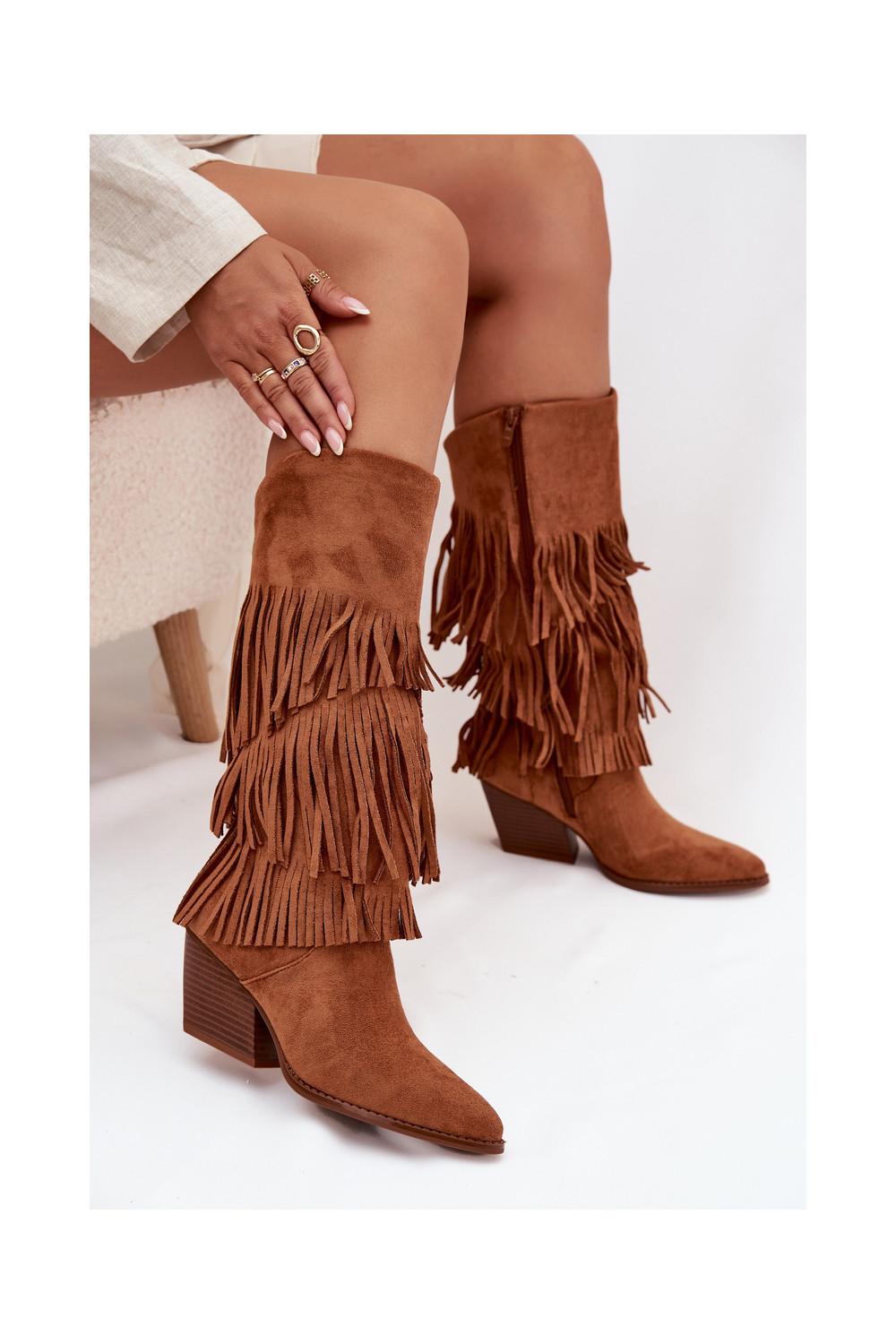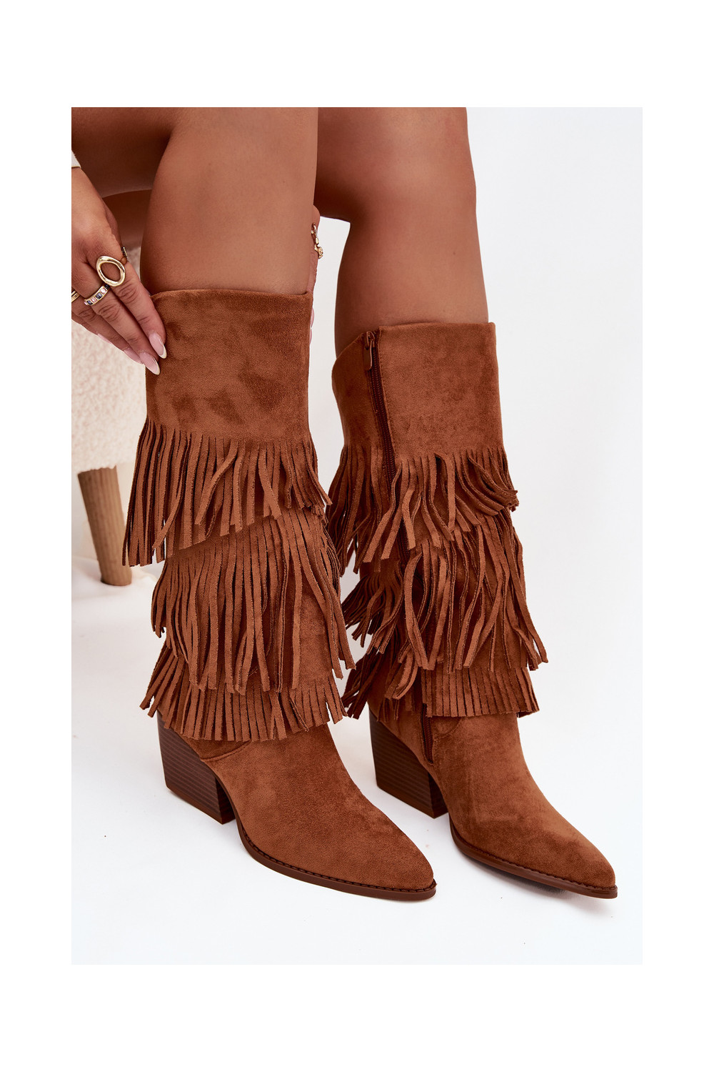 Brivina soojendatud pikad kauboisaapad kutidega pruuni värvi