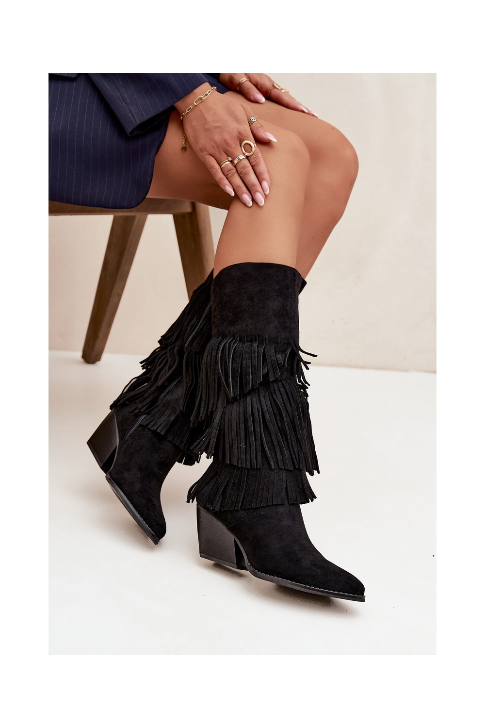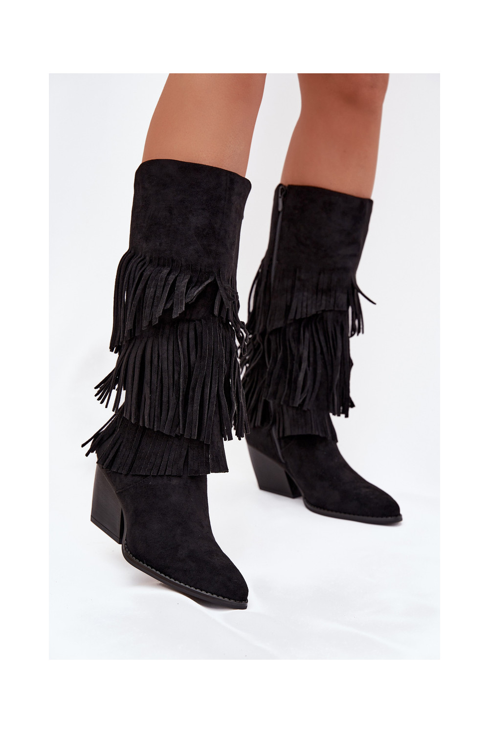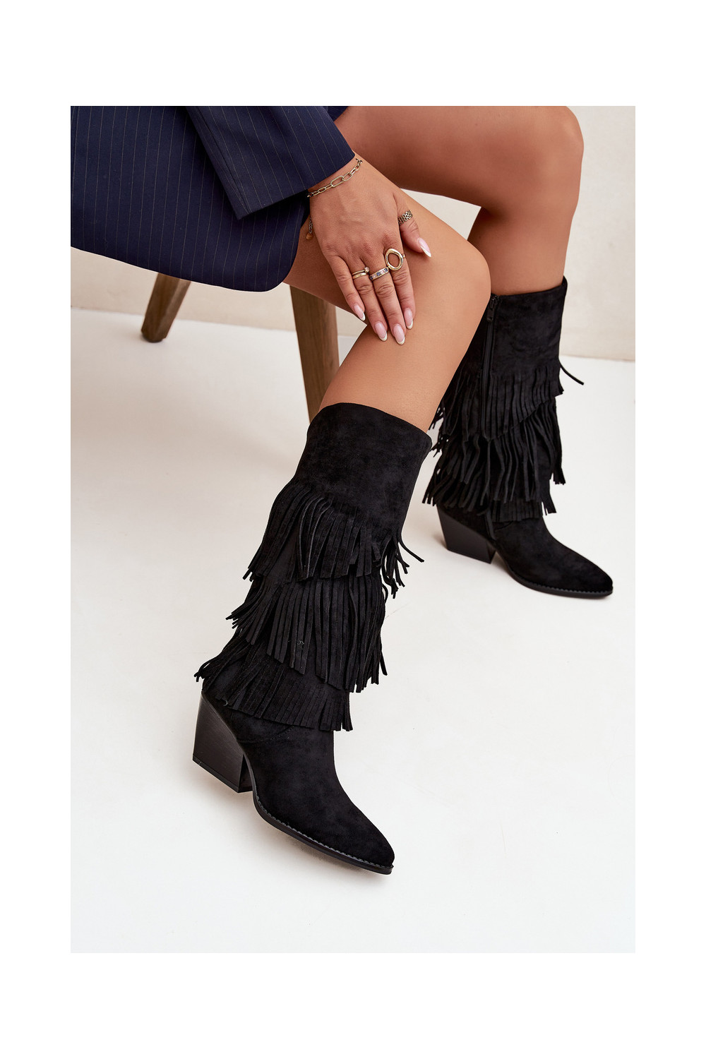 Soojad mustad kauboi stiilis pikad saapad kutidega, Brivina