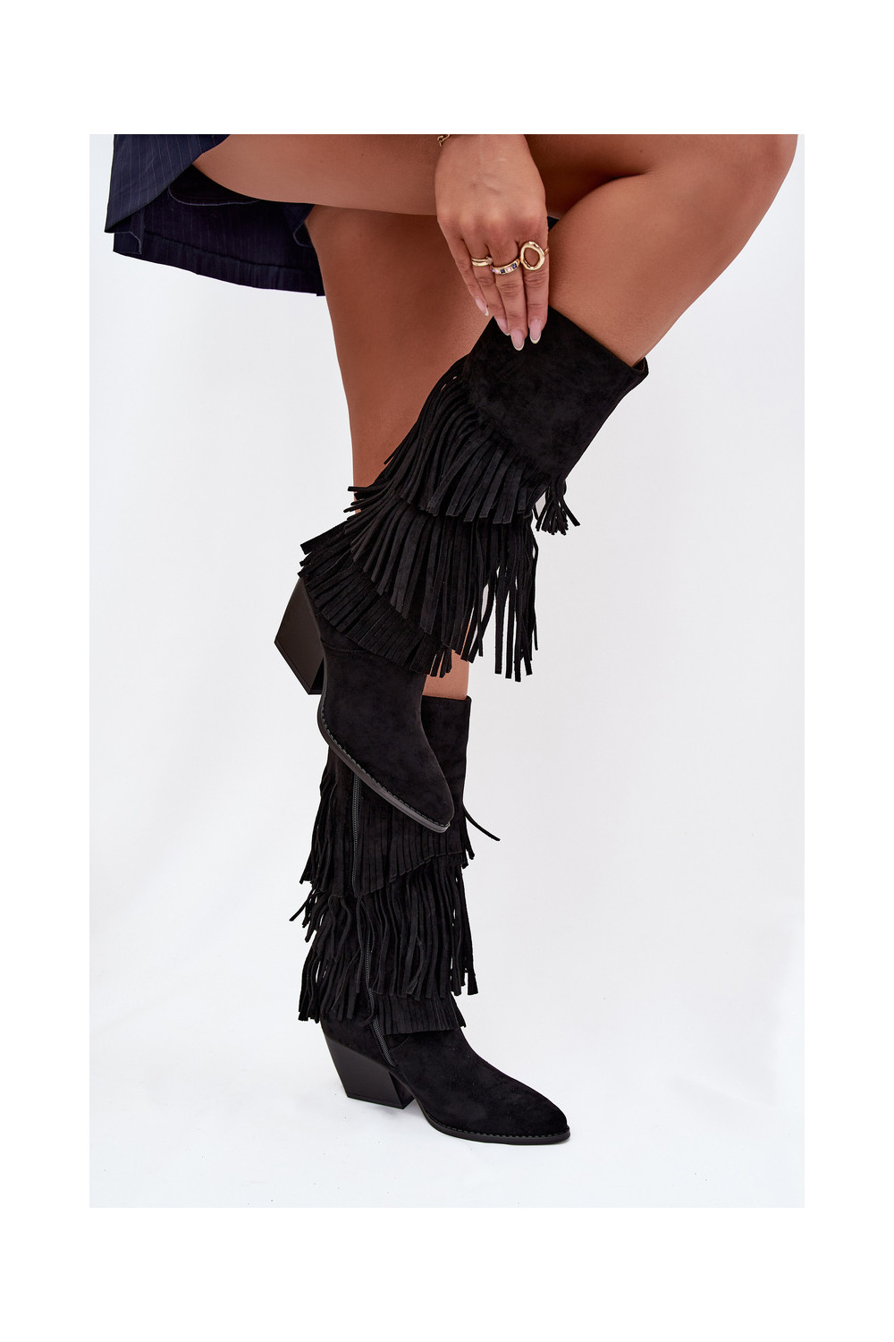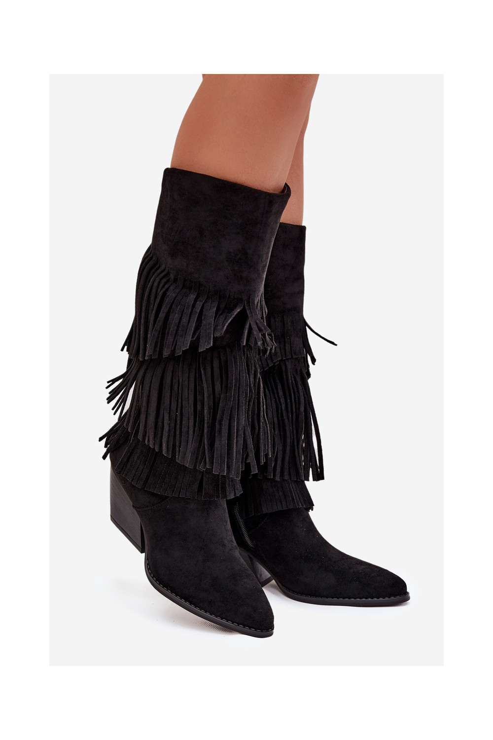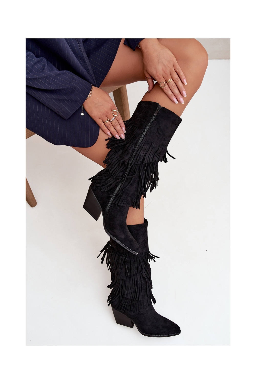 Soojad mustad kauboi stiilis pikad saapad kutidega, Brivina