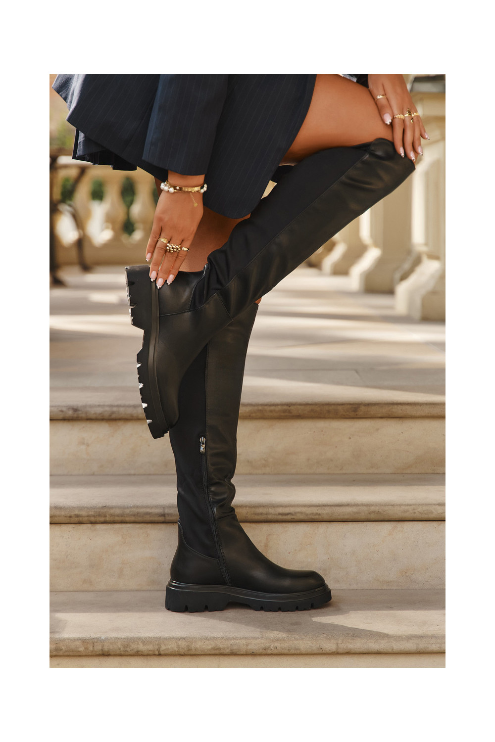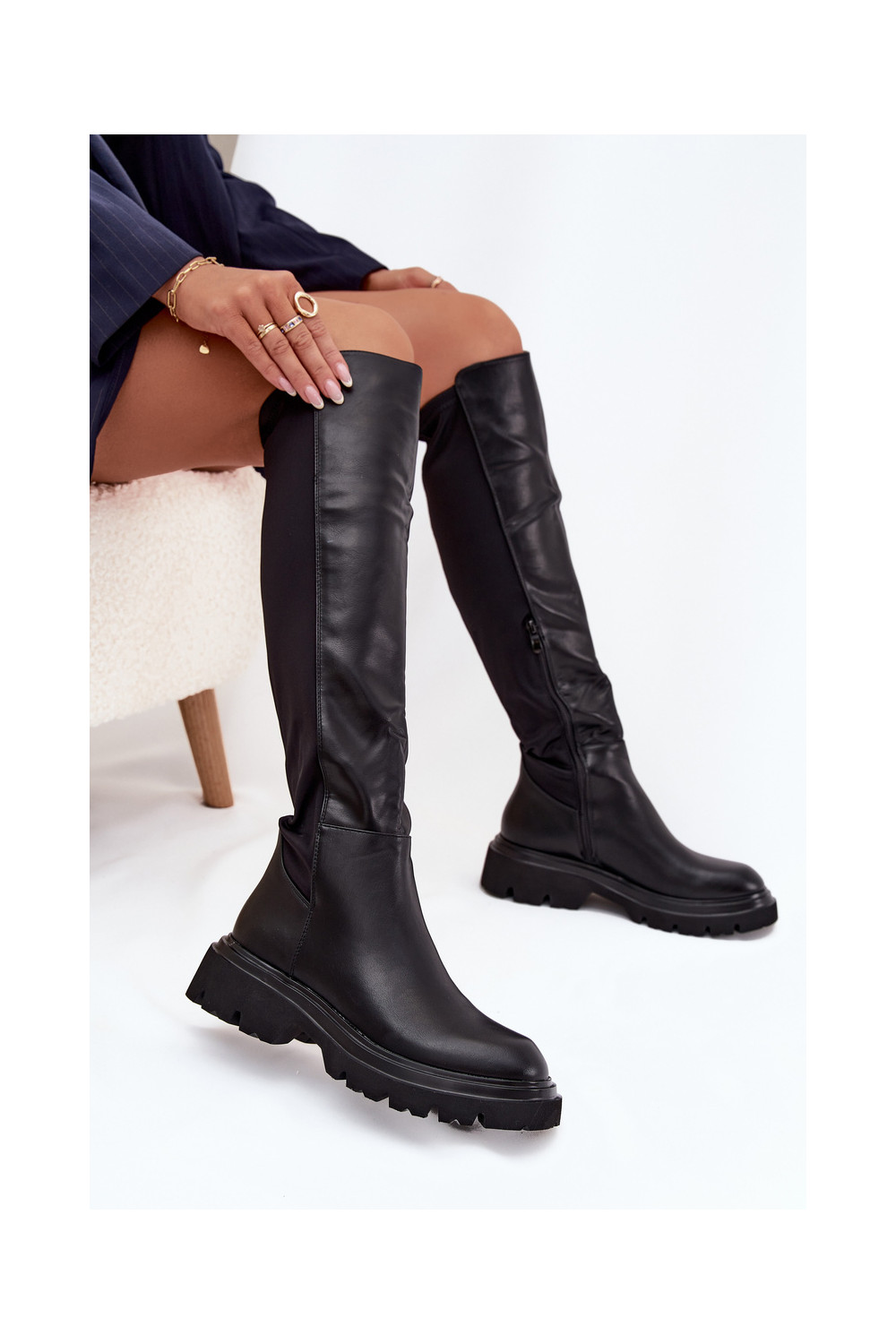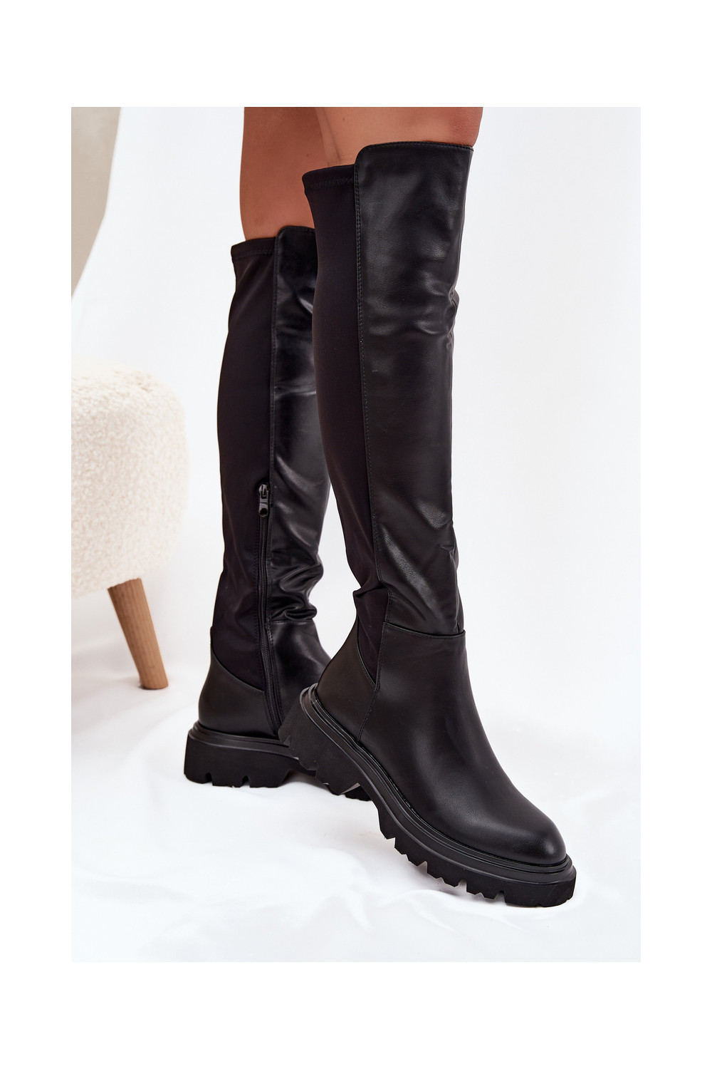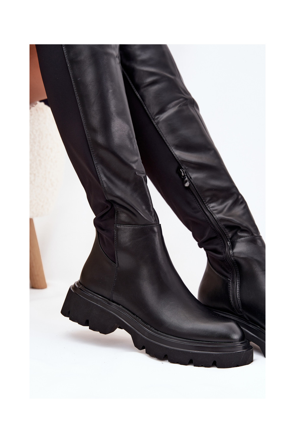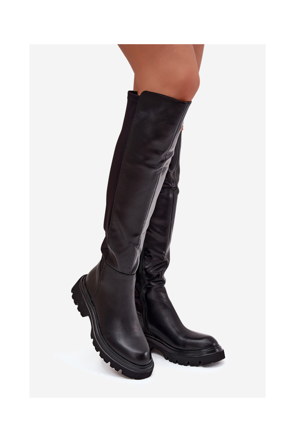 Sisetallaga naiste pikad saapad eko nahast, musta värvi, Sylvina