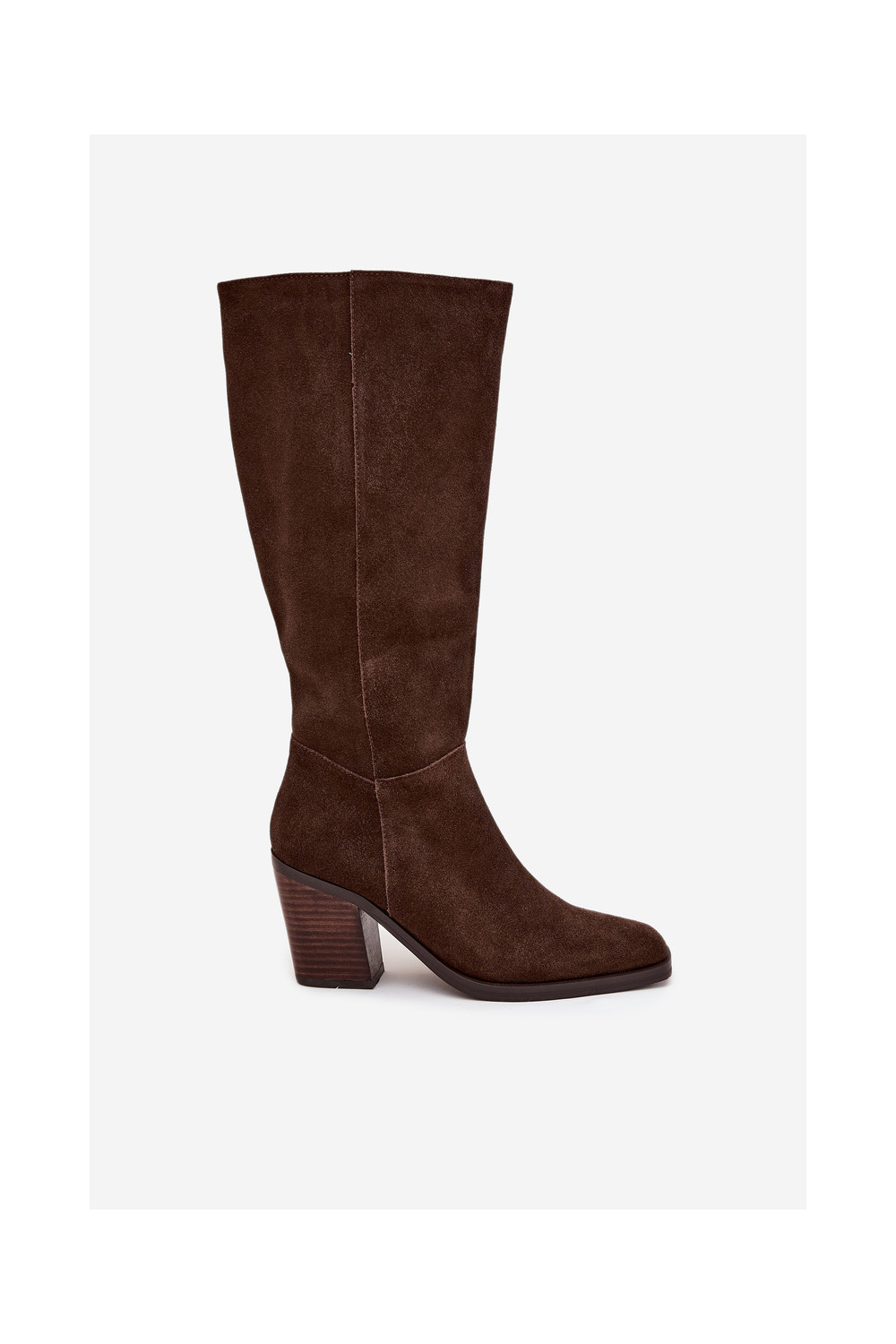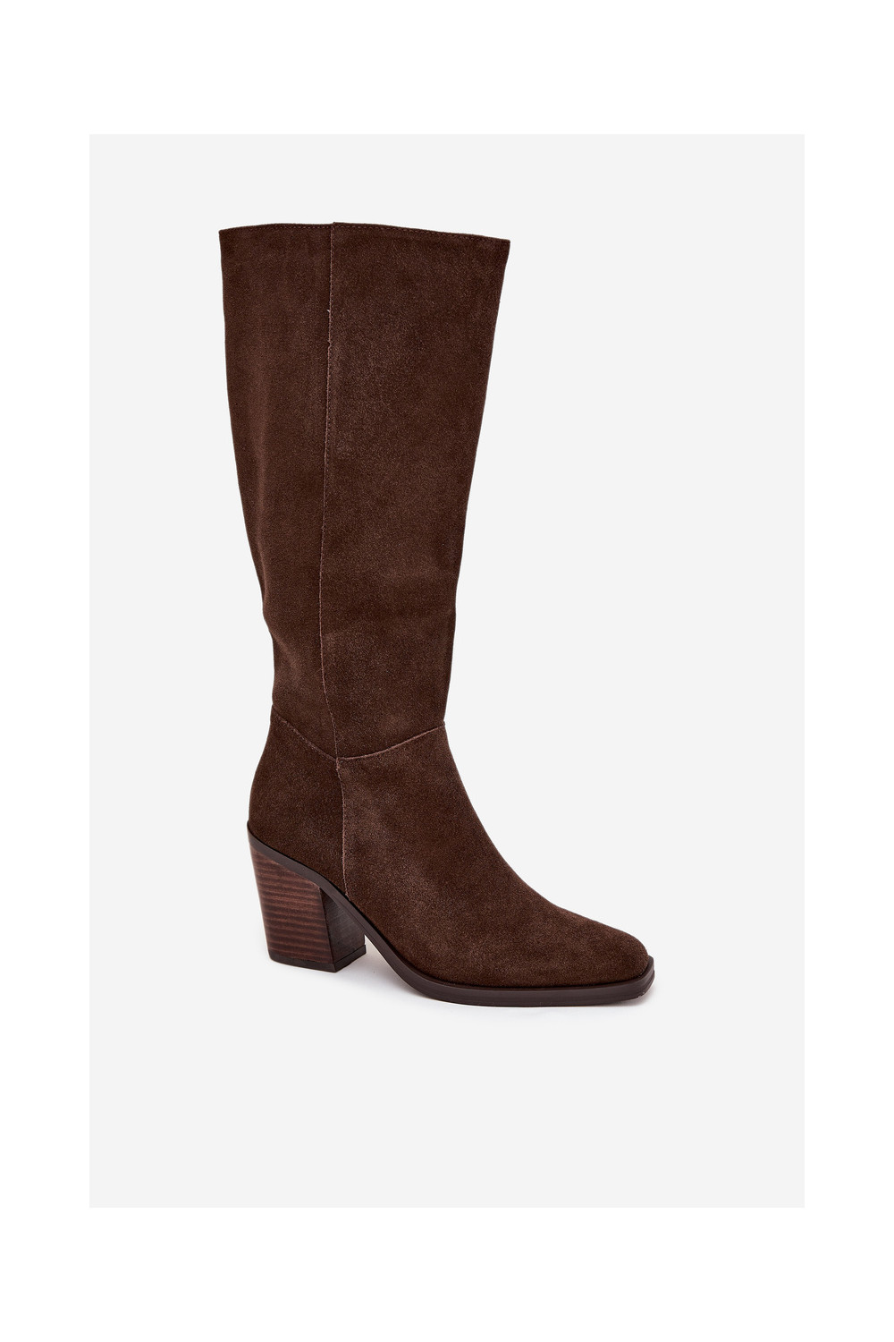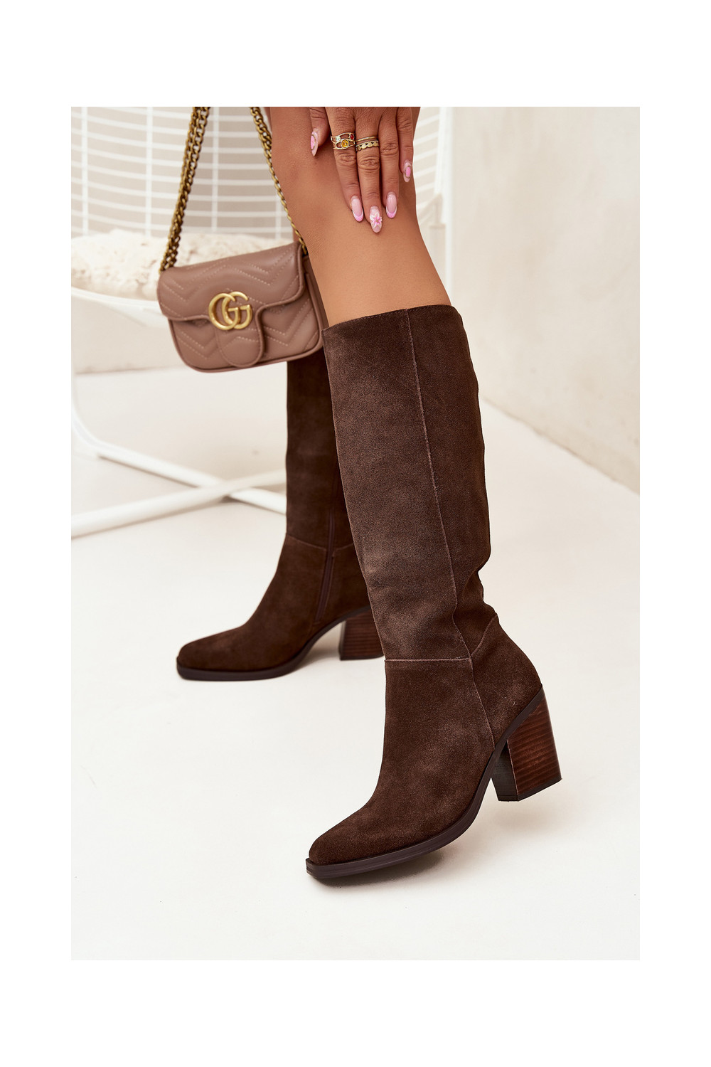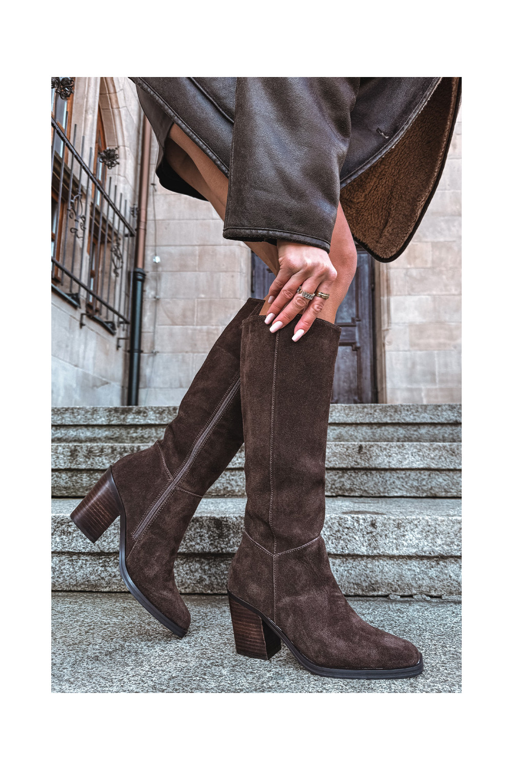 Naistele pikad sametist saapad kontsade ja lukuga, šokolaadi, Lissara