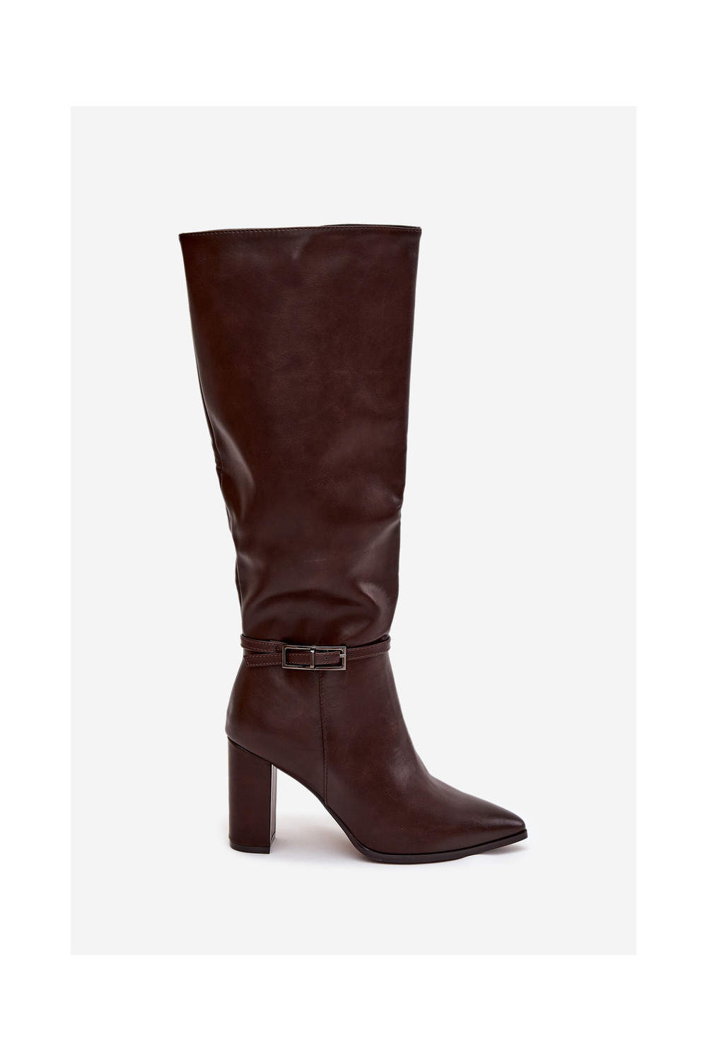 Soe pikad saapad kontsade ja pandlatega, šokolaadi, Fionelle