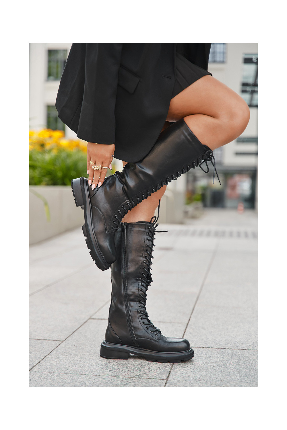 Pikad kummikud naistele, soojendatud, ökoloogilisest nahast, must, Selvina