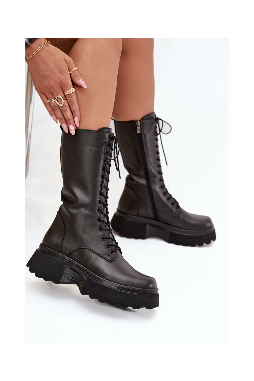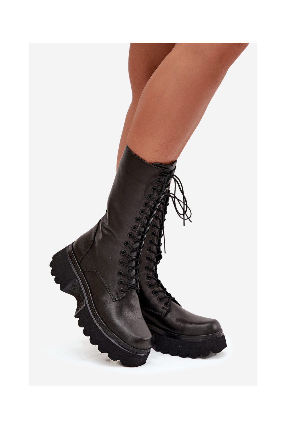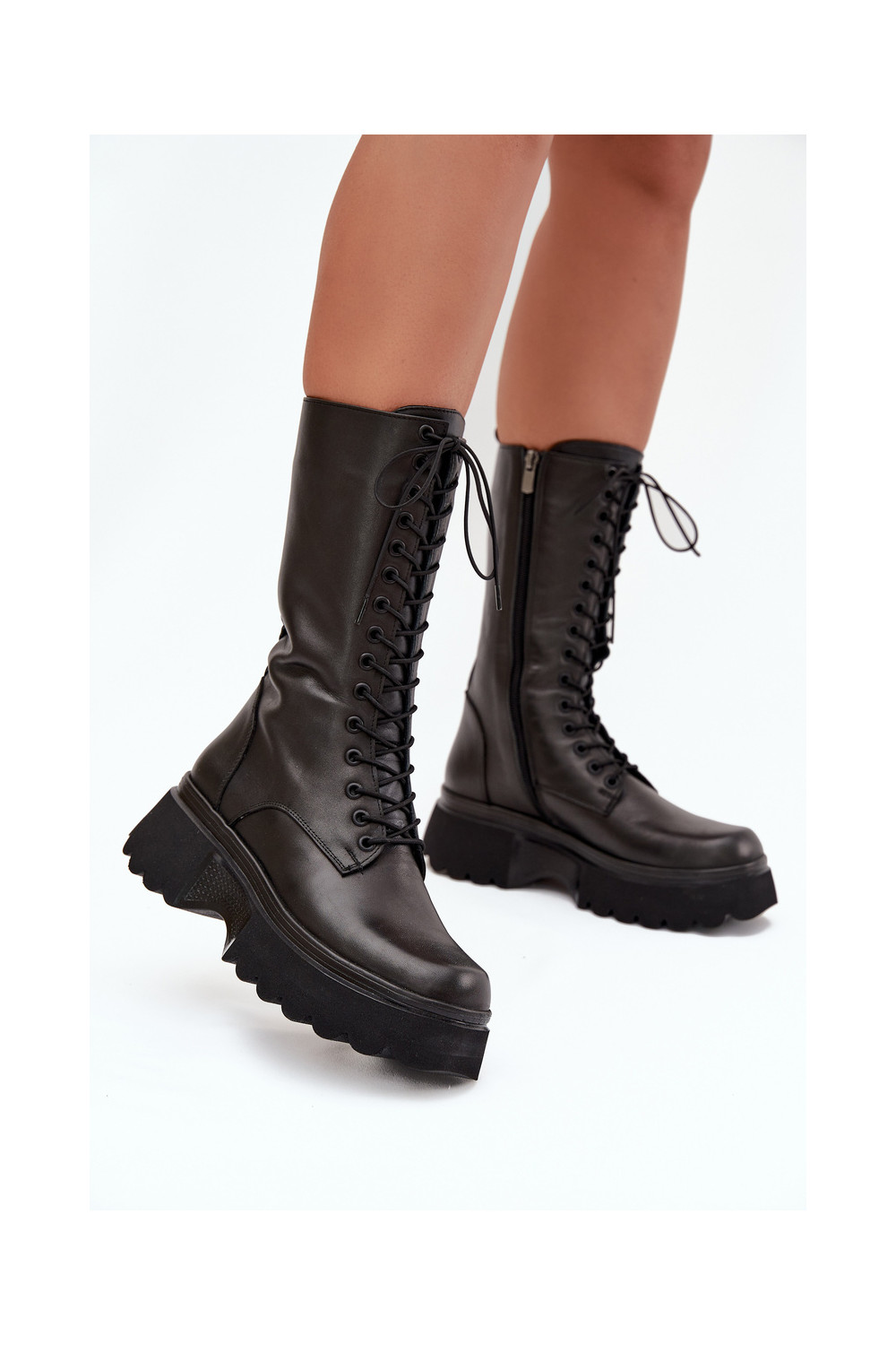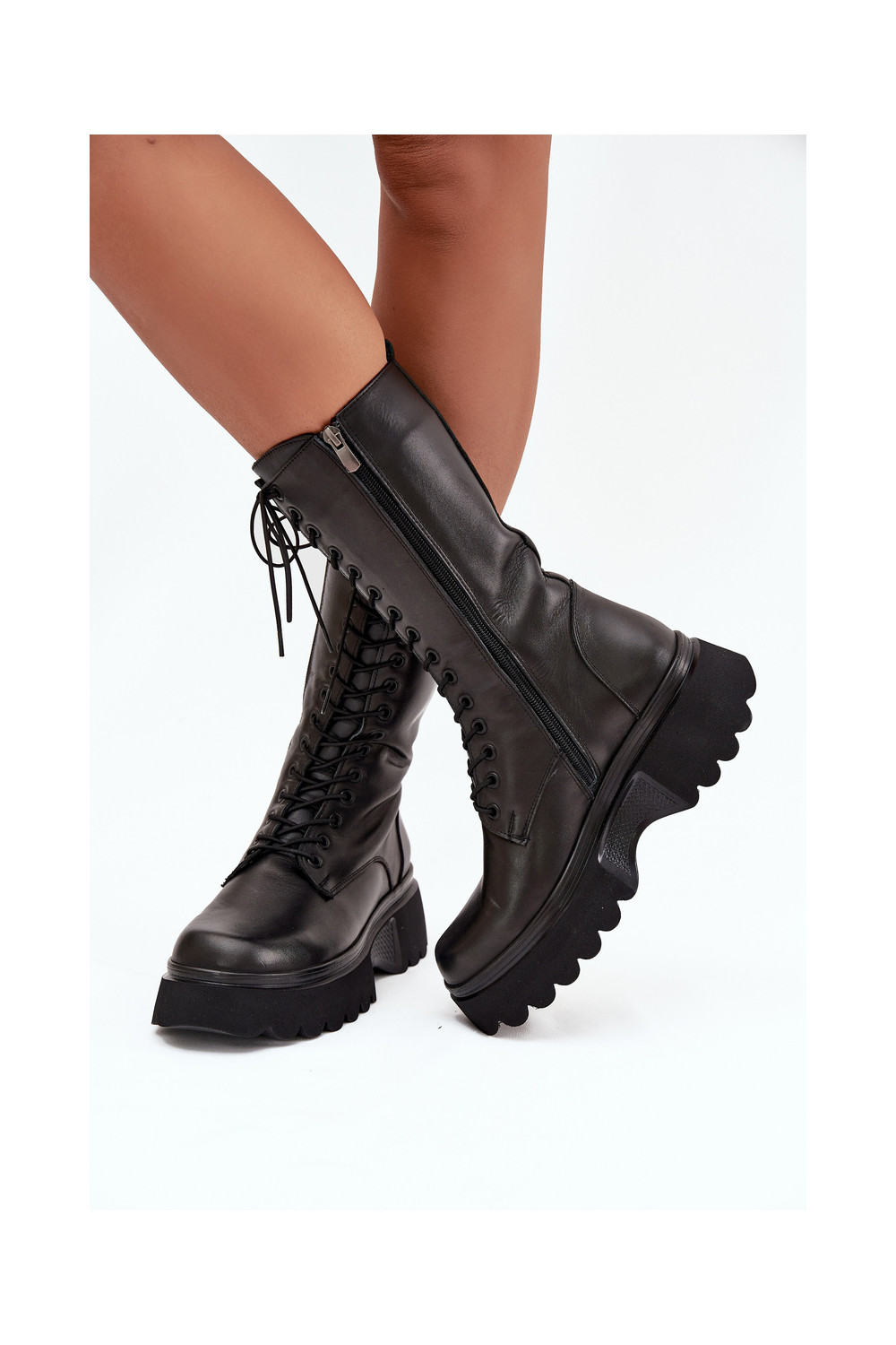 Mustad nahksed soojad kõrged saapad platvormiga Artiker 57C2282