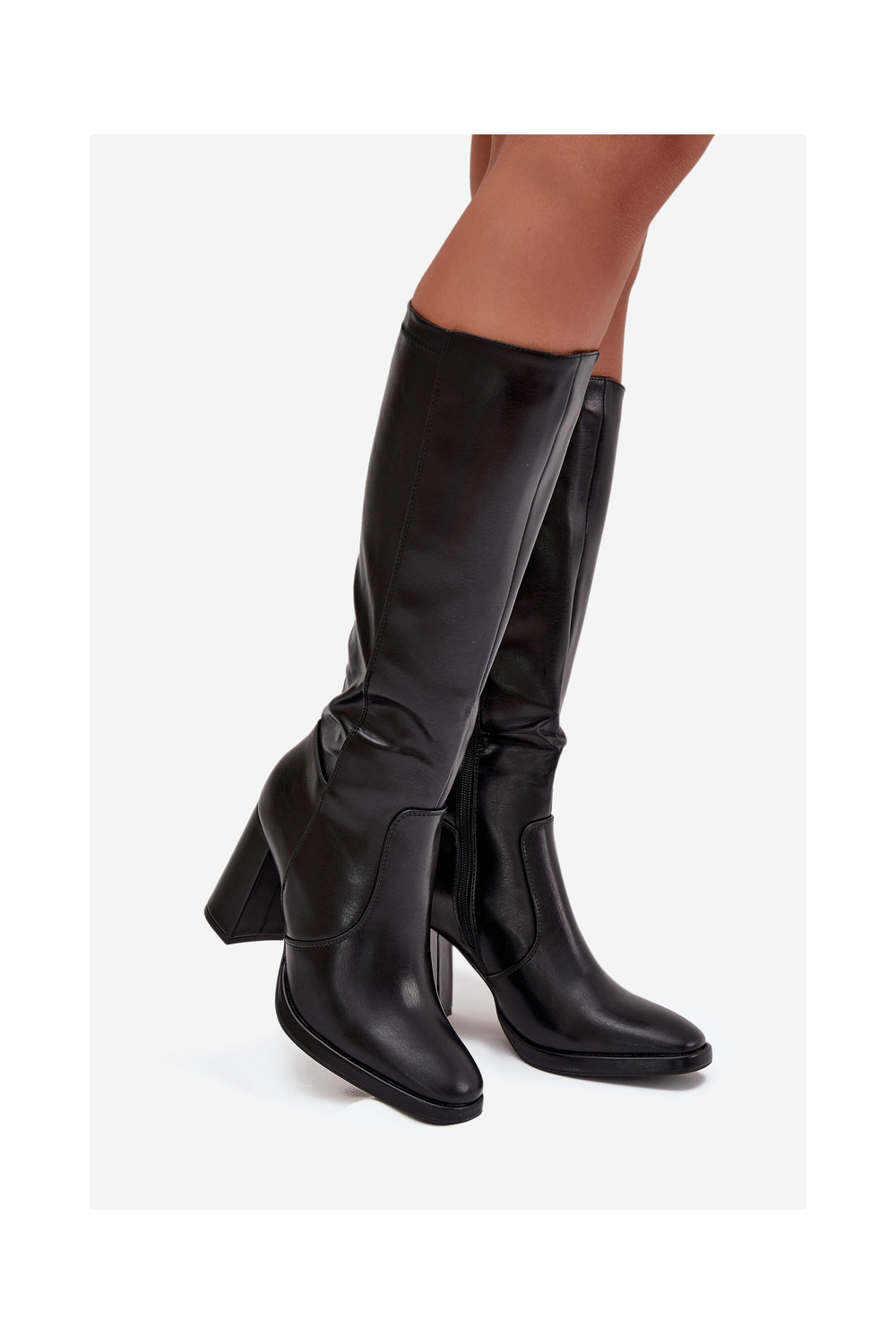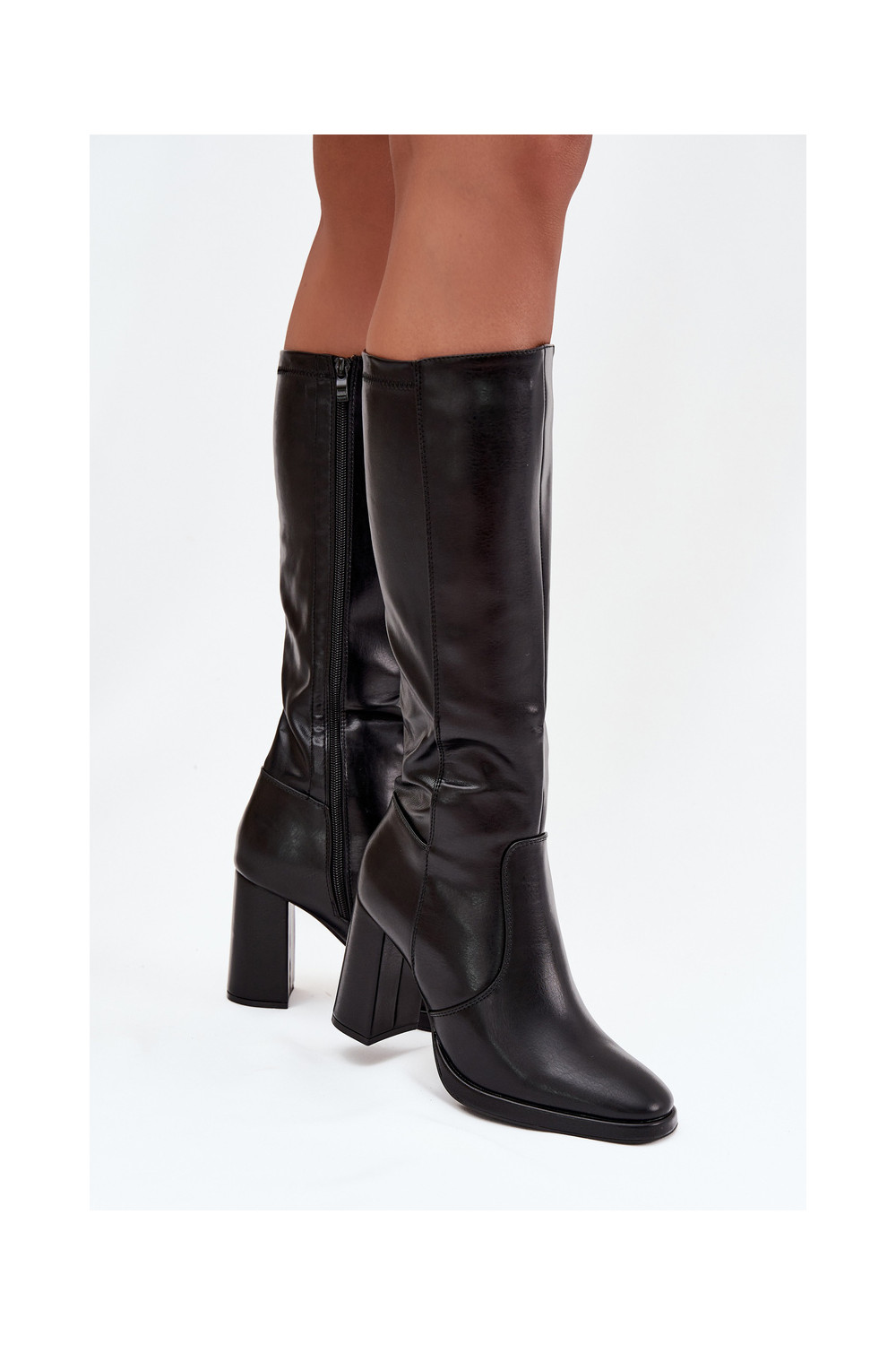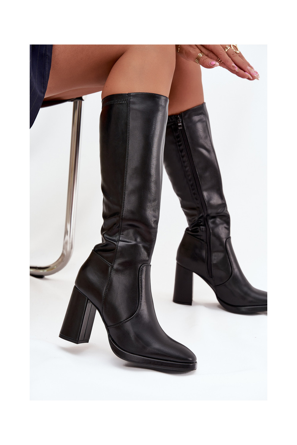 Mustad naiste soojad kõrged saapad kontsadega ökotehnoloogiast Lyvella