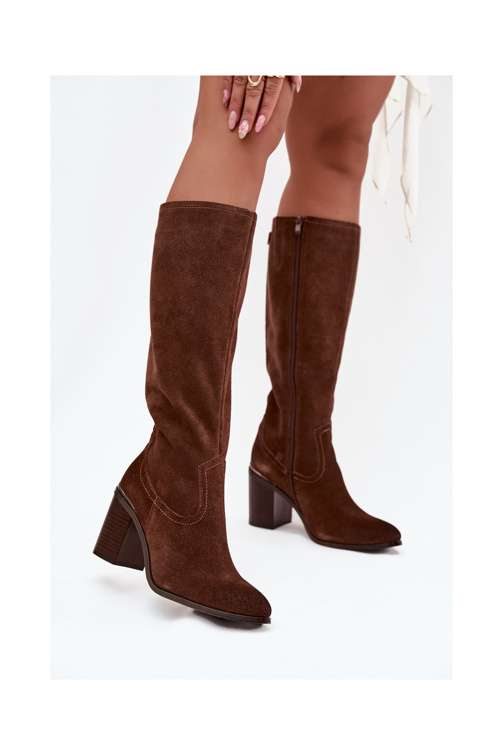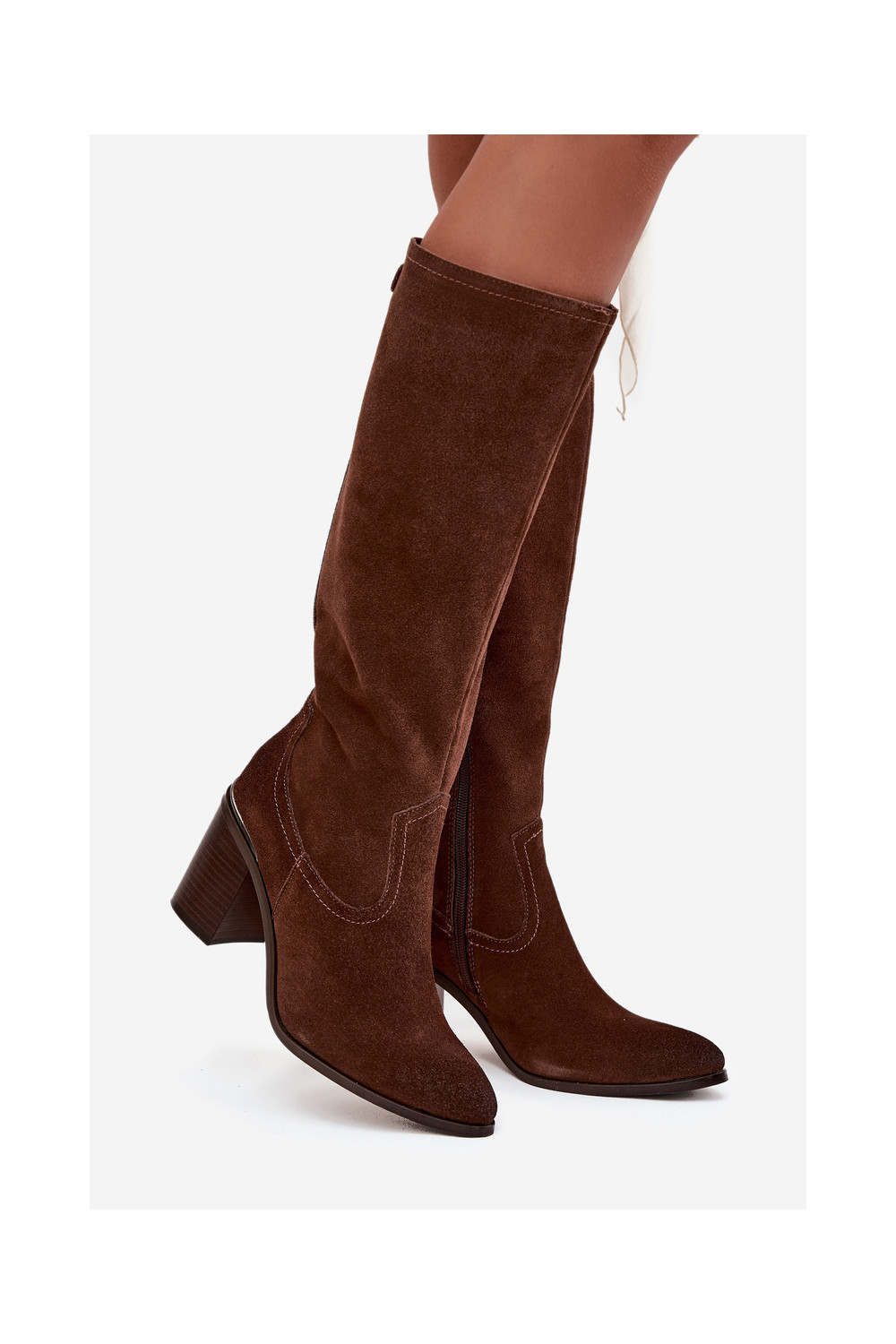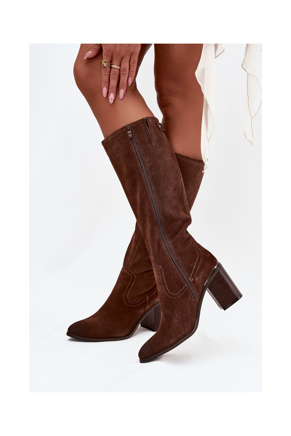 Naisteriiklikud pikad saapad naturaalsetest sametist, soojustatud Sergio Leone KZ25668-S pruunid