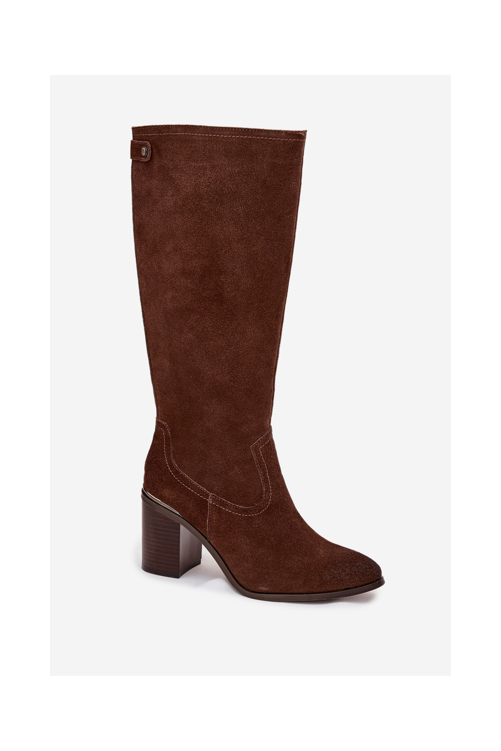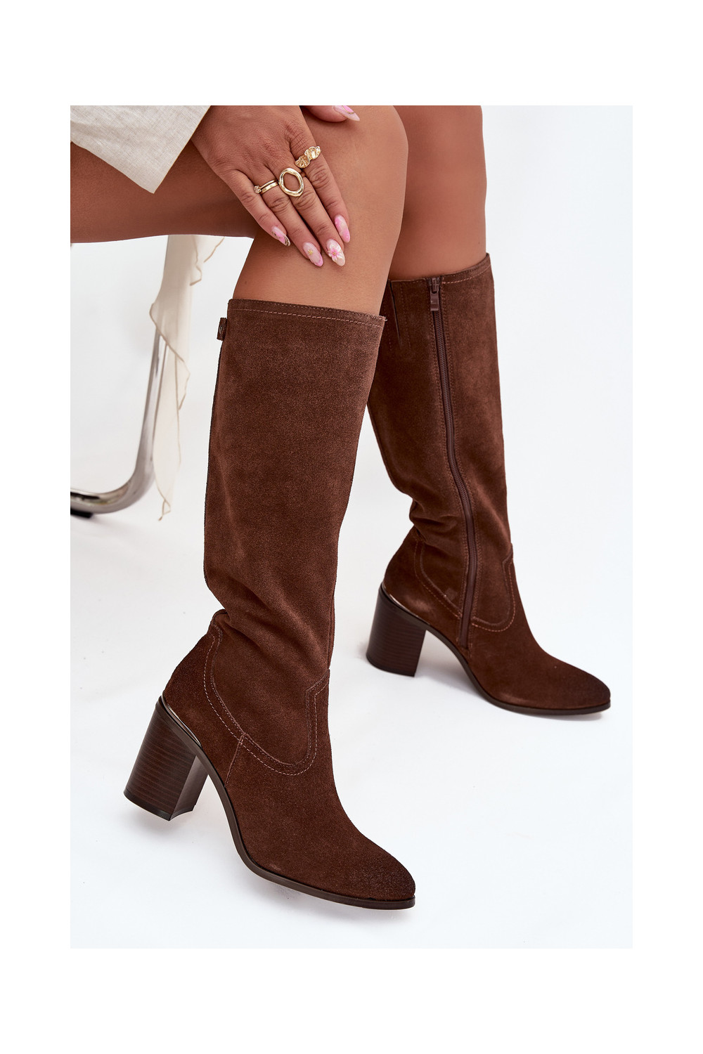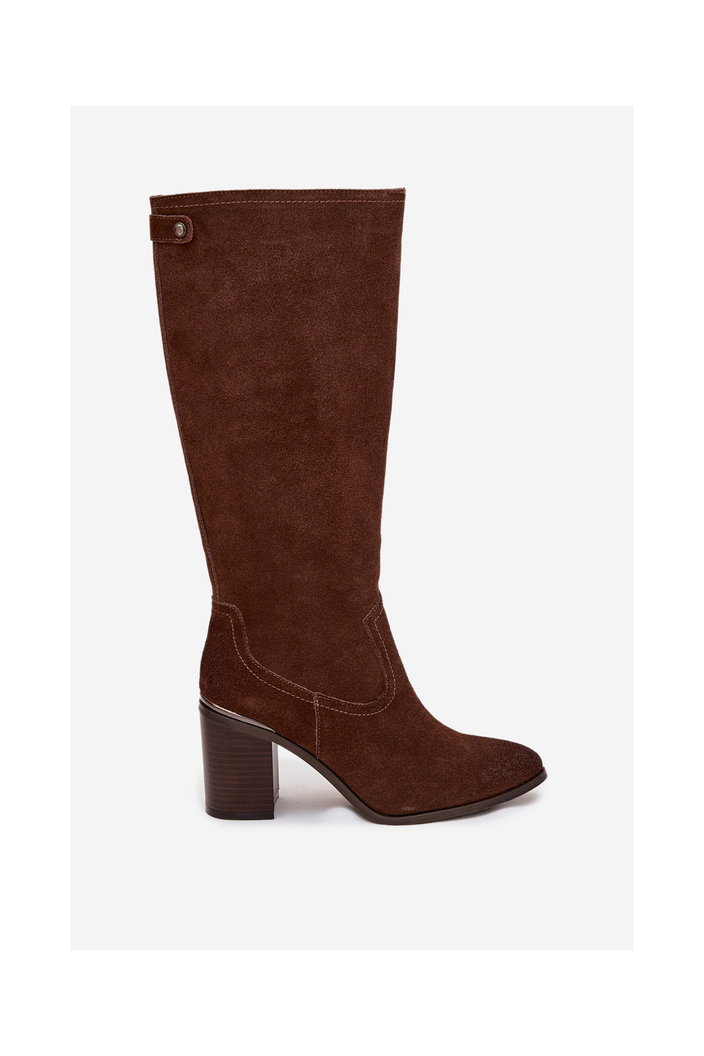 Naisteriiklikud pikad saapad naturaalsetest sametist, soojustatud Sergio Leone KZ25668-S pruunid