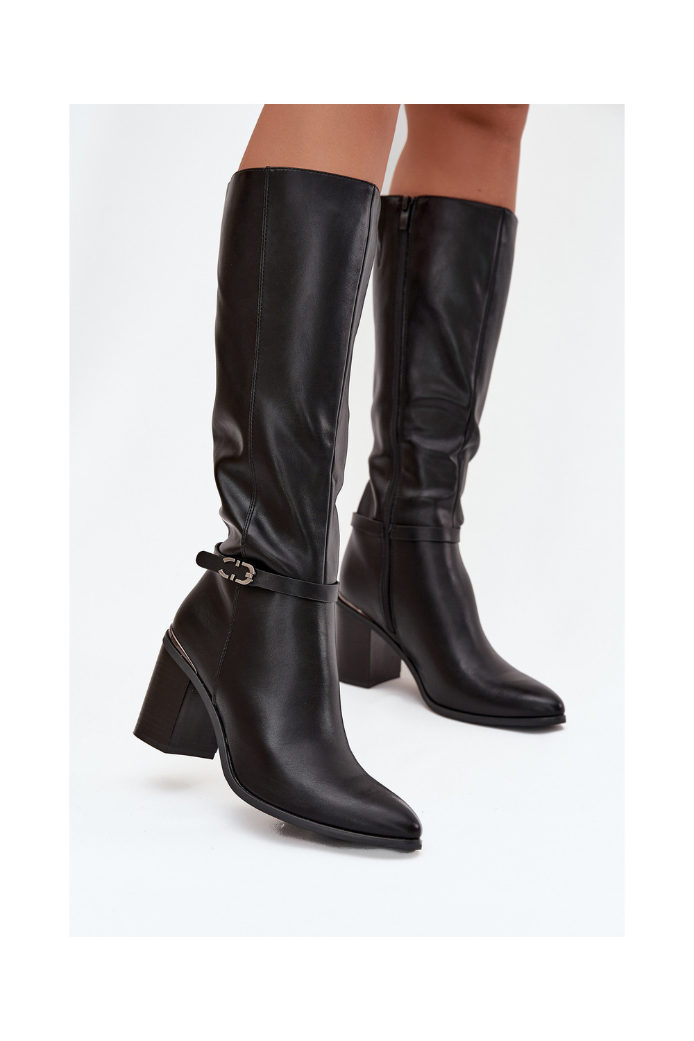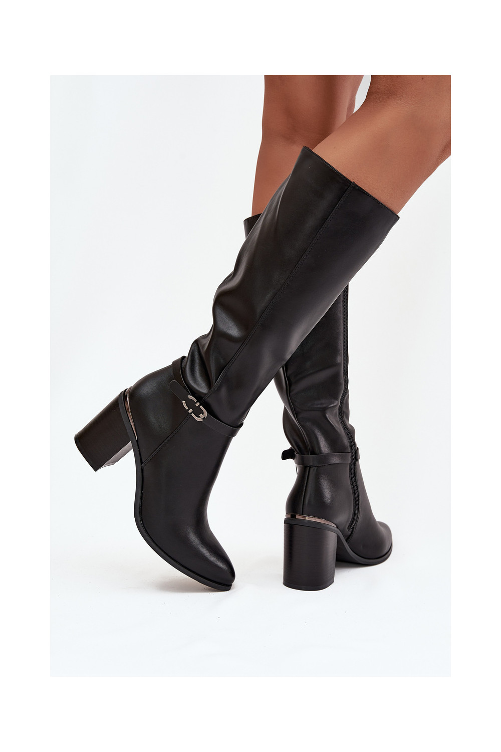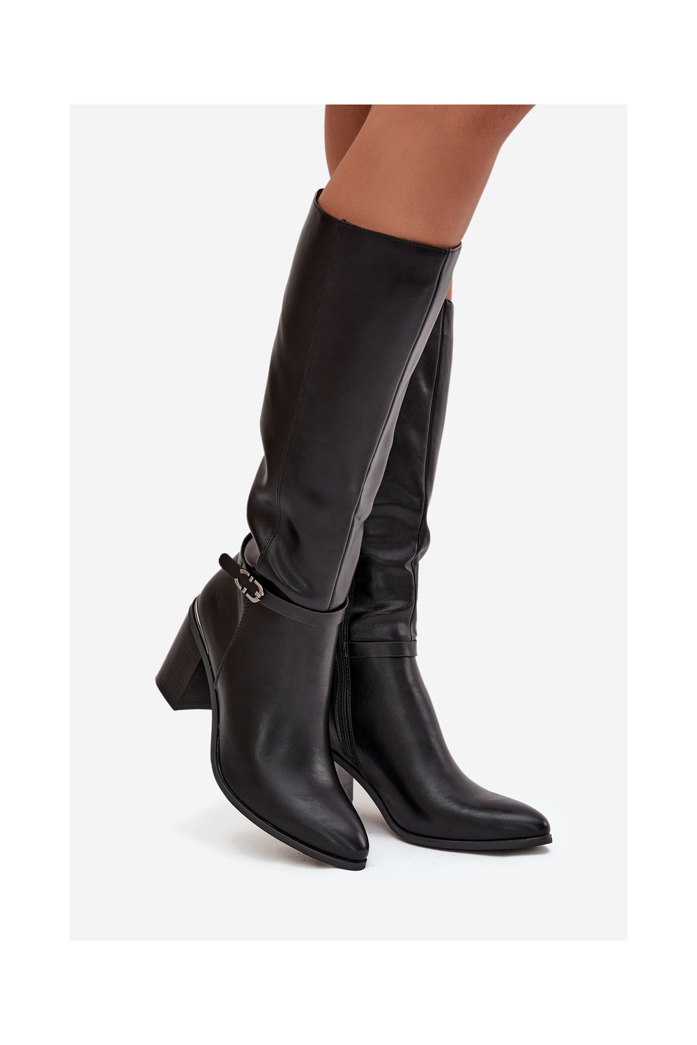 Naiste pika säärega saapad voodriga kõrge jämeda kontsaga neetide ja pandlaga Sergio Leone KZ25738 Must