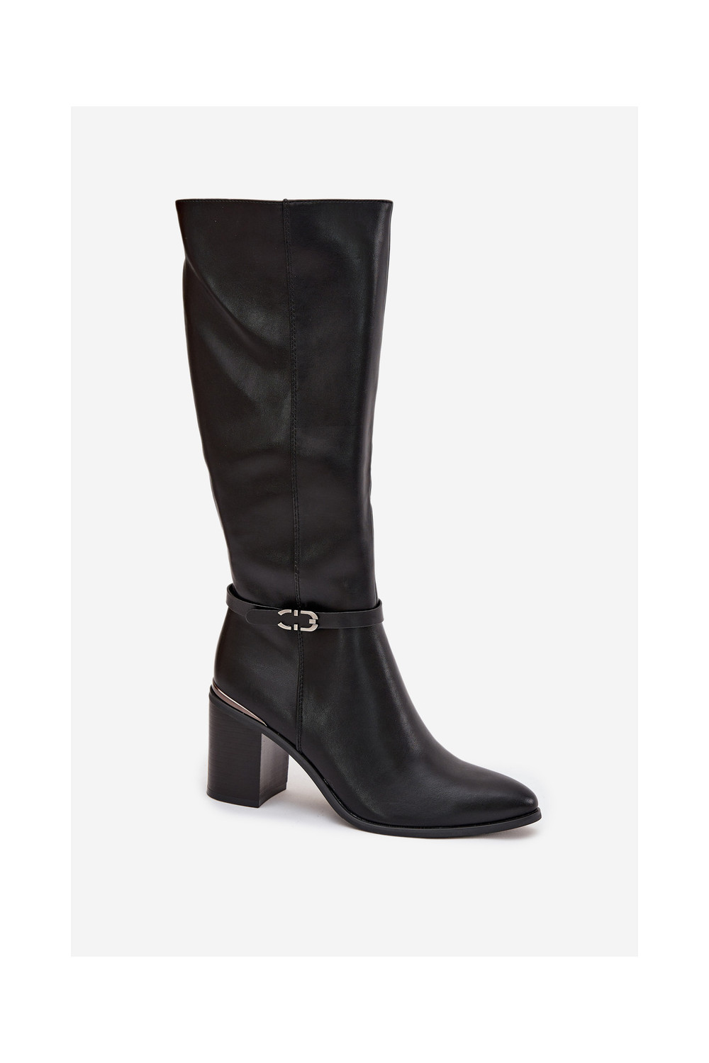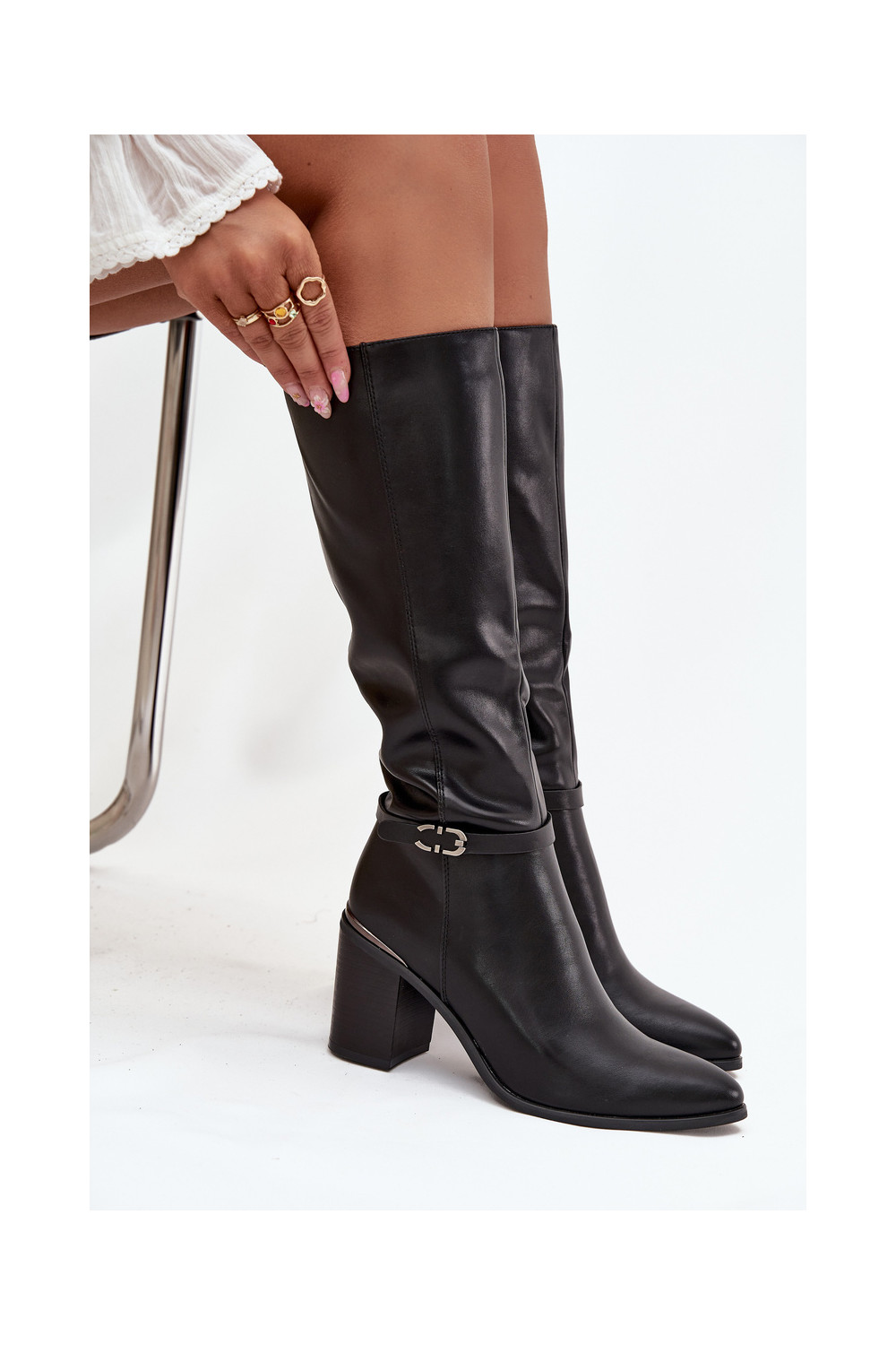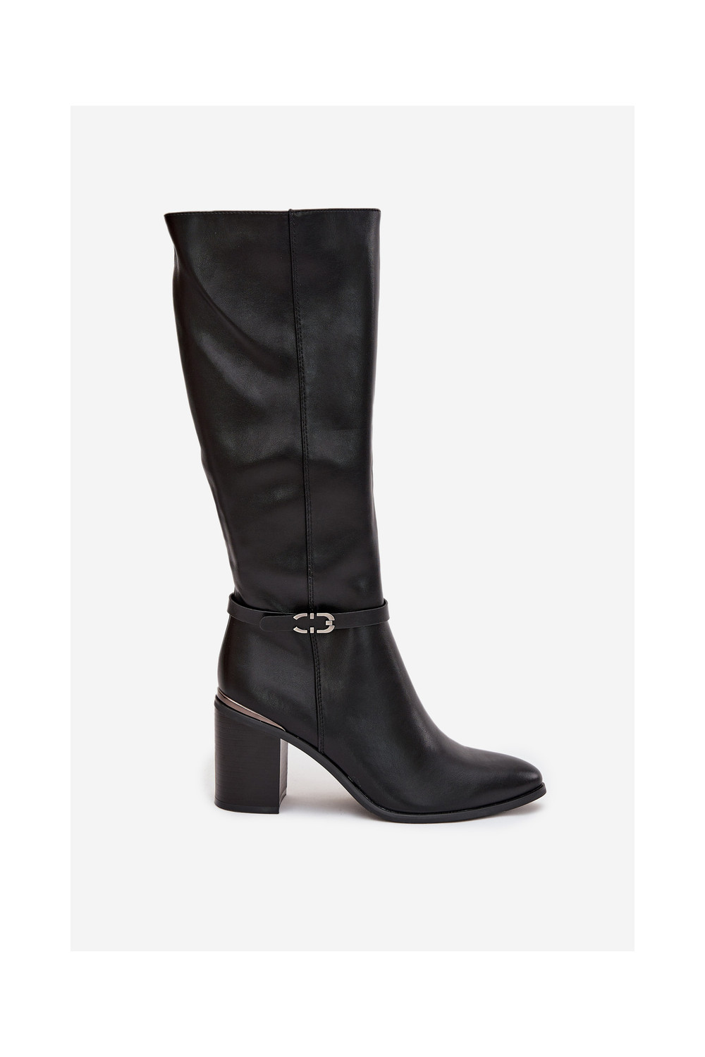 Naiste pika säärega saapad voodriga kõrge jämeda kontsaga neetide ja pandlaga Sergio Leone KZ25738 Must