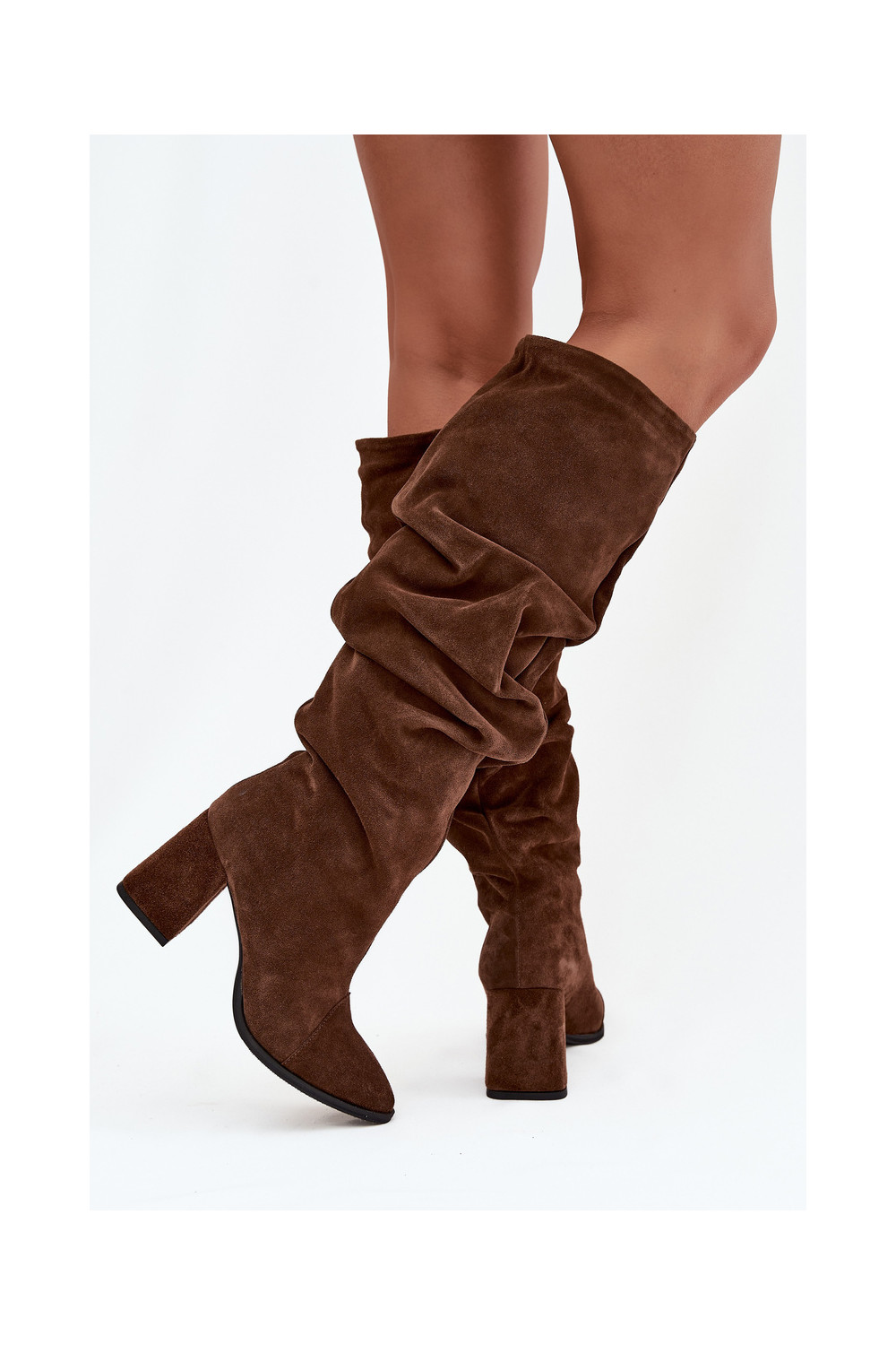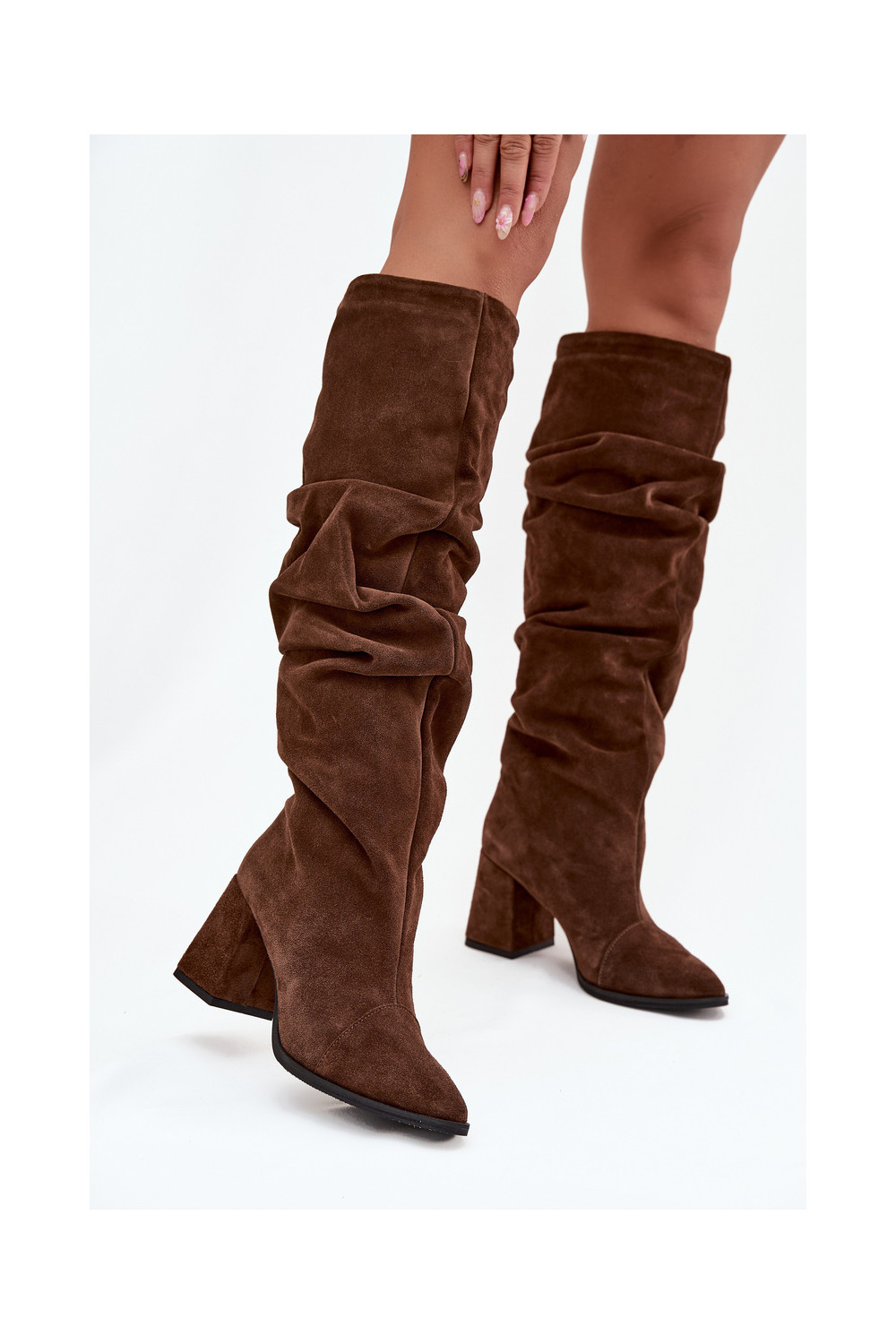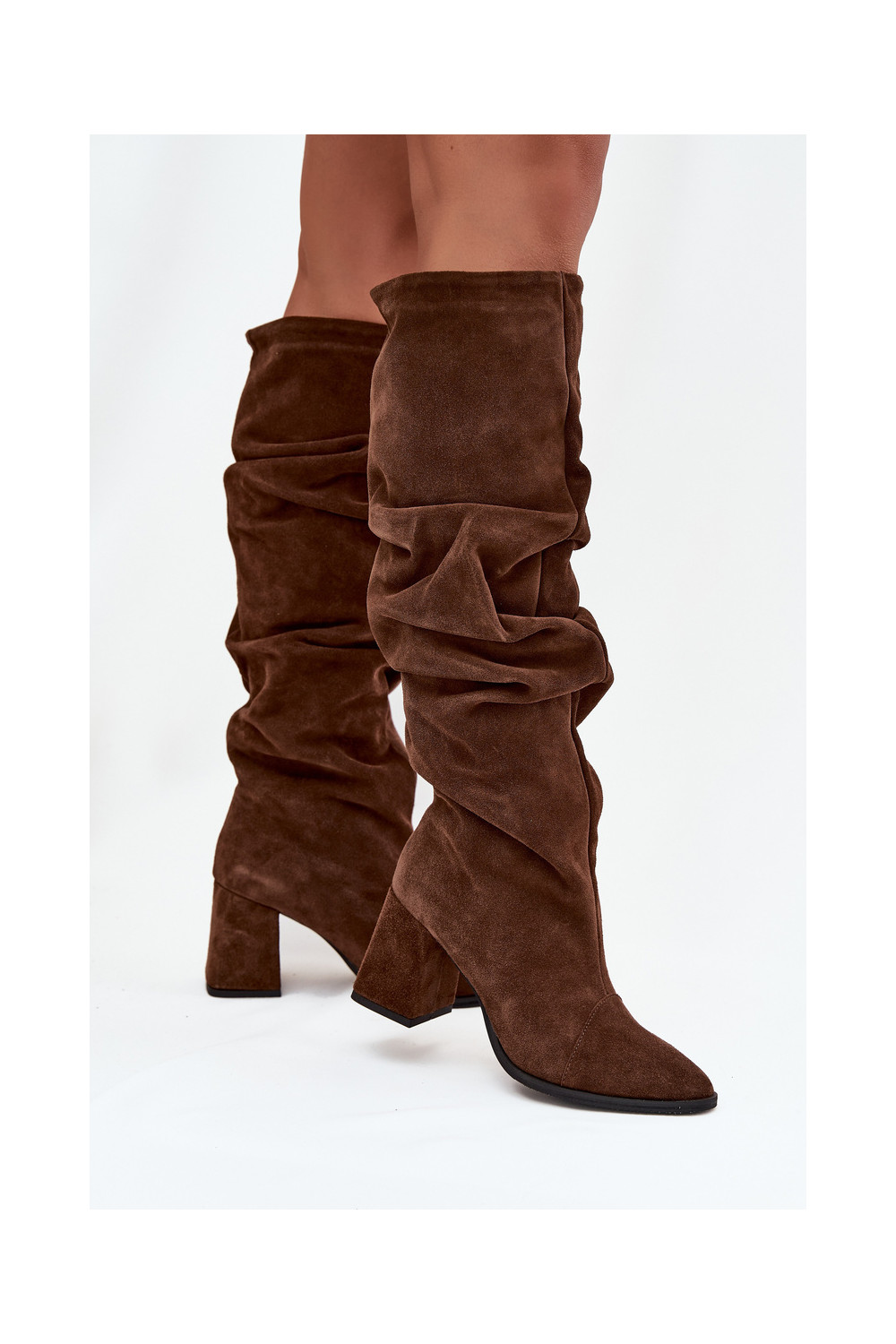kortsus naturaalsetest sametist pikad saapad kontsaga soojustatud Zazoo 4228 pruuni värvi
