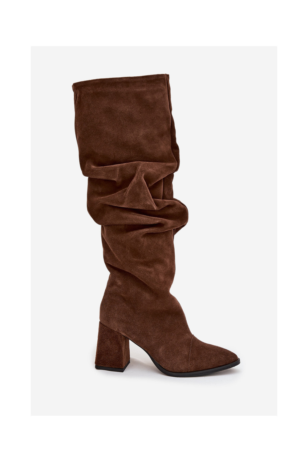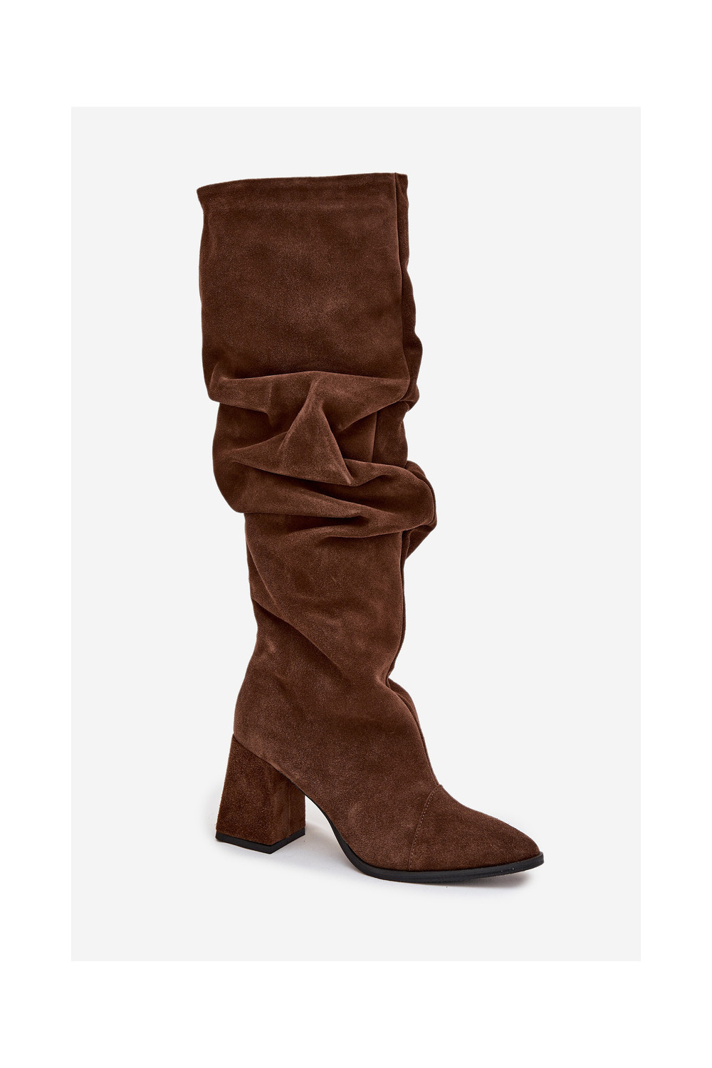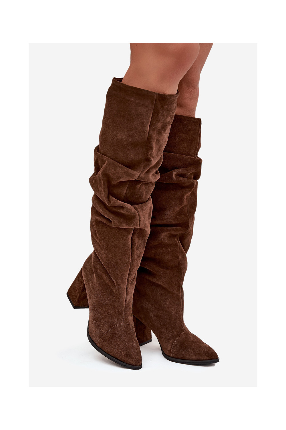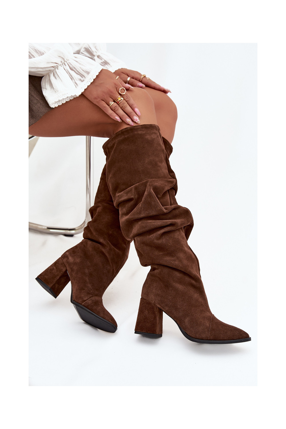 kortsus naturaalsetest sametist pikad saapad kontsaga soojustatud Zazoo 4228 pruuni värvi