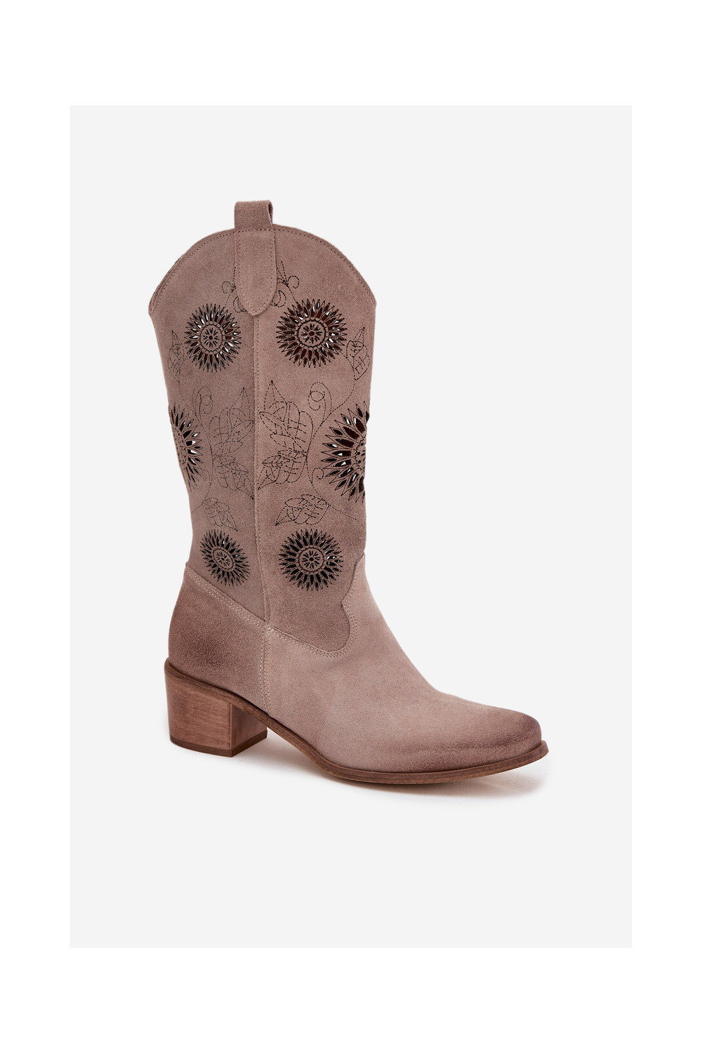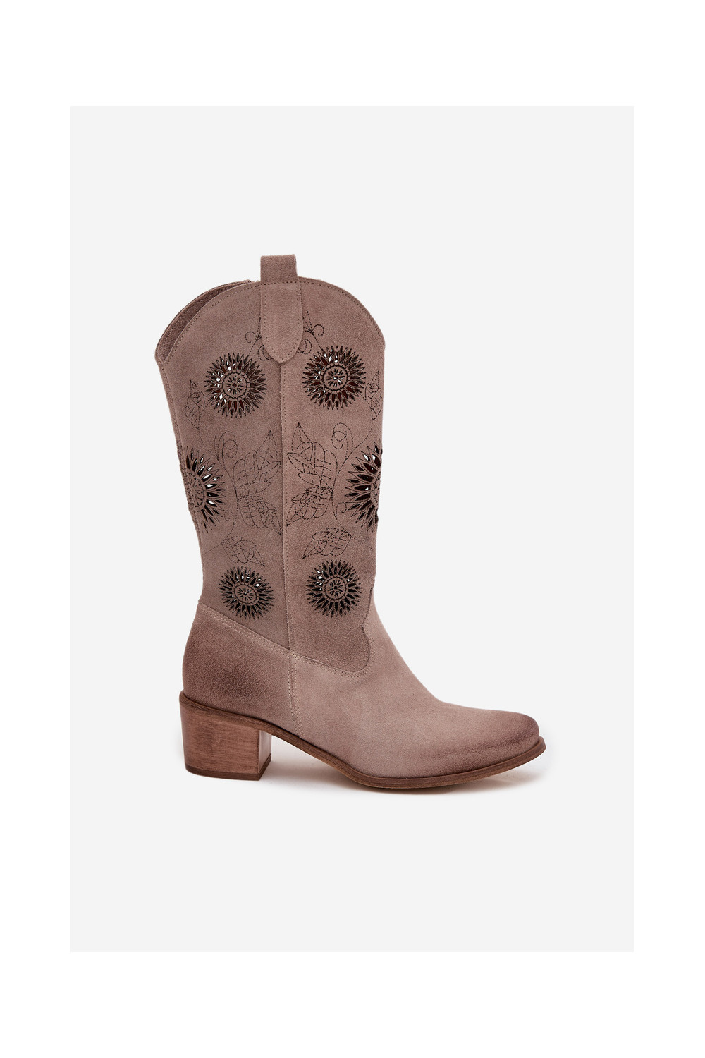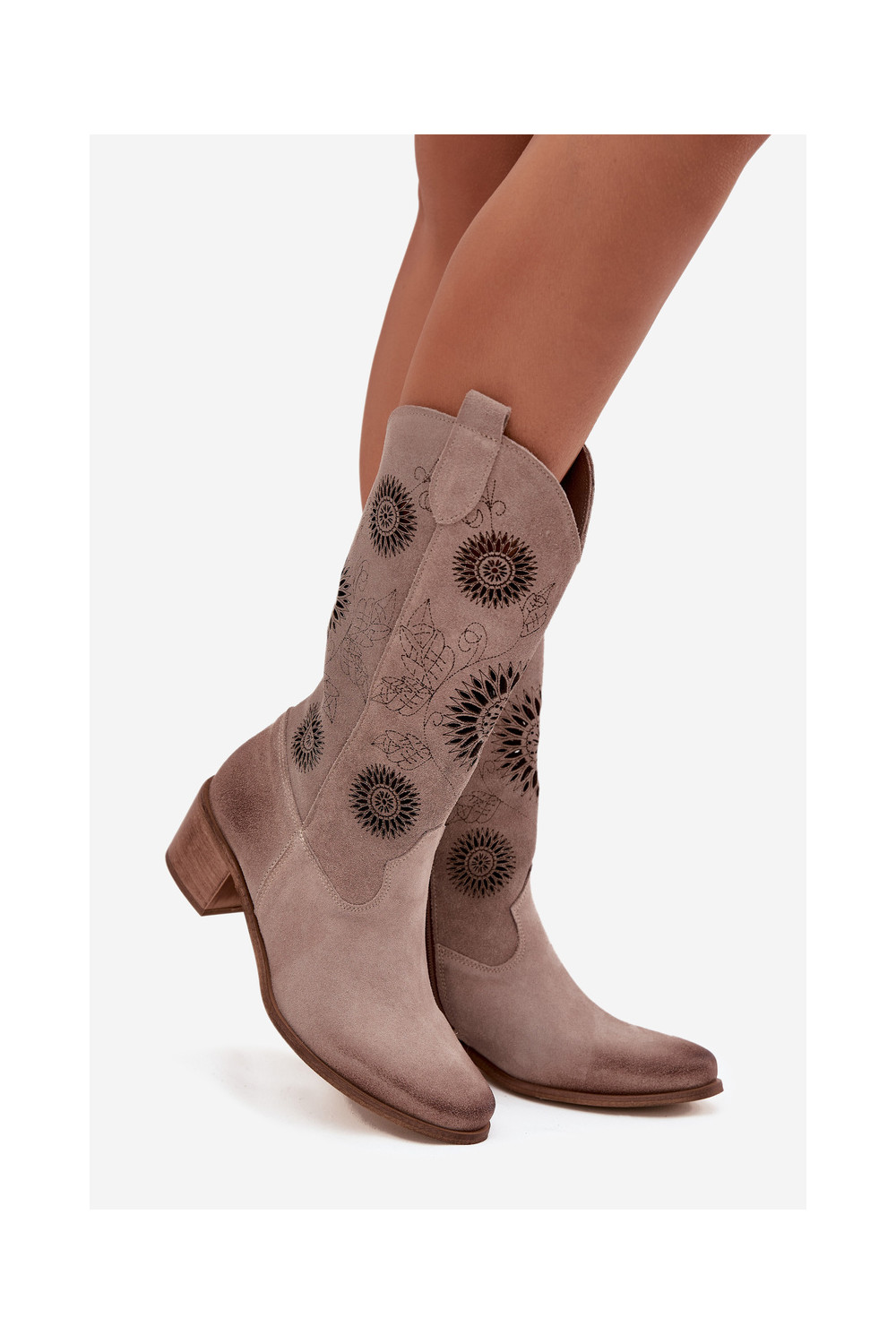 Naiste sametist pikad saapad pitsilise detailiga Zazoo 3852 kaputsino värvi