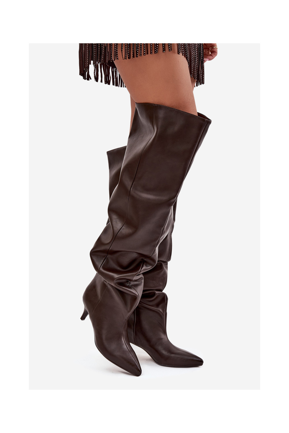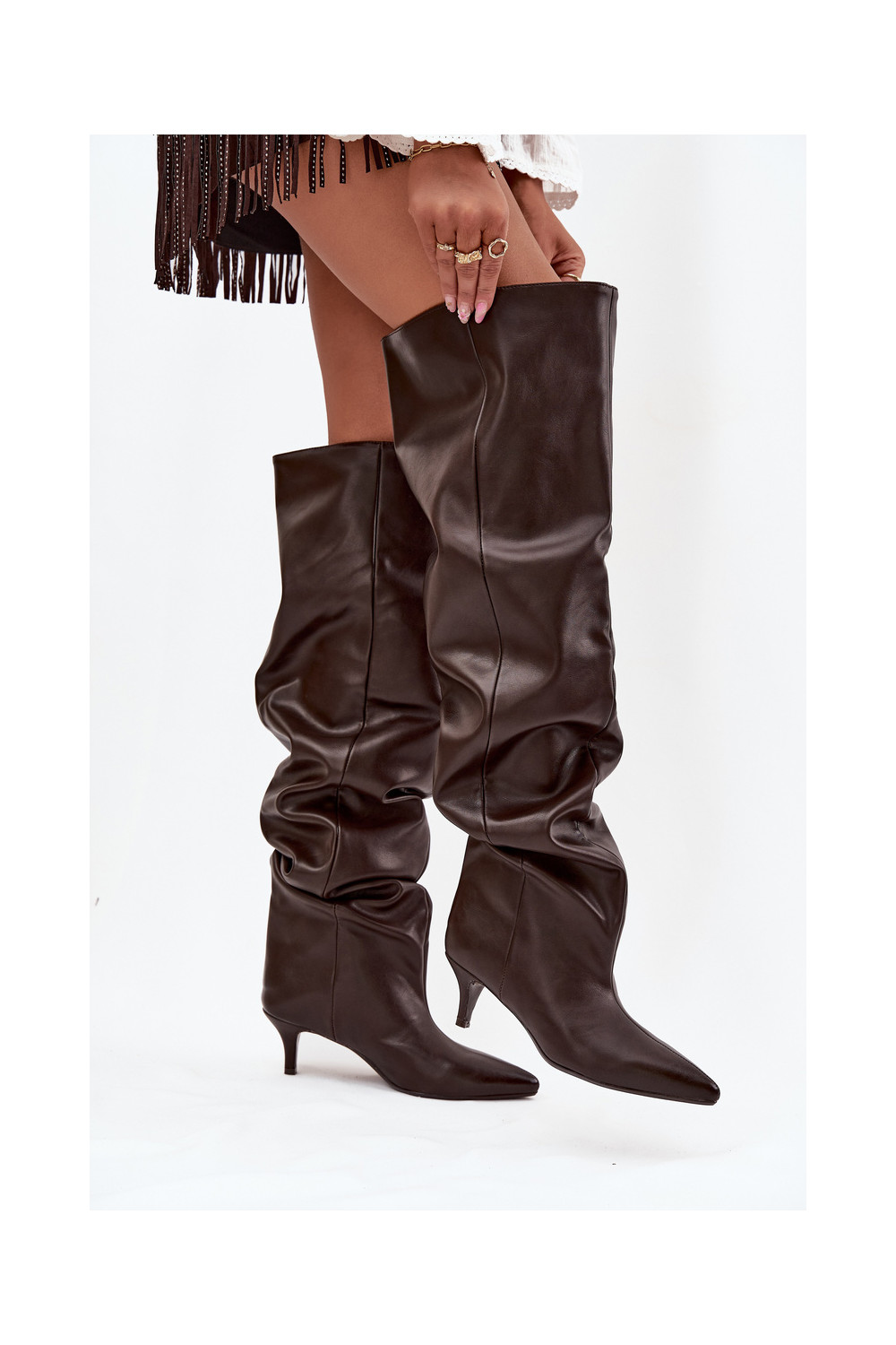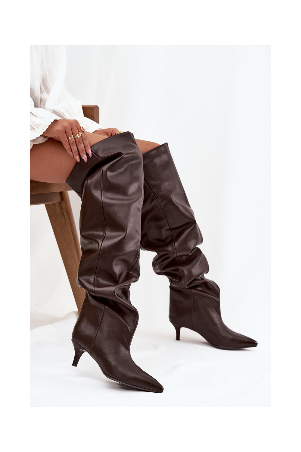 Libisemisvastased naiste kõrged saapad kitsaste kontsadega šokolaadivärvi Ysolienne