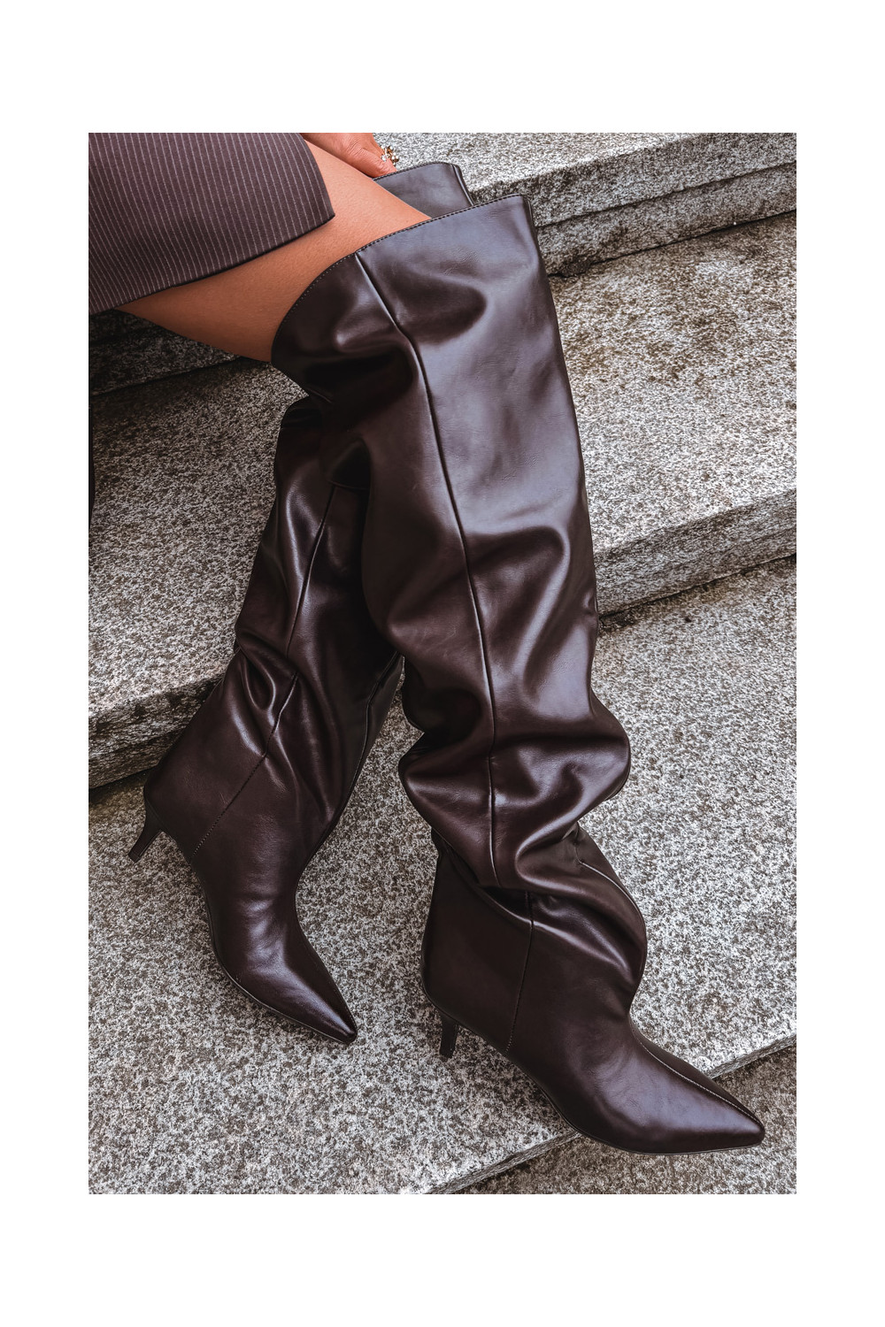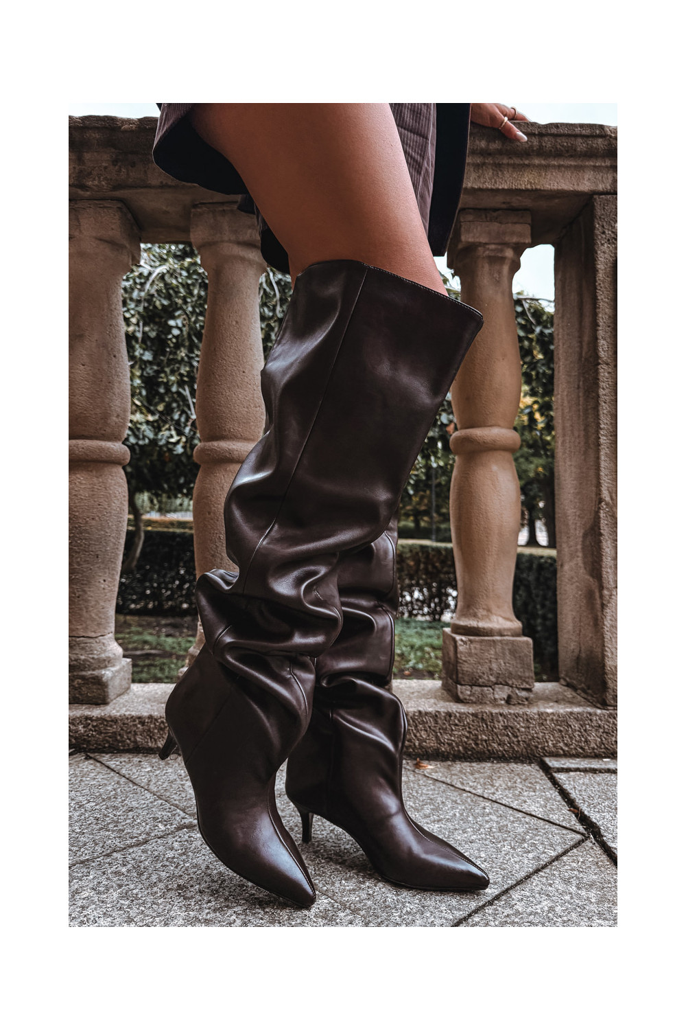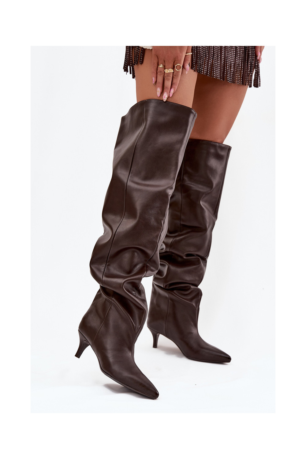 Libisemisvastased naiste kõrged saapad kitsaste kontsadega šokolaadivärvi Ysolienne