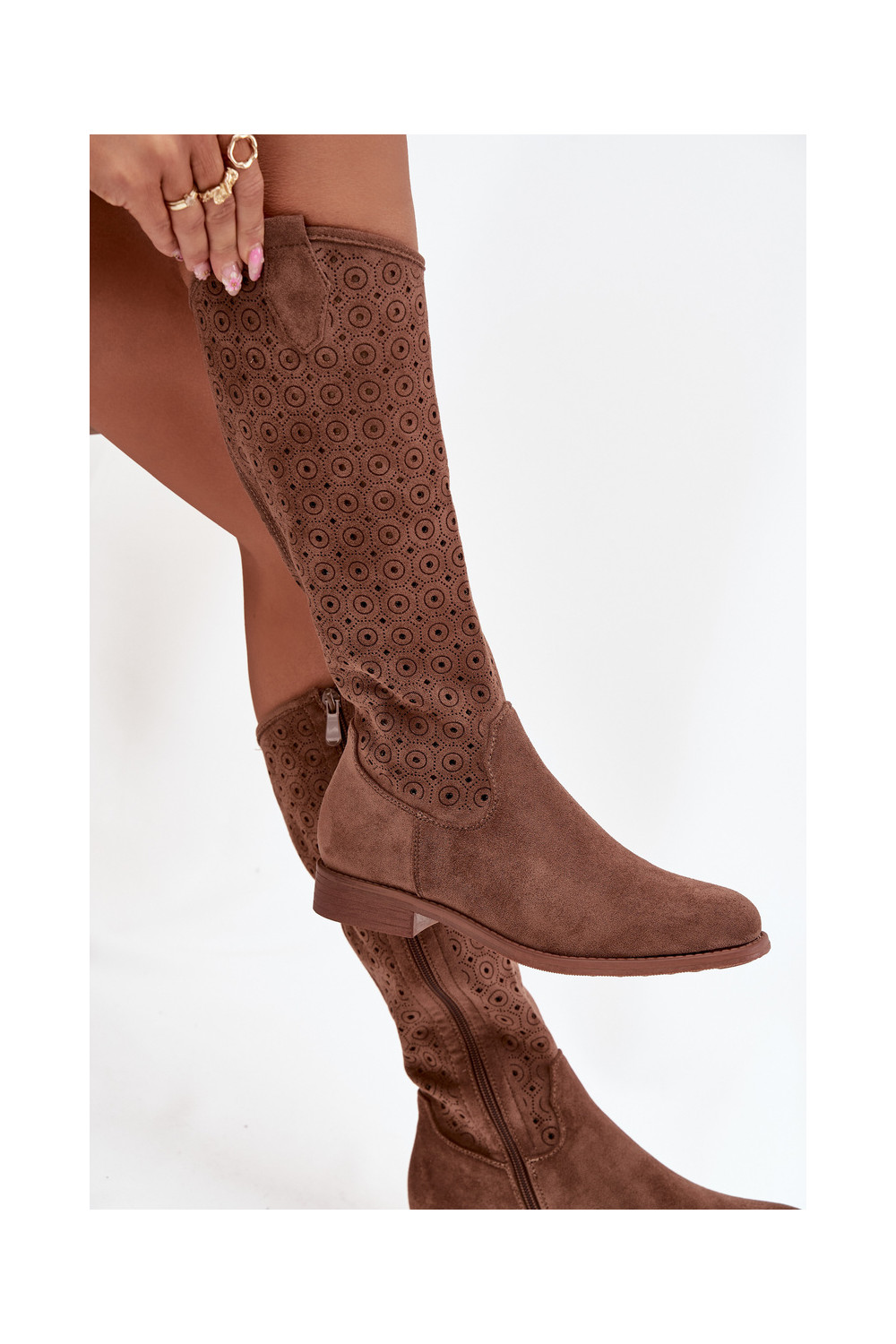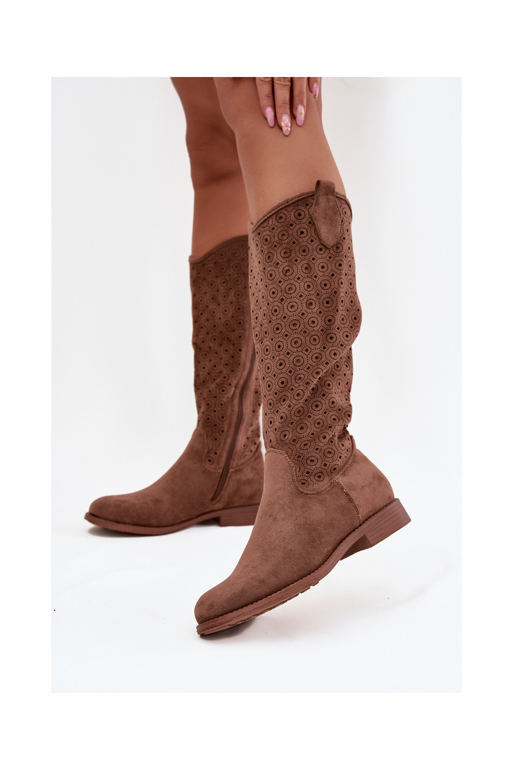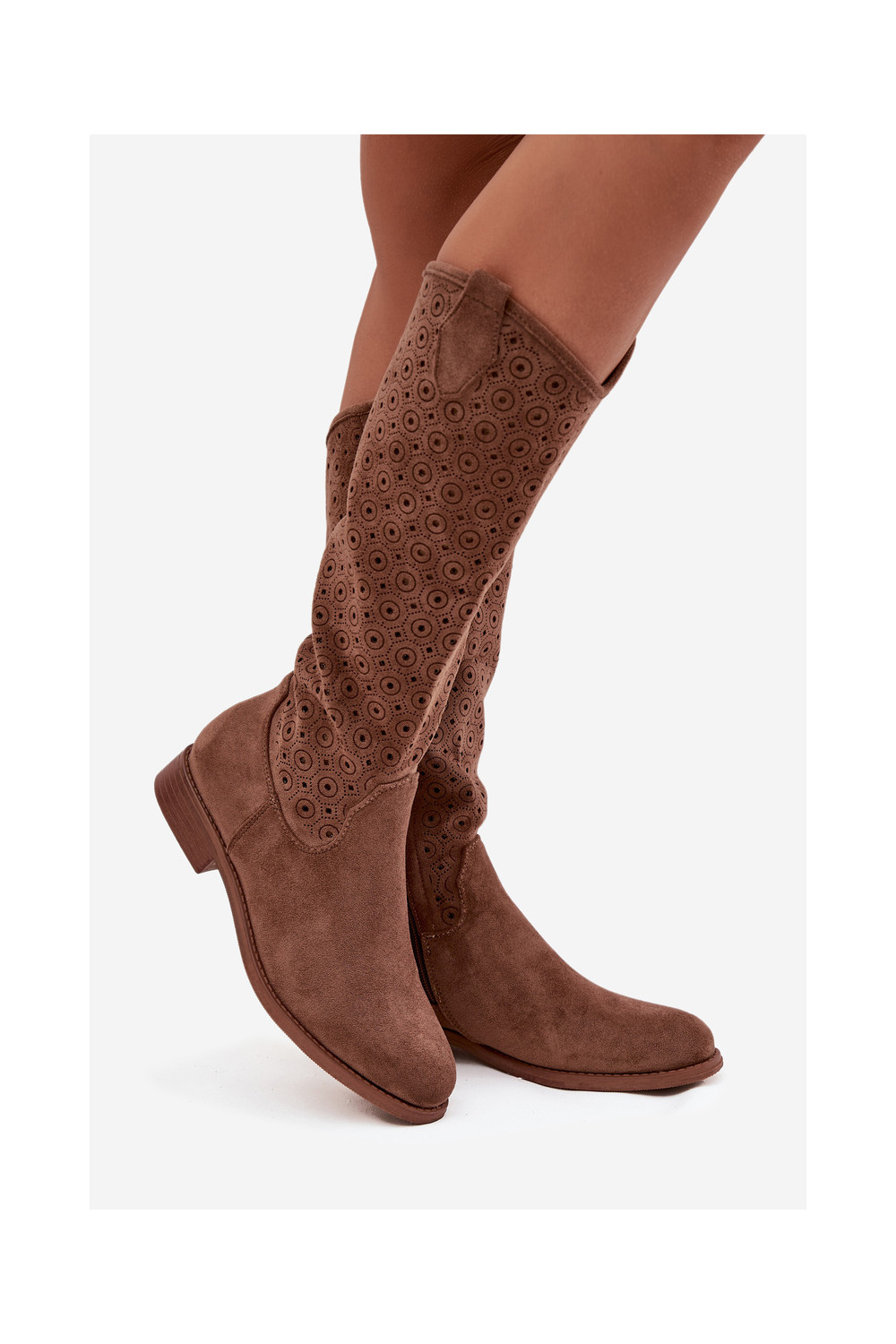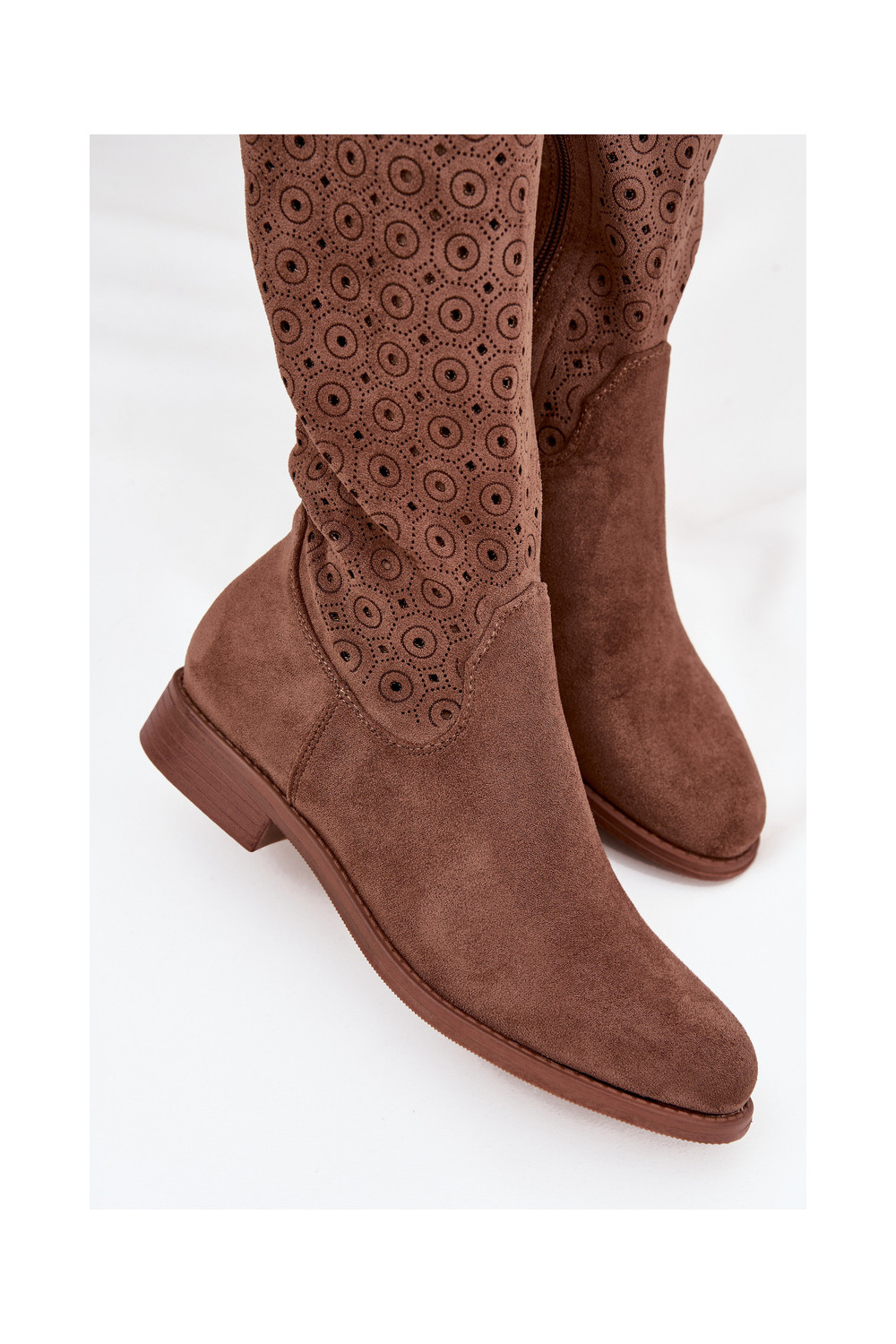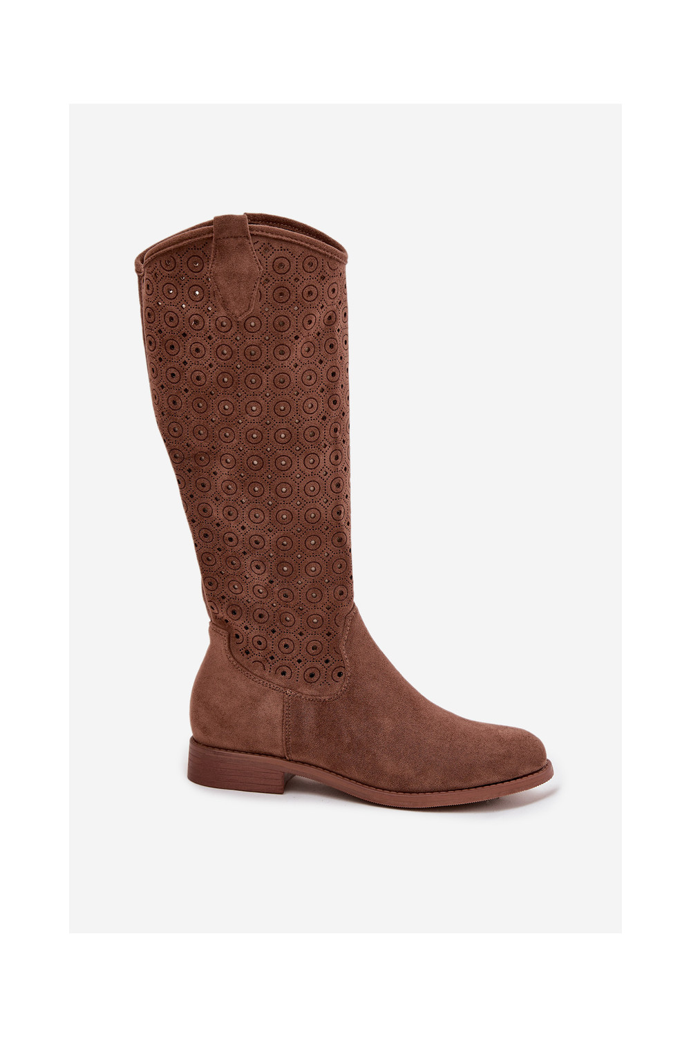 Women's Flat Heeled Boots with Perforated Pattern S.Barski HY52-531 Brown