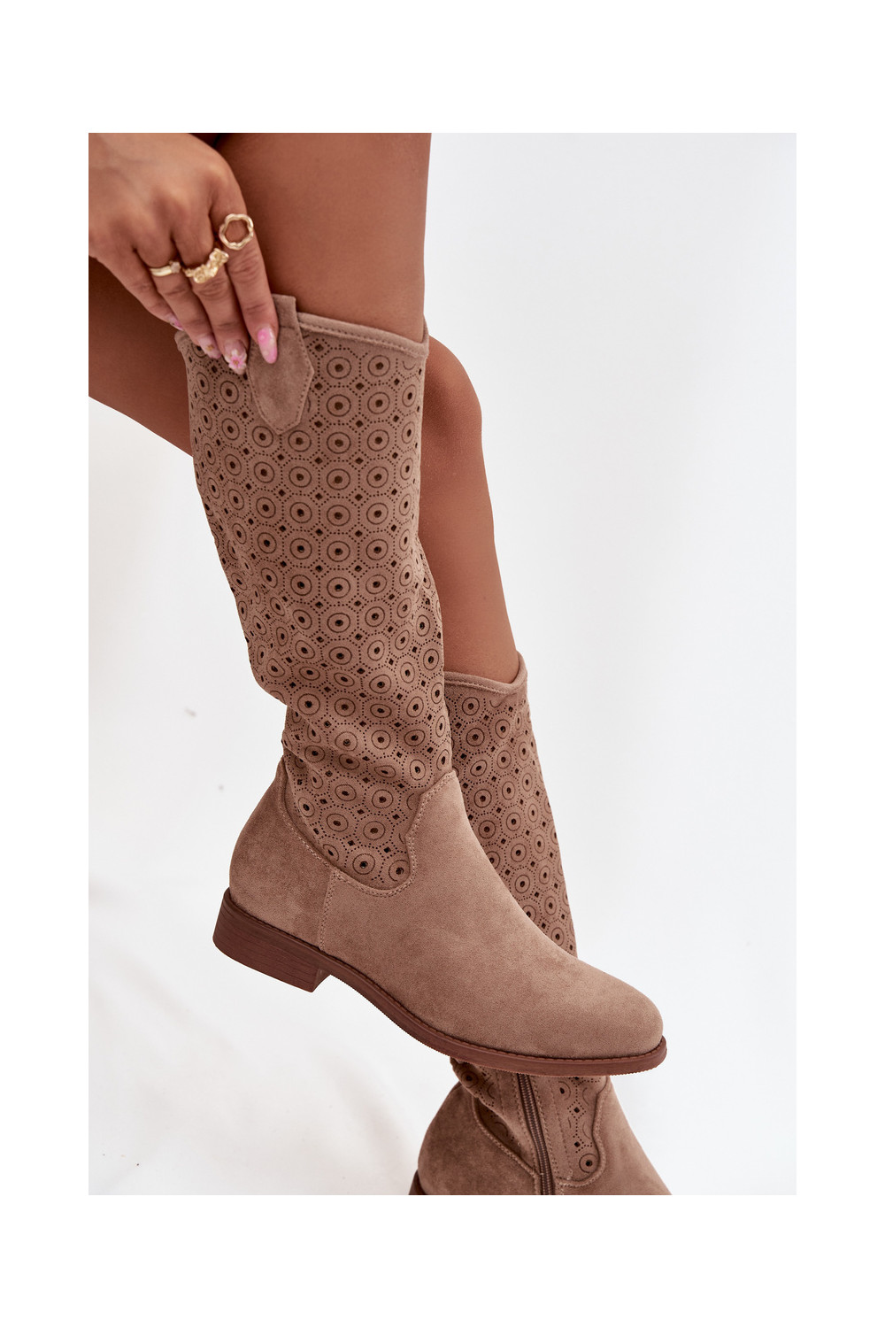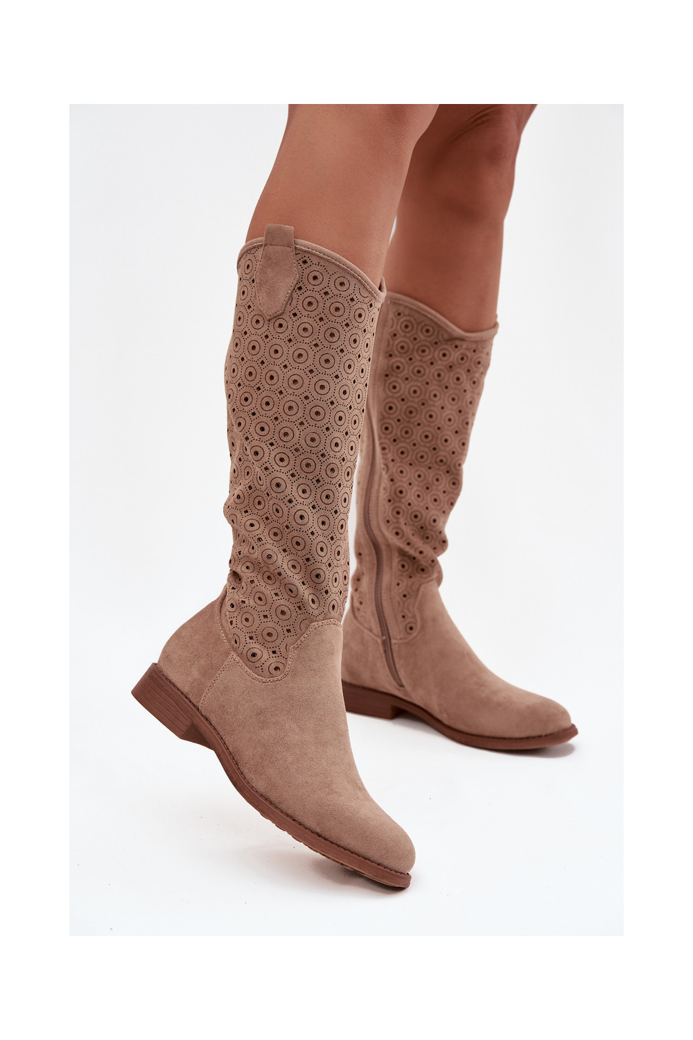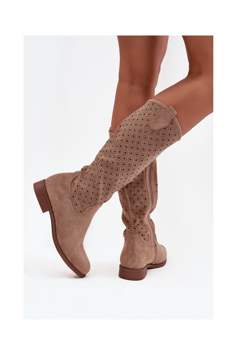 Women's Flat Heel Boots with Openwork Pattern S.Barski HY52-531 Beige