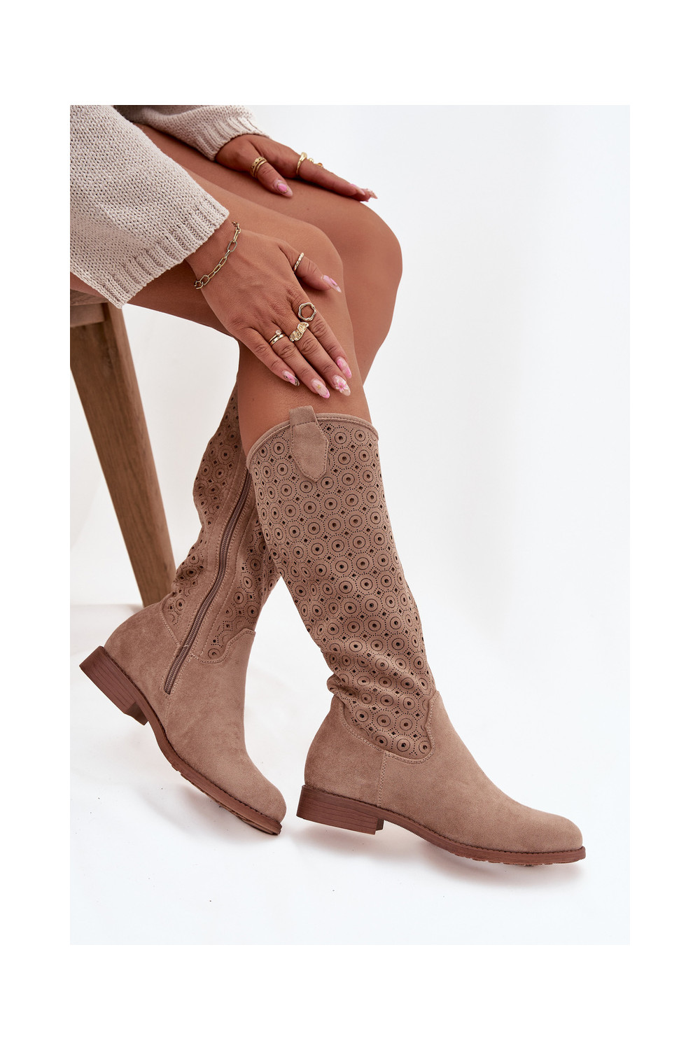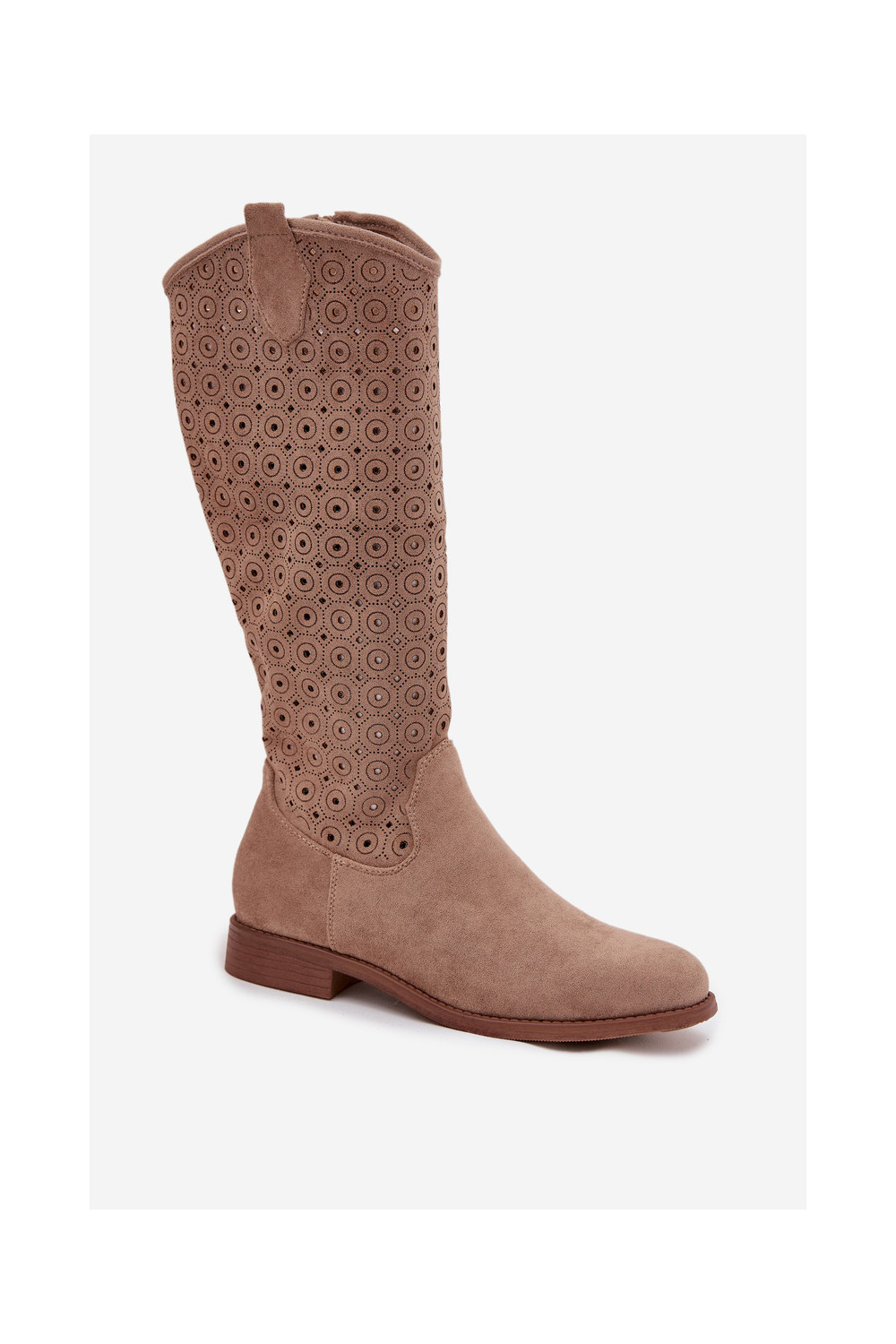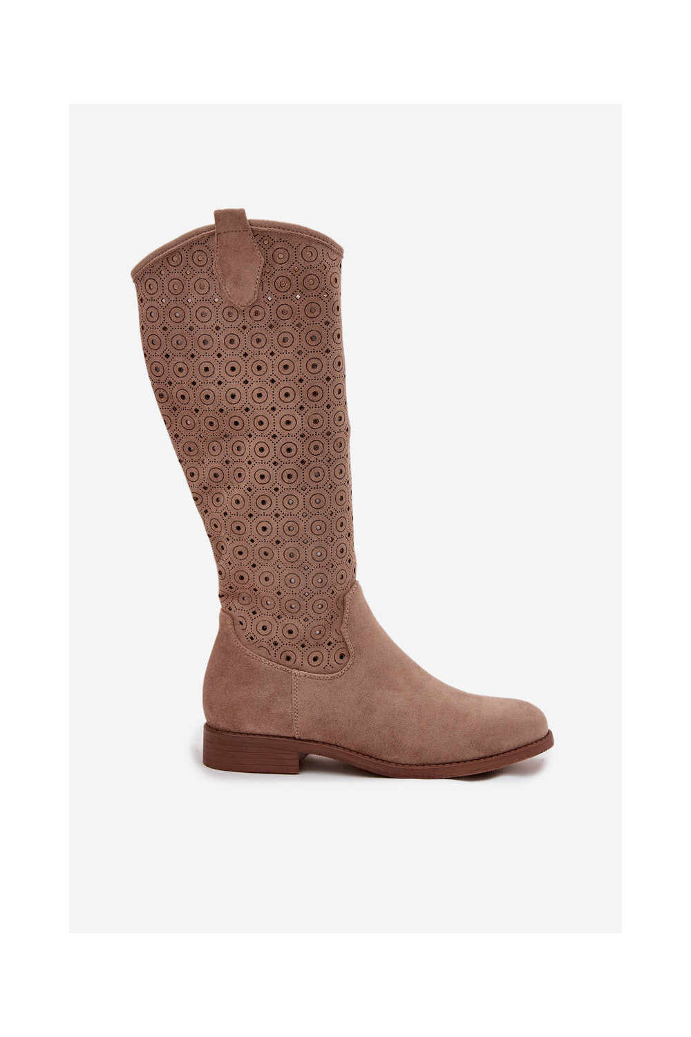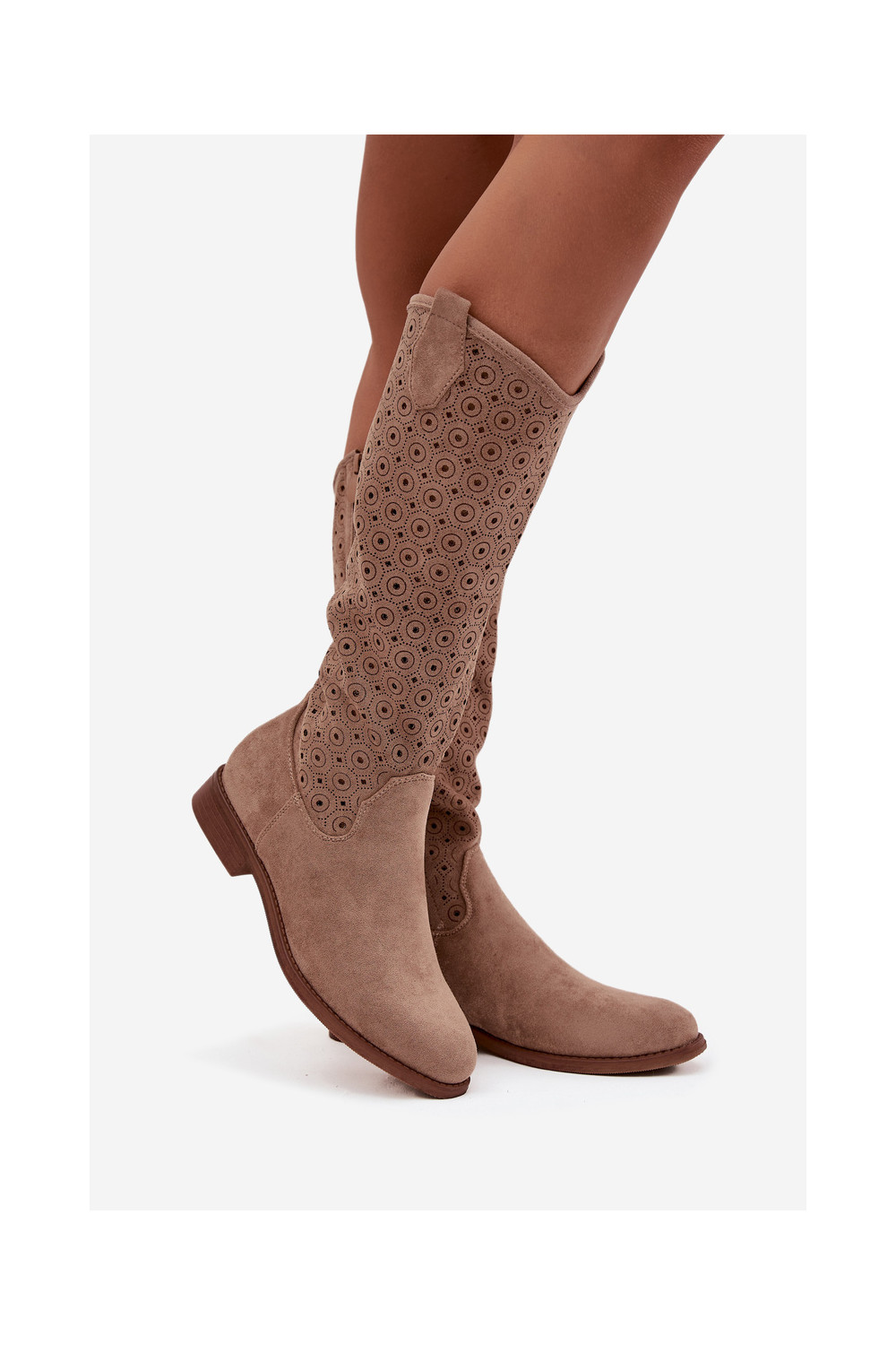 Women's Flat Heel Boots with Openwork Pattern S.Barski HY52-531 Beige