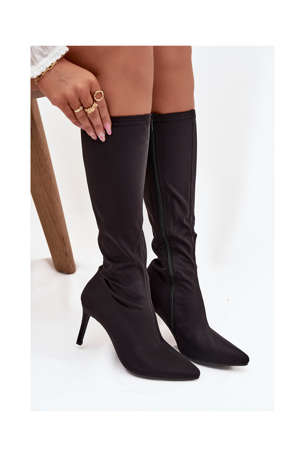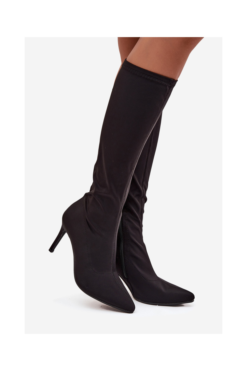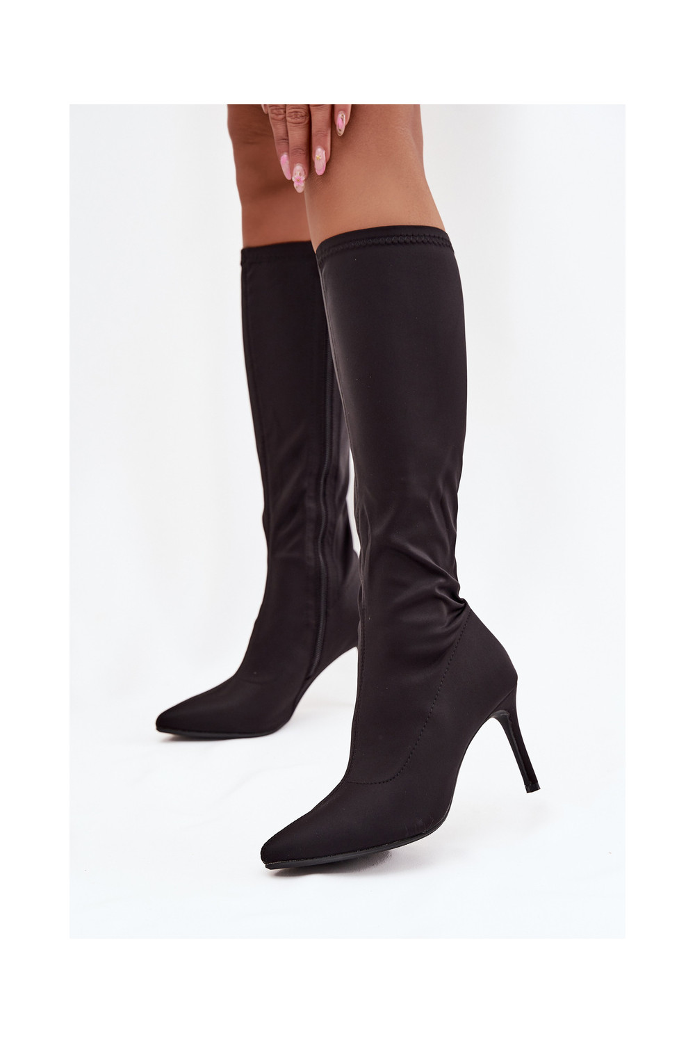 Naiste pikad saapad kitsaste kontsadega S.Barski HY52-513 must