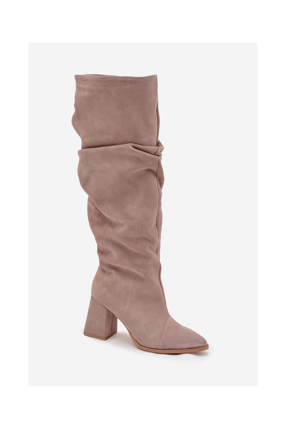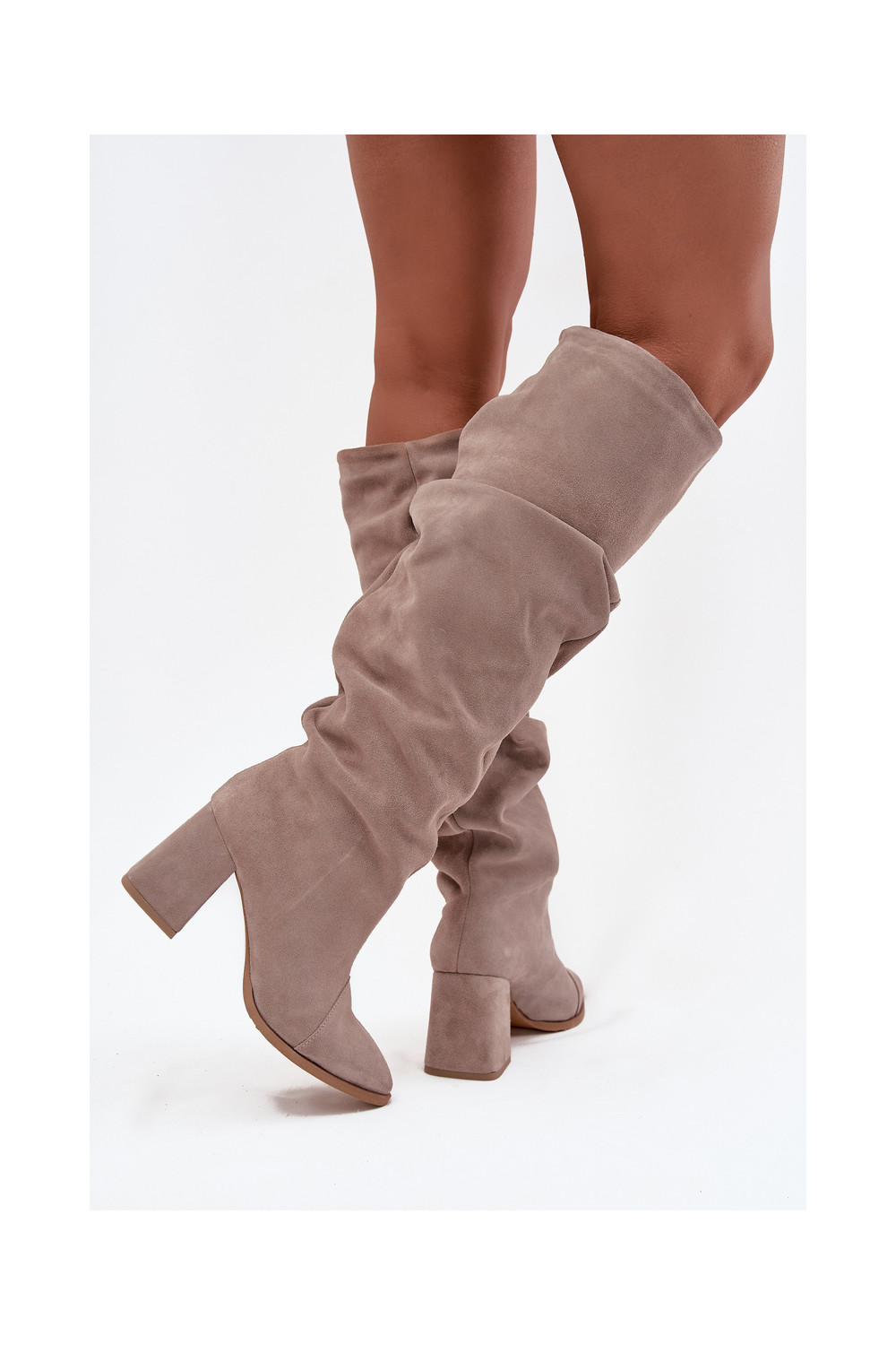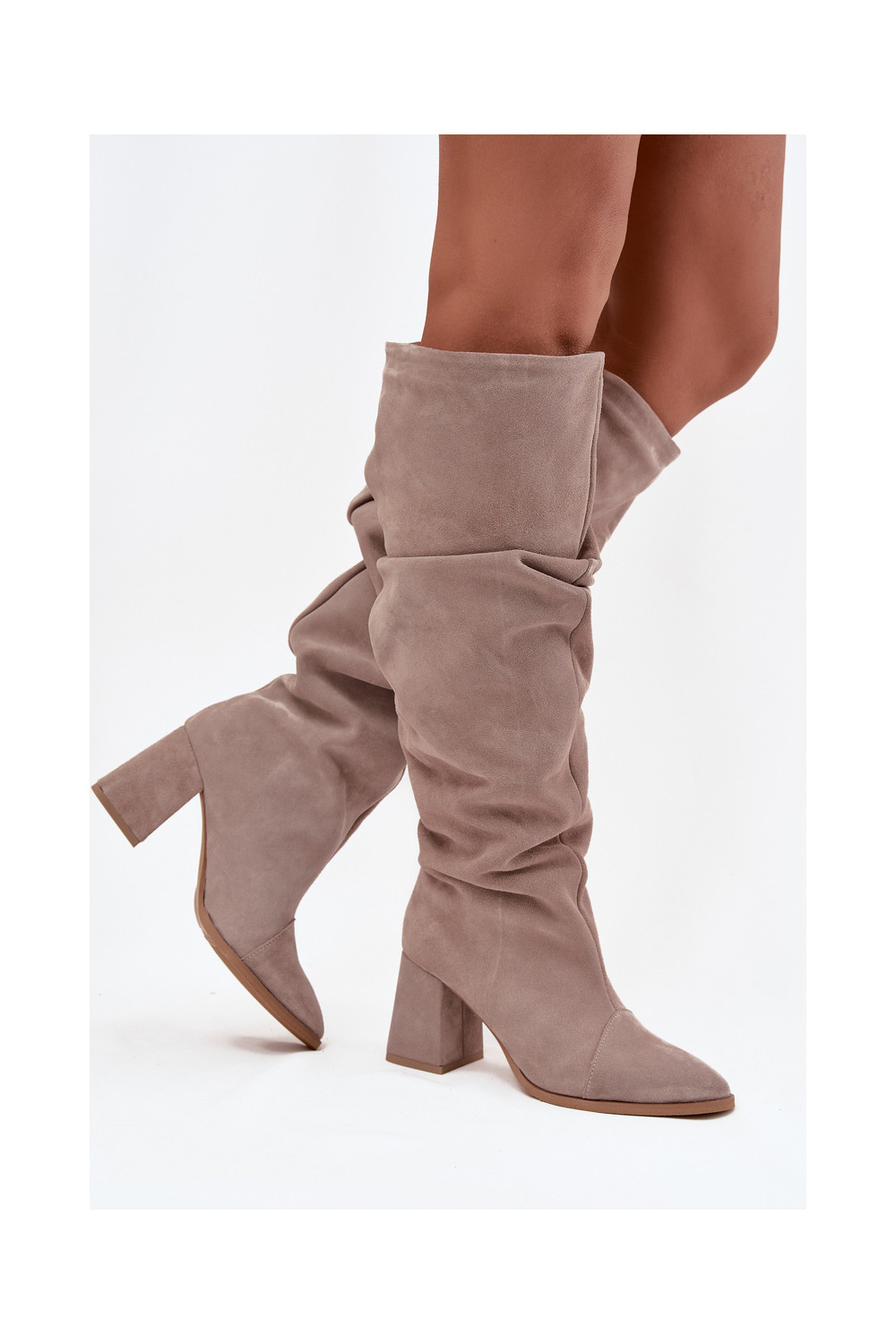 pika säärega saapad Z Naturalnego Zamszu kõrge jämeda kontsaga voodriga Zazoo 4228 beeži värvi