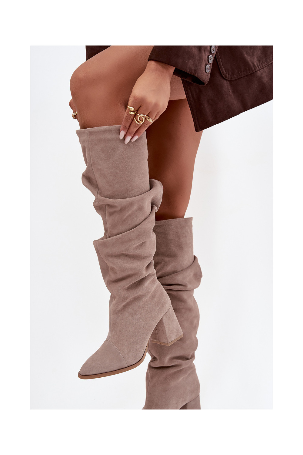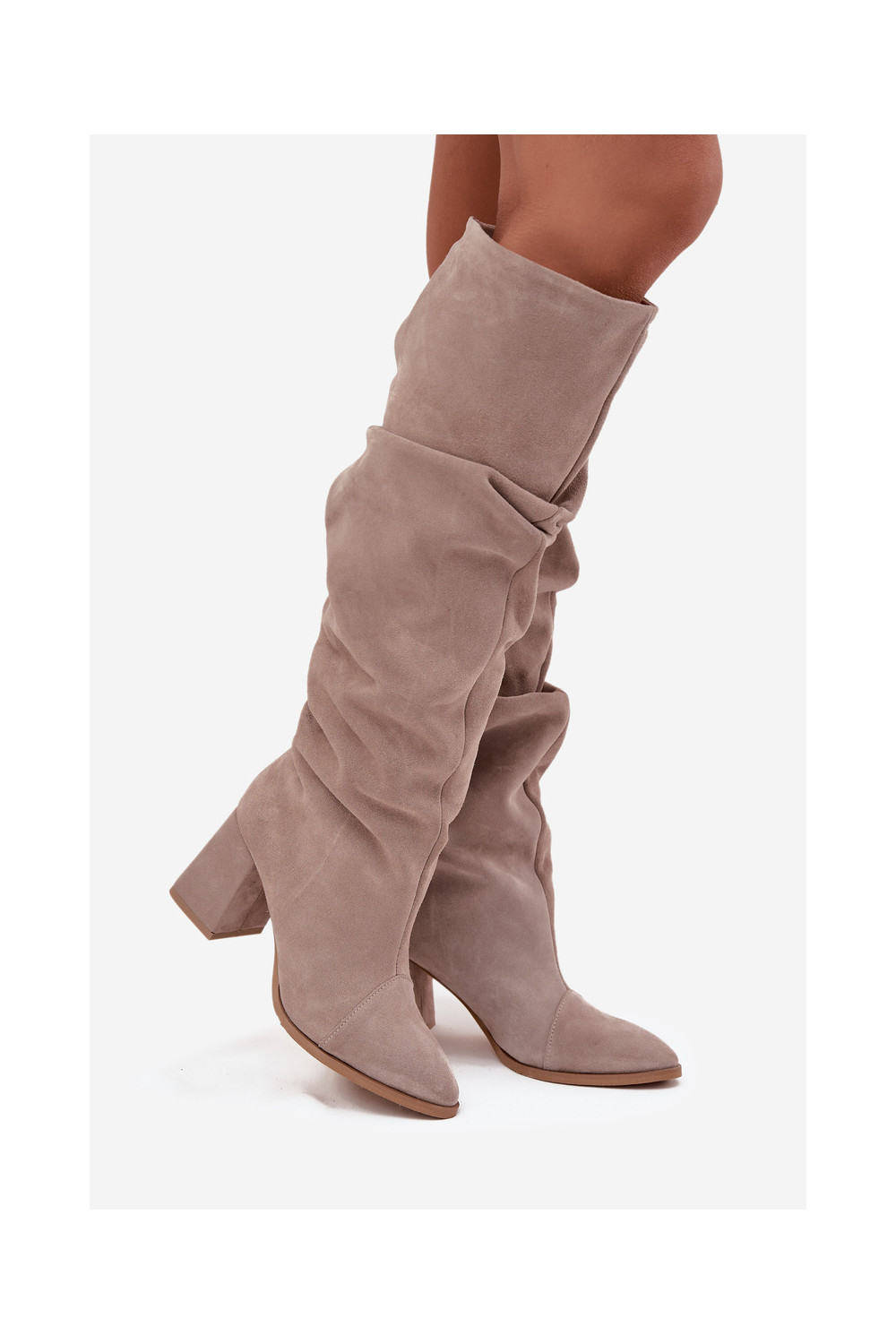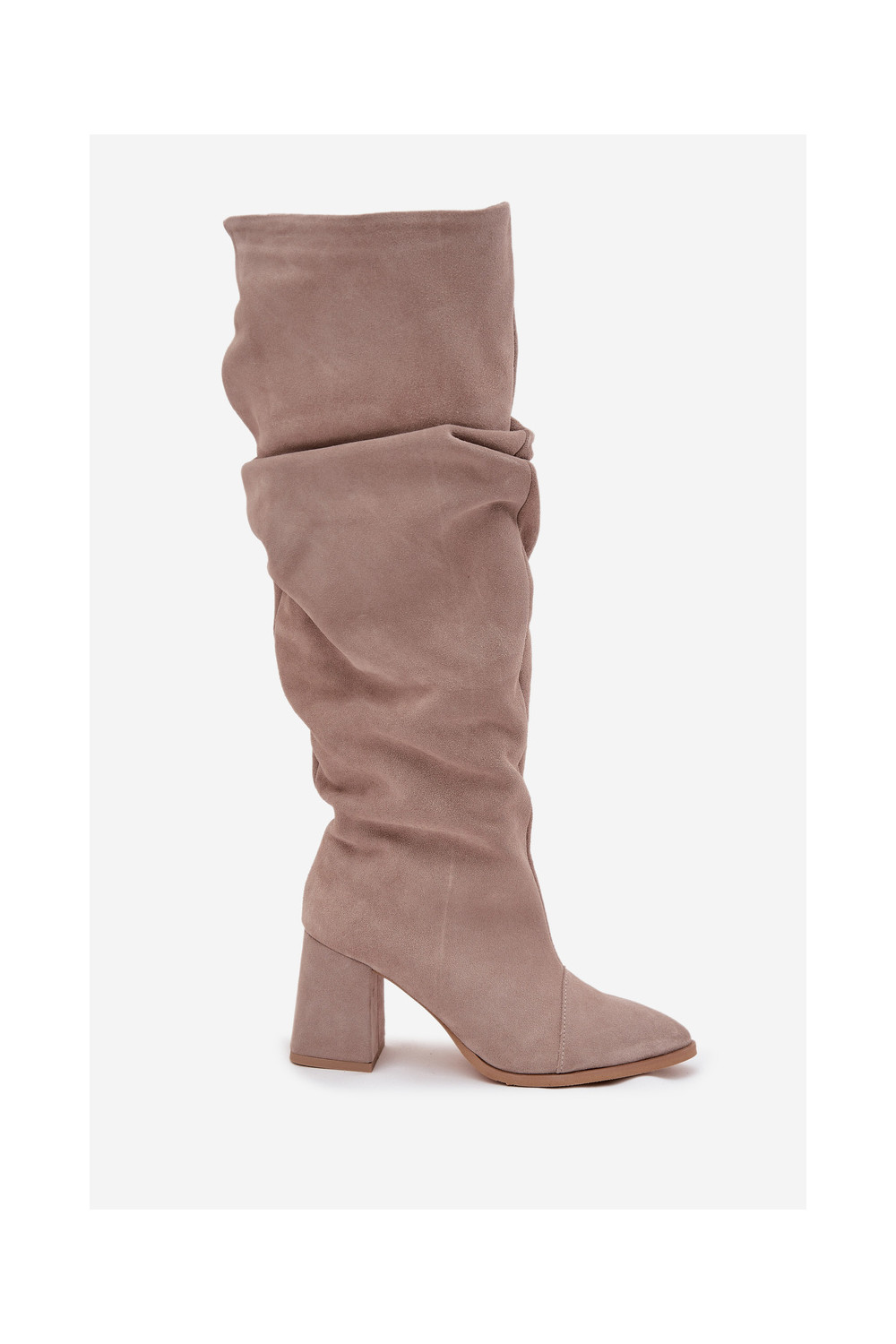 pika säärega saapad Z Naturalnego Zamszu kõrge jämeda kontsaga voodriga Zazoo 4228 beeži värvi