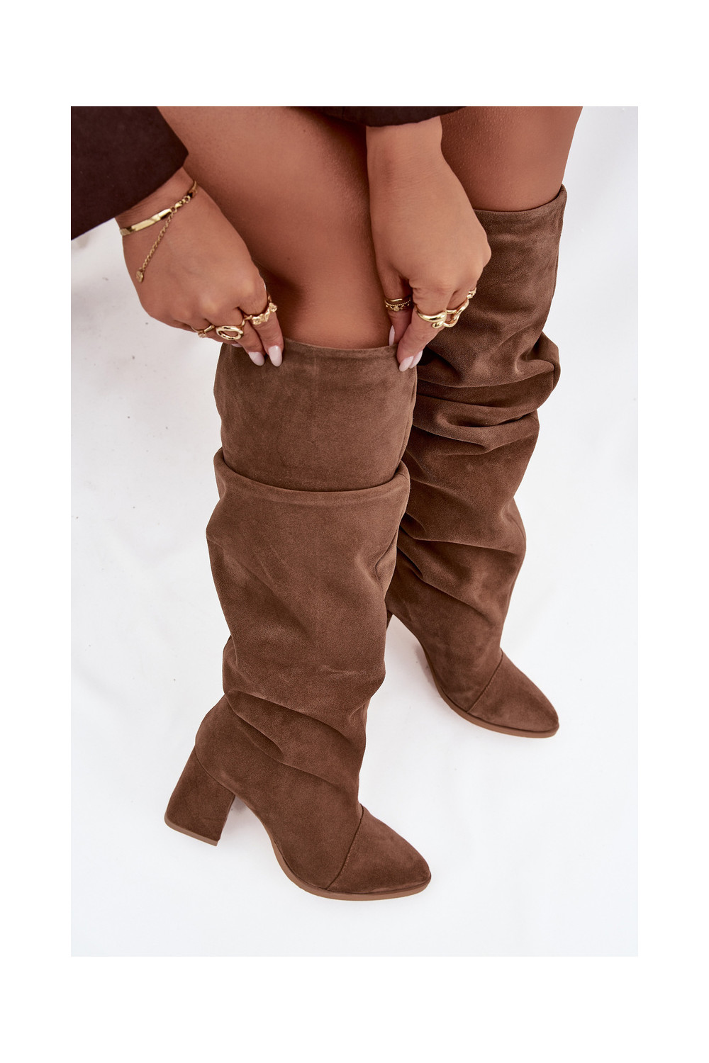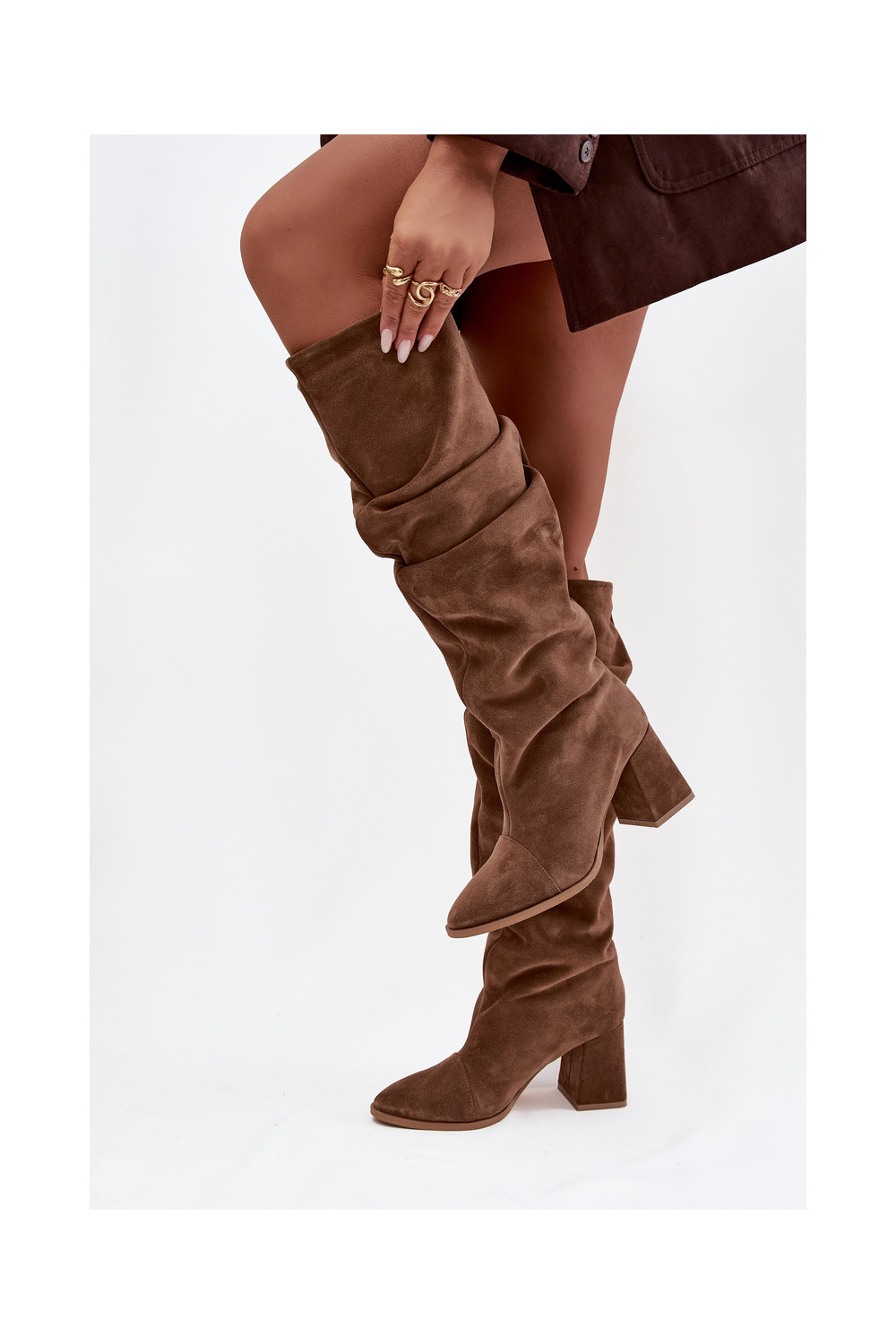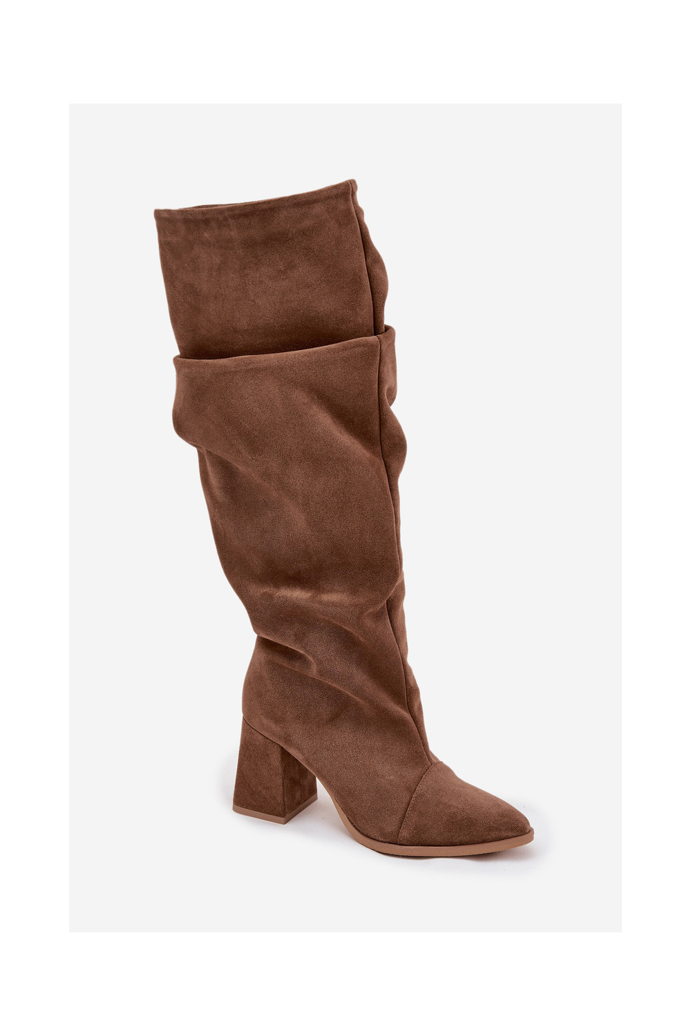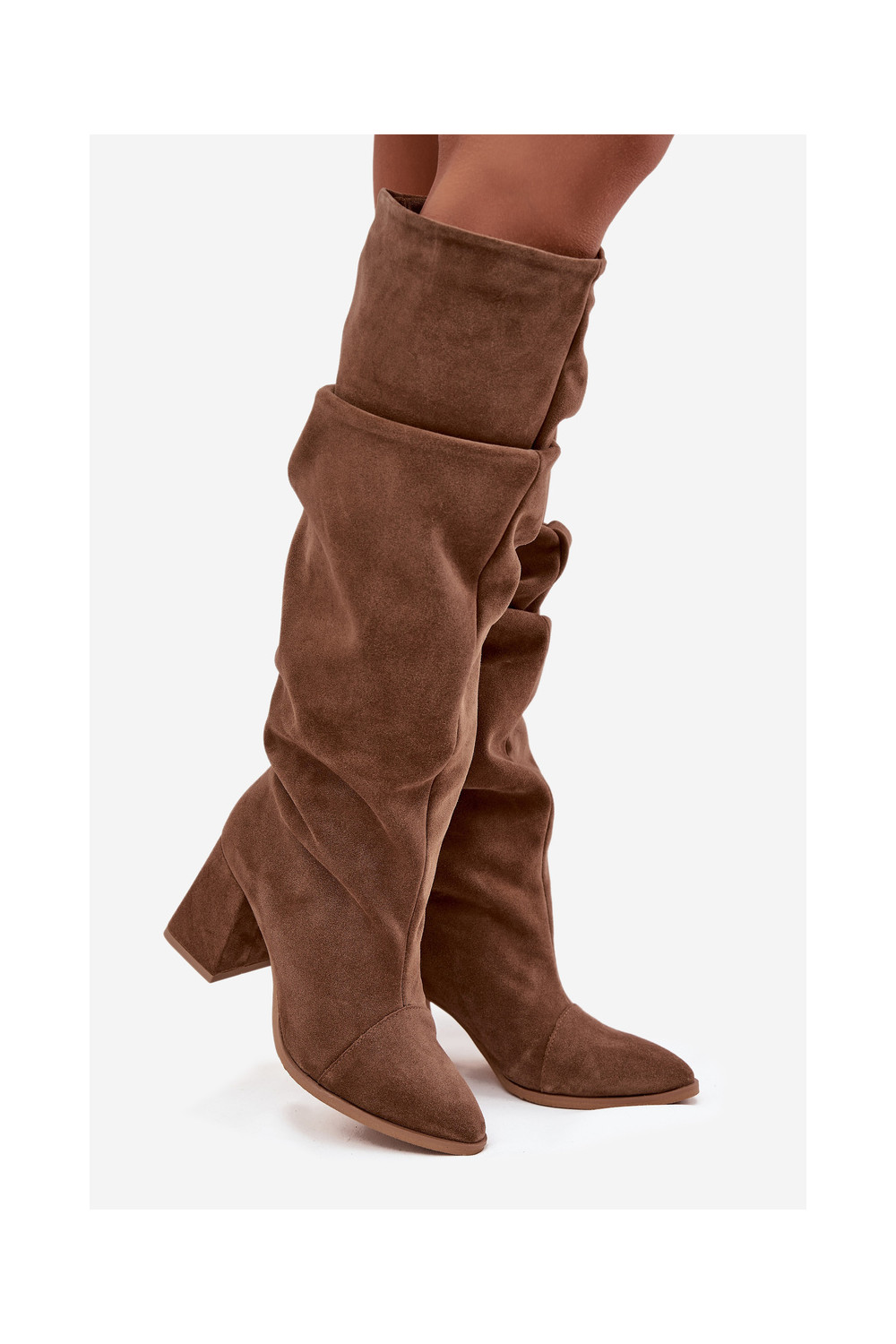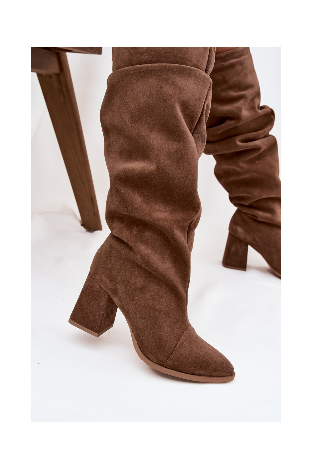 pika säärega saapad Z Naturalnego Zamszu kõrge jämeda kontsaga voodriga Zazoo 4228 pruunid värvi