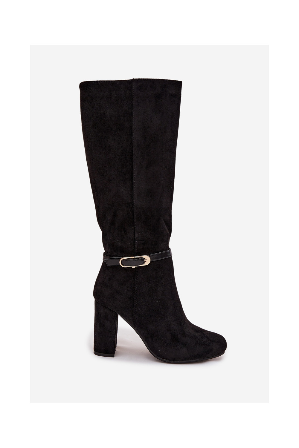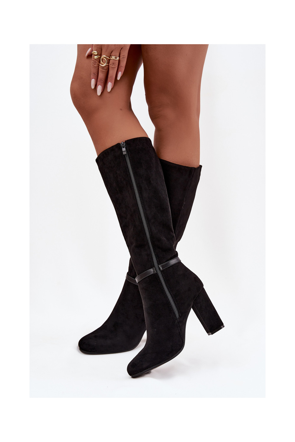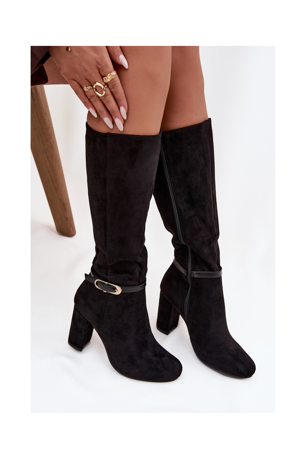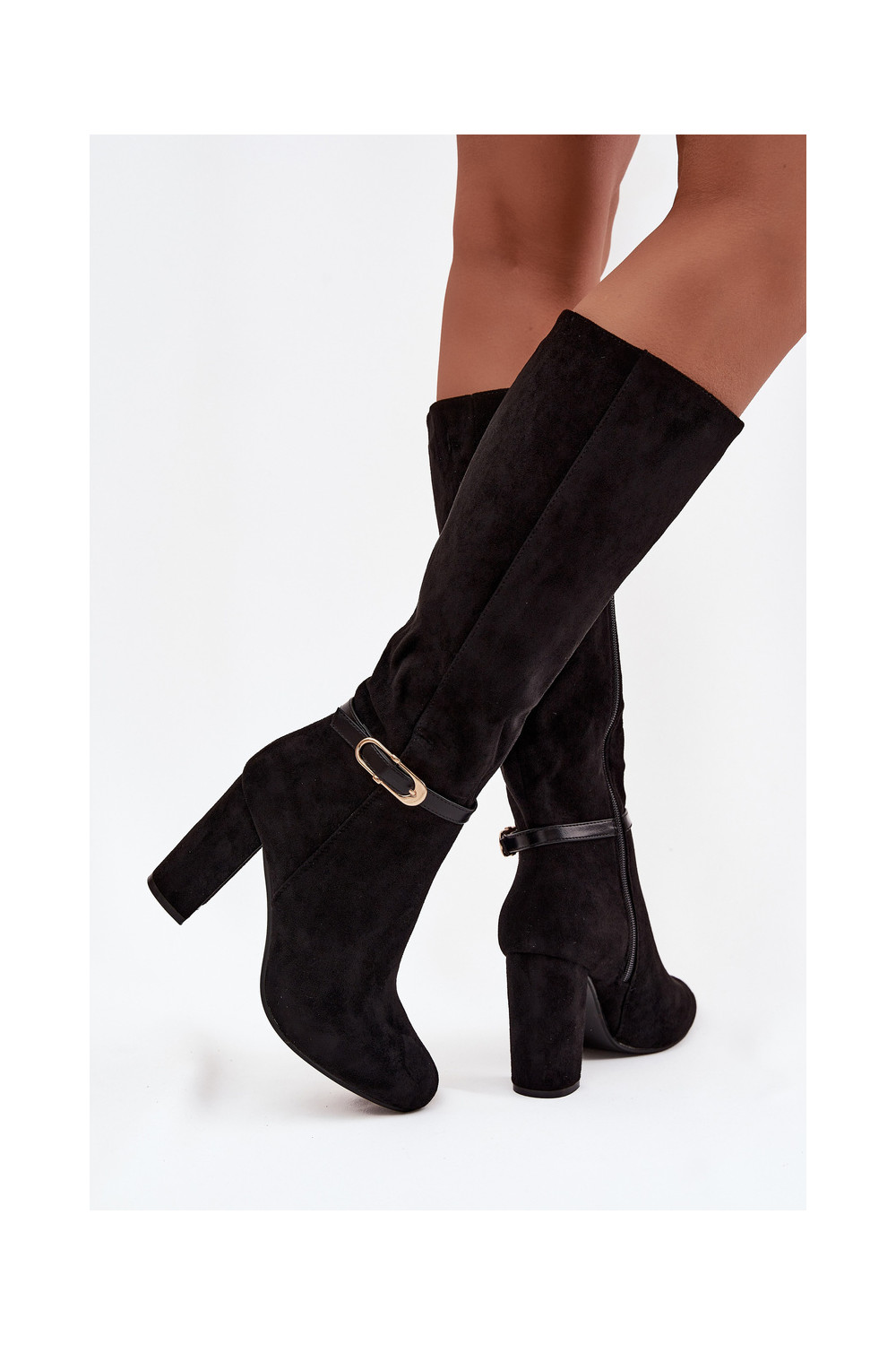 Naiste pikkade saapad kontsaga kuldsete pandlitega soojendatud musta värvi Seraphine