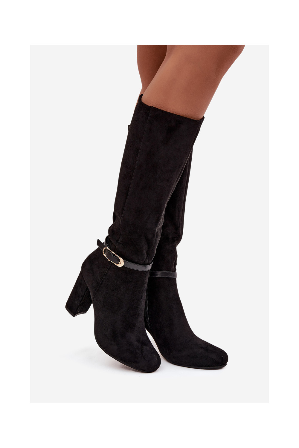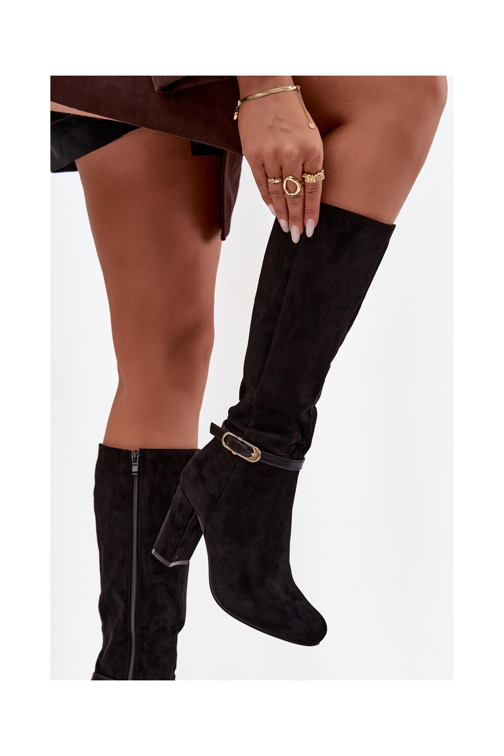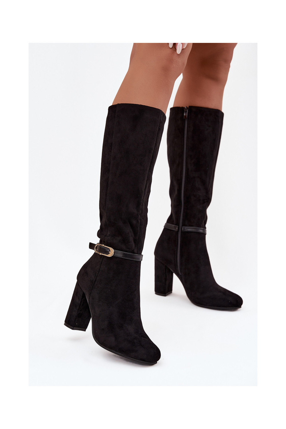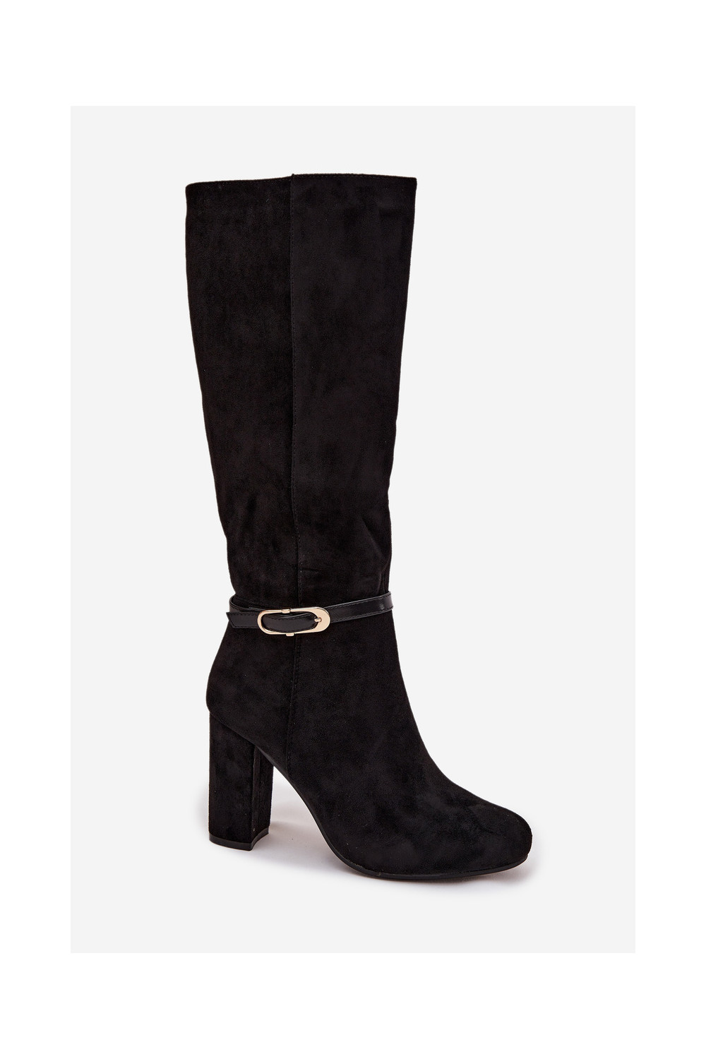 Naiste pikkade saapad kontsaga kuldsete pandlitega soojendatud musta värvi Seraphine
