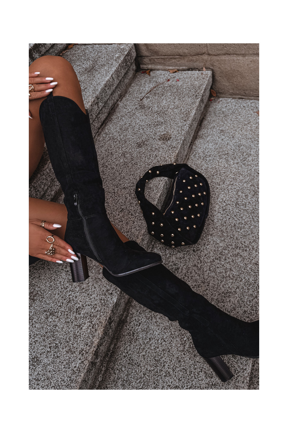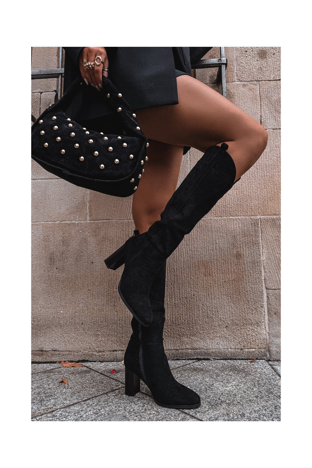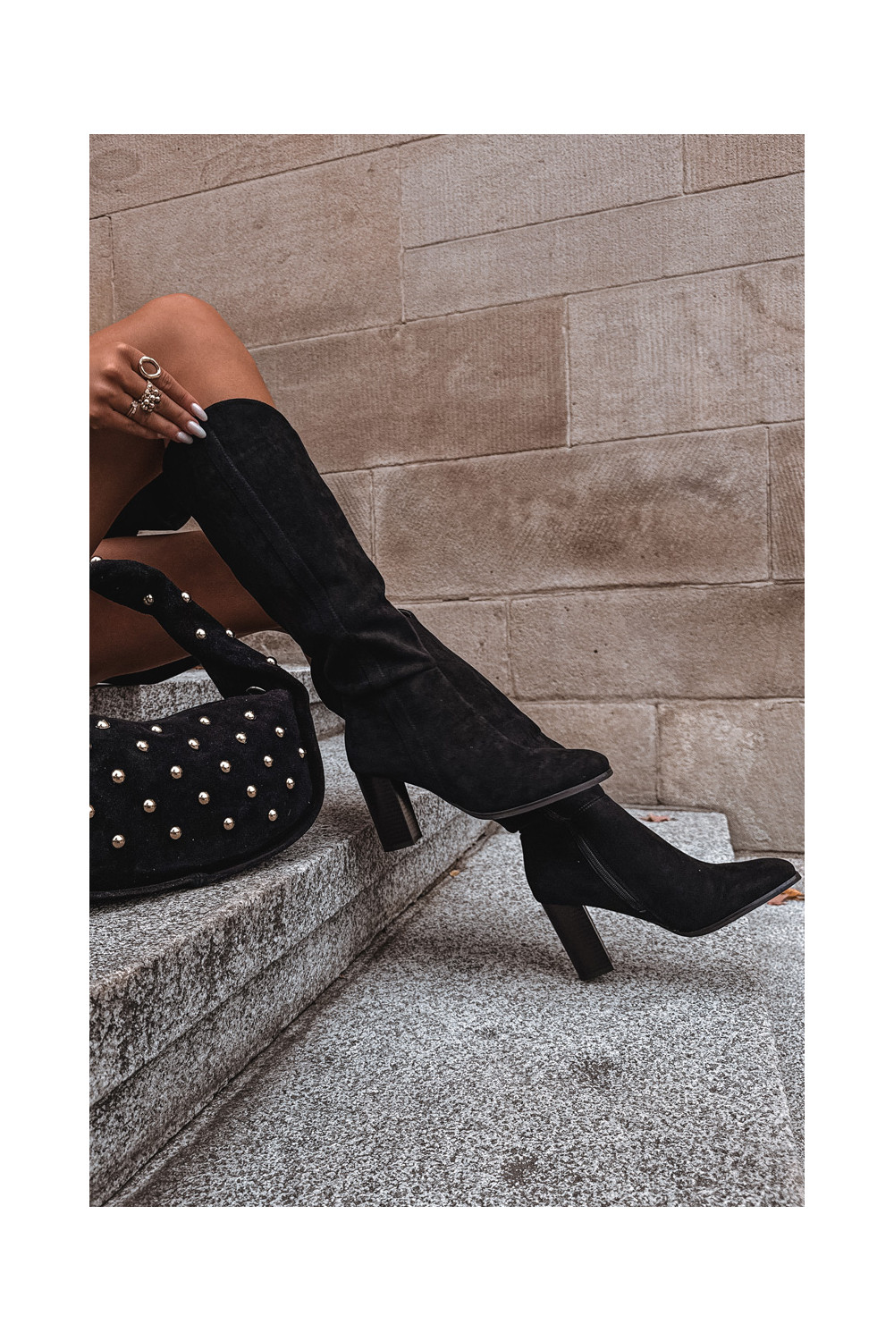 naiste pika säärega saapad kõrge jämeda kontsagaEco Suedeu msuud Prisca