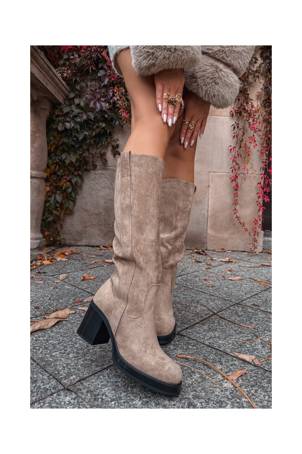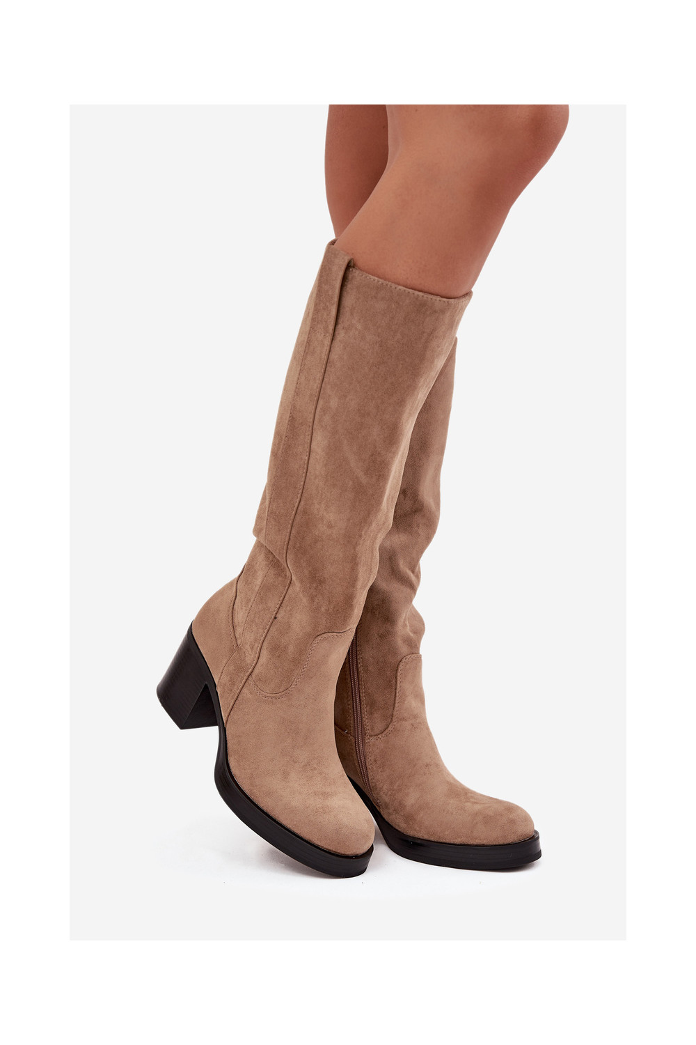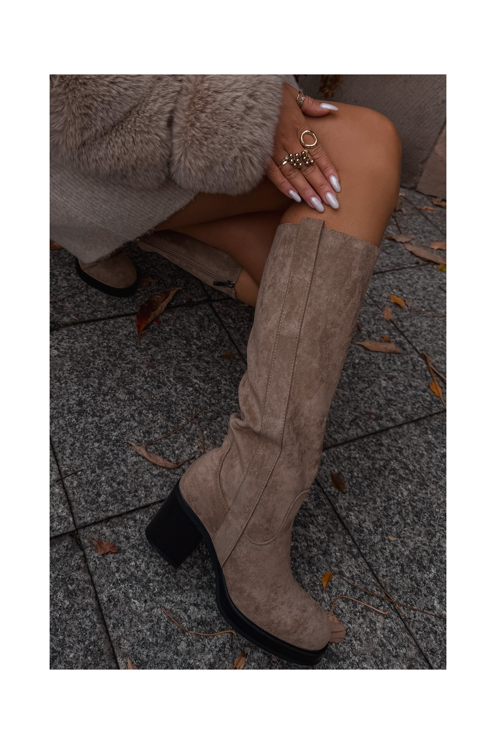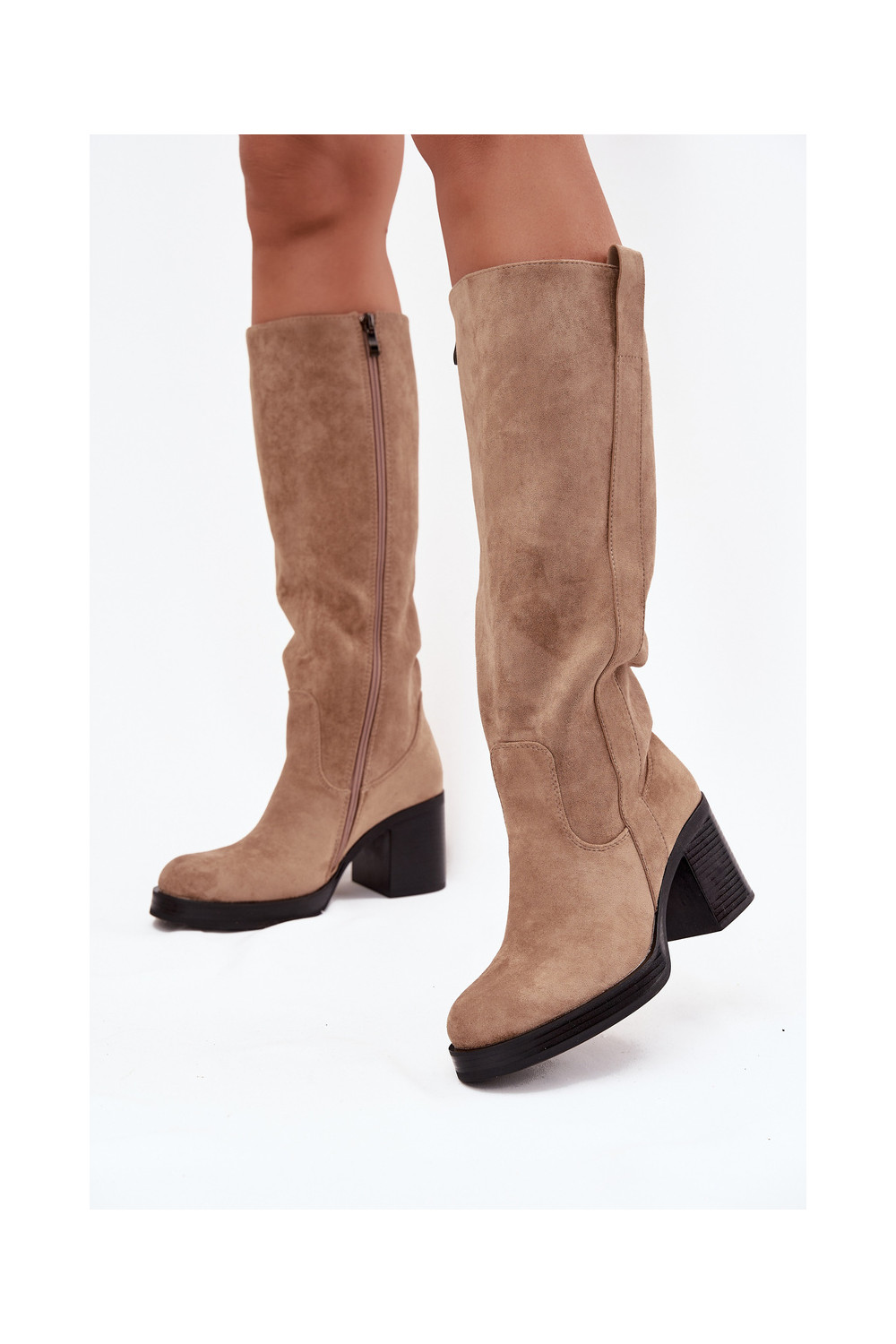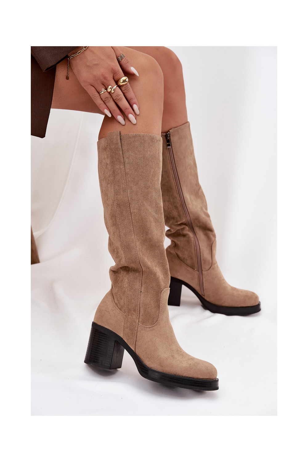 Pealiste pika säärega saapad Sellel onssiivsel poolusel beeži värvi Sanelle