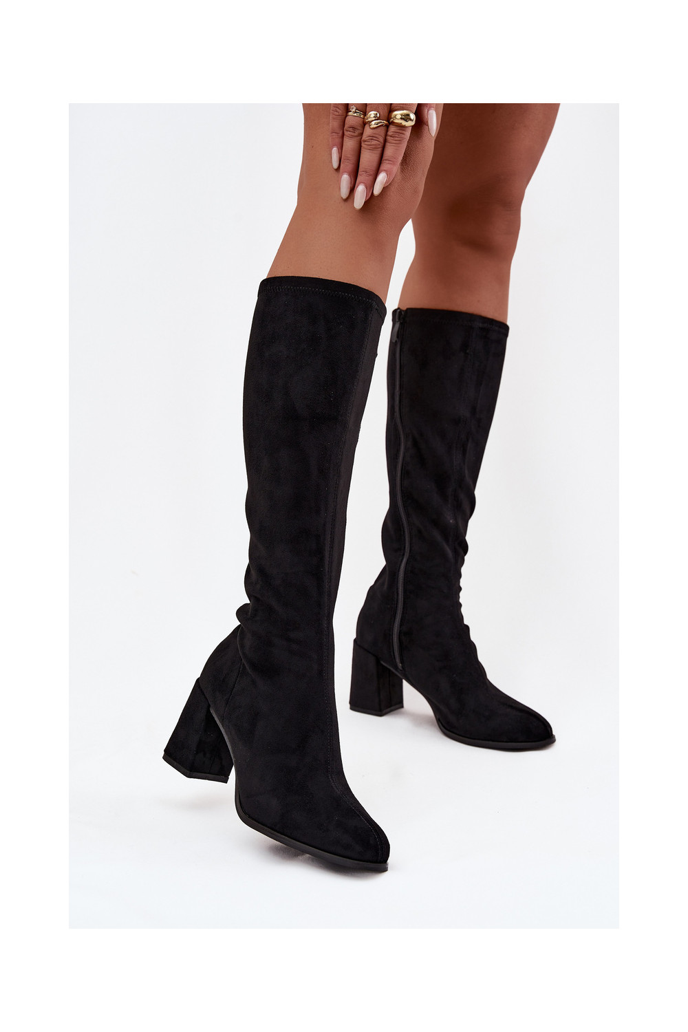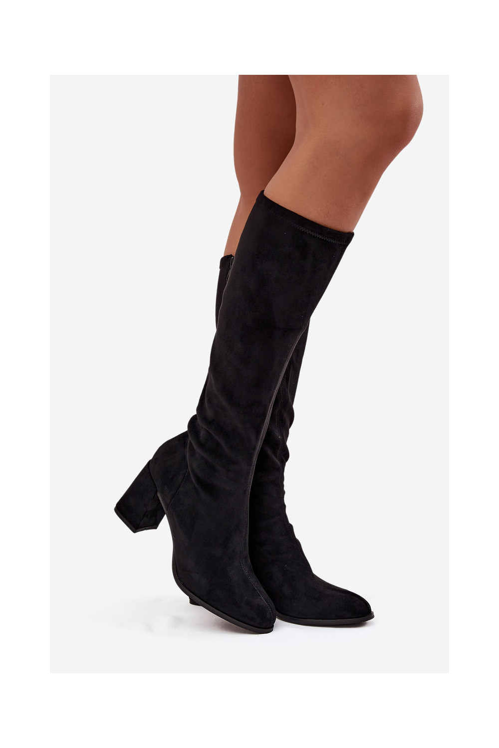 naiste pika säärega saapad kõrge jämeda kontsagaEco Suedeu msuud Yelisse