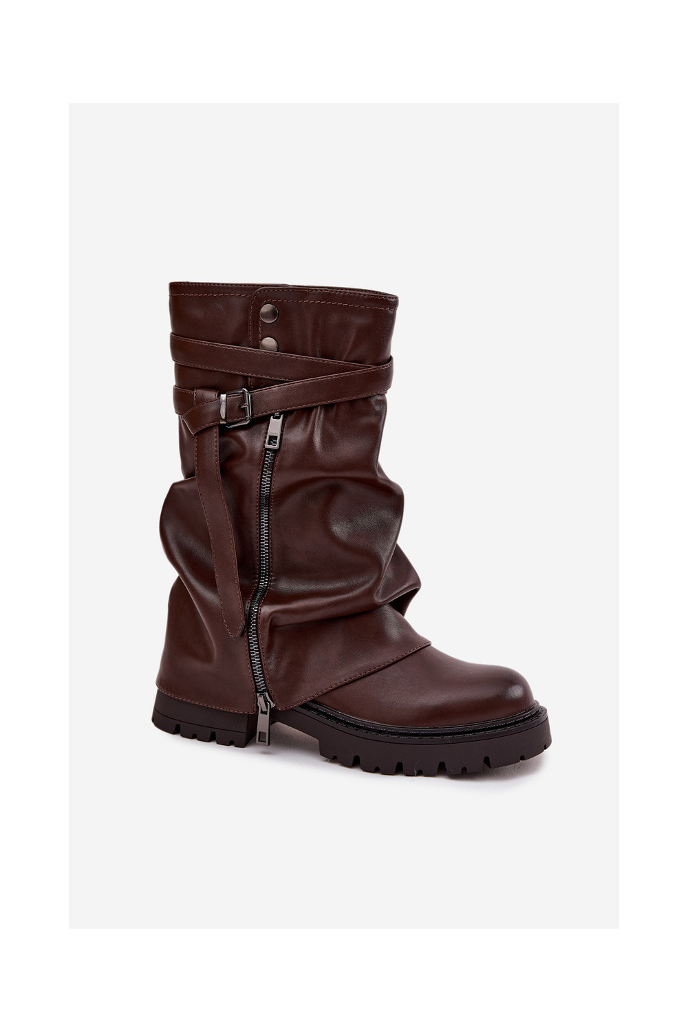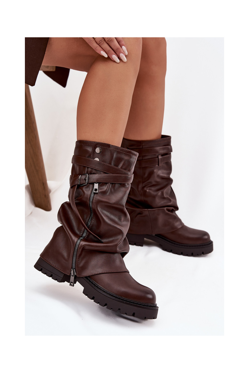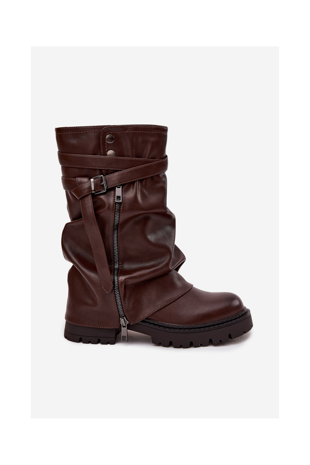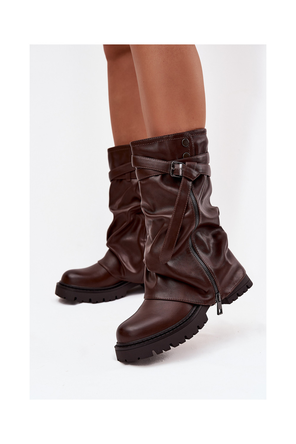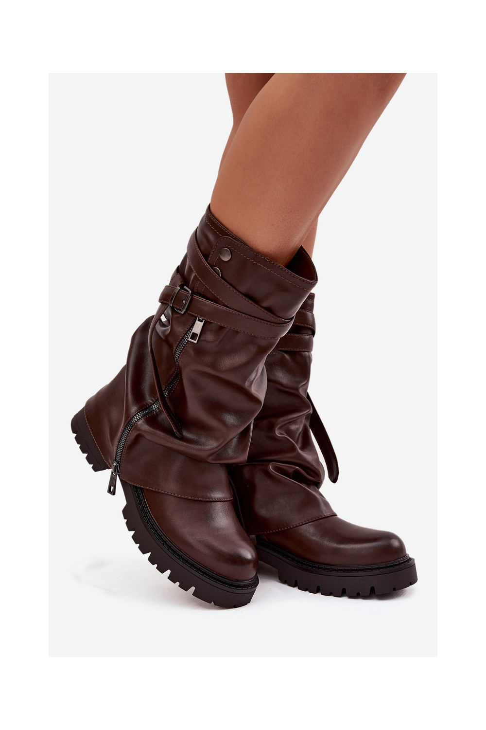 Women's Boots With Turned Top To Mid-Calf With Strap Chocolate Darisa