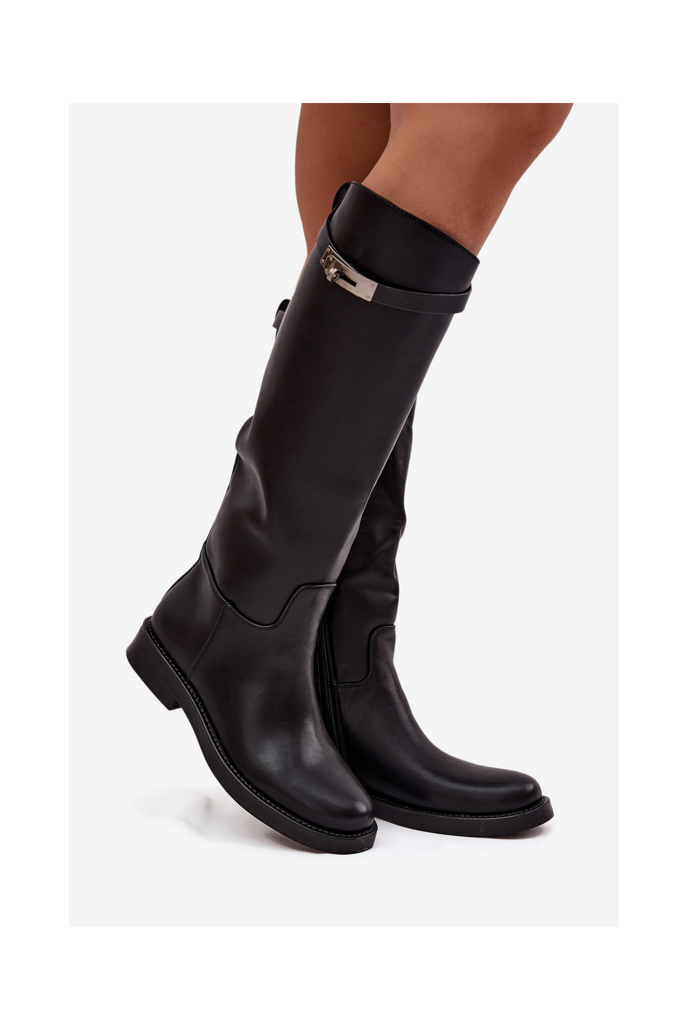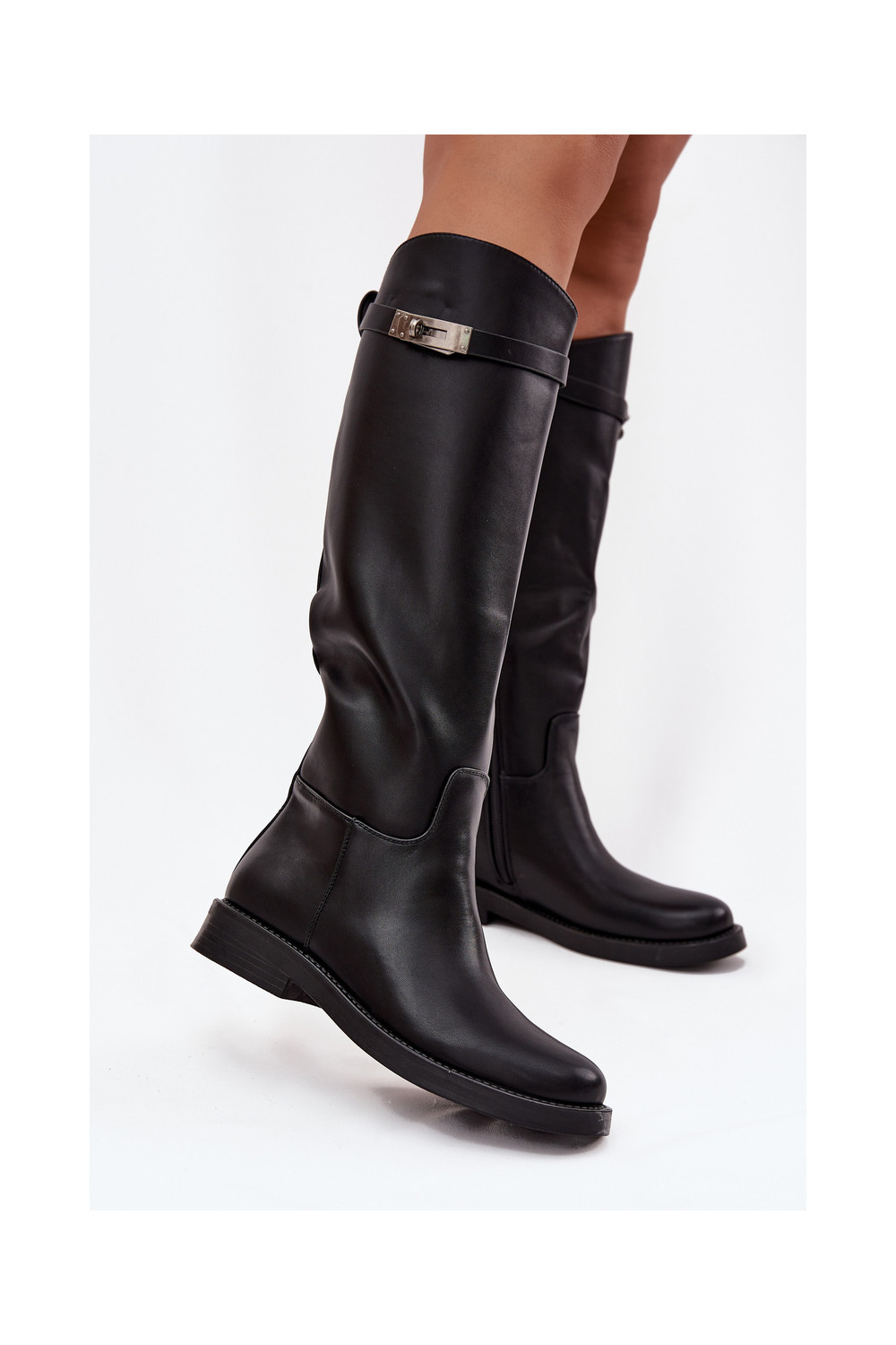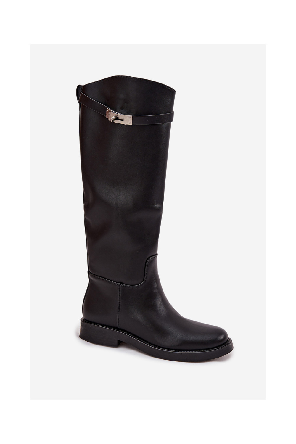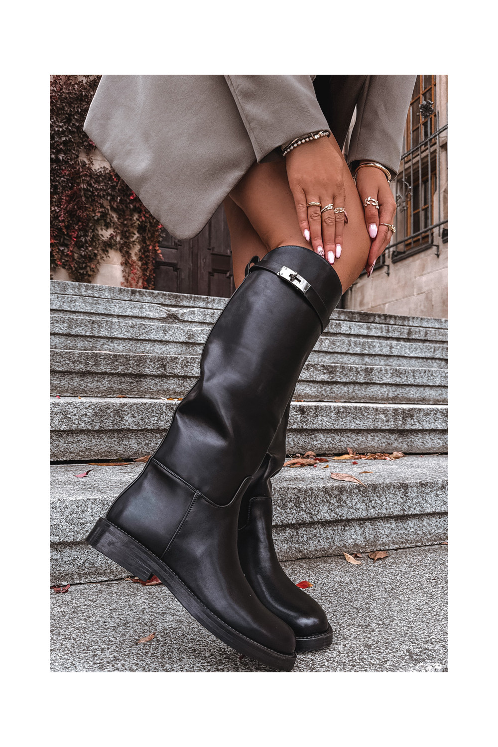 Naiste pikad saapad kaunistatud kontsadega kunstnahast, musta värvi Palisse