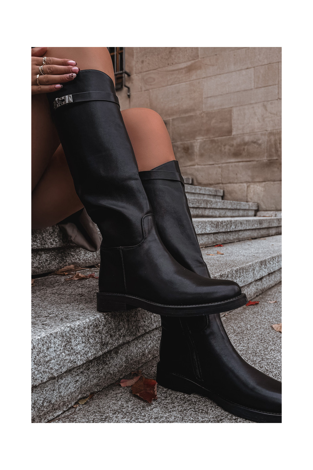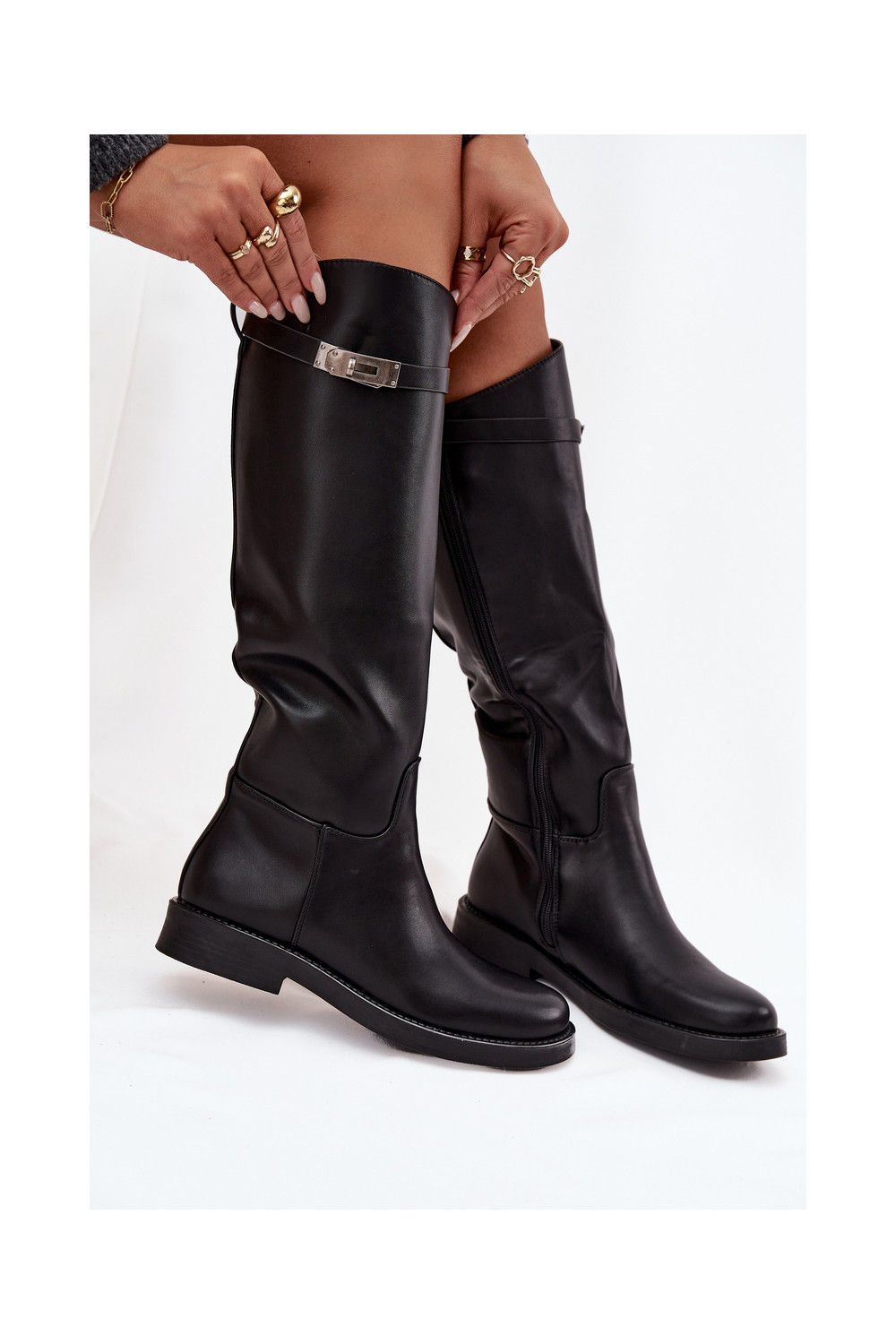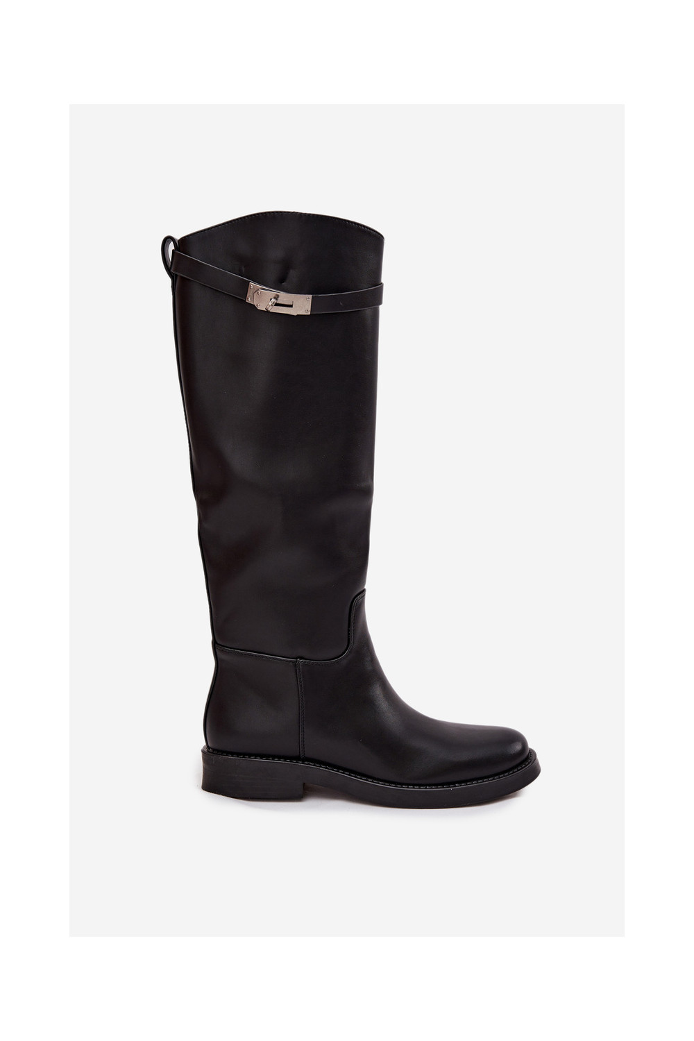 Naiste pikad saapad kaunistatud kontsadega kunstnahast, musta värvi Palisse