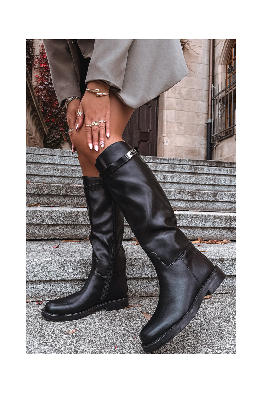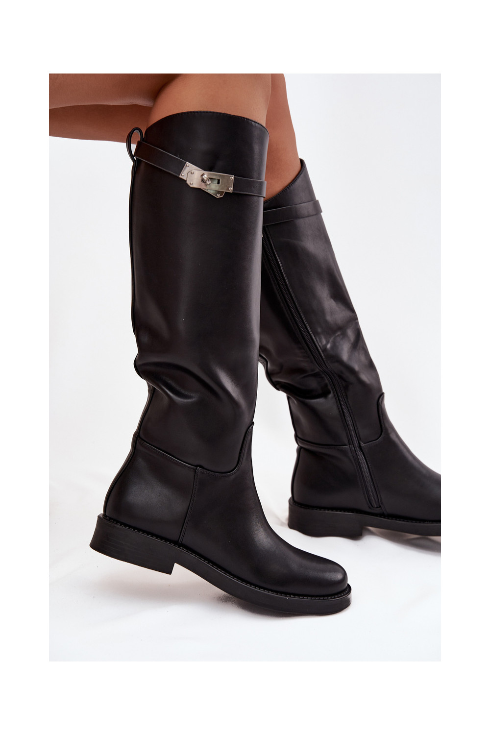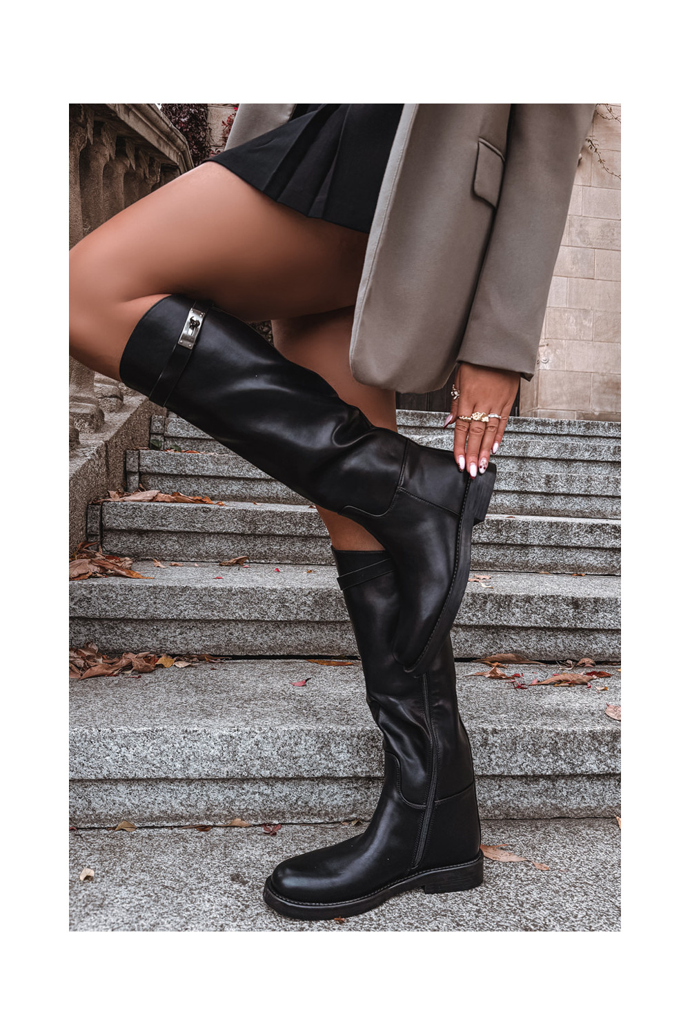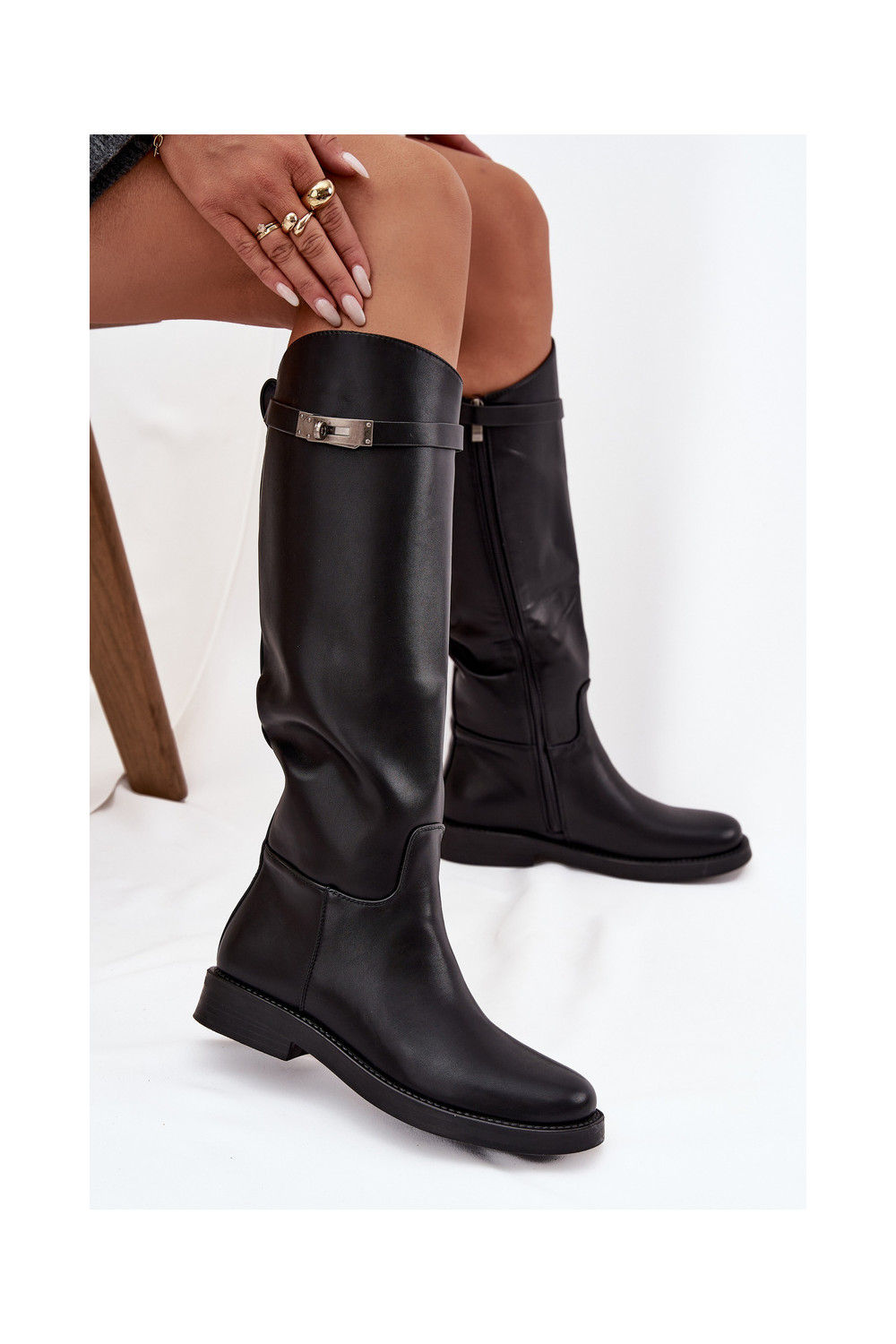 Naiste pikad saapad kaunistatud kontsadega kunstnahast, musta värvi Palisse