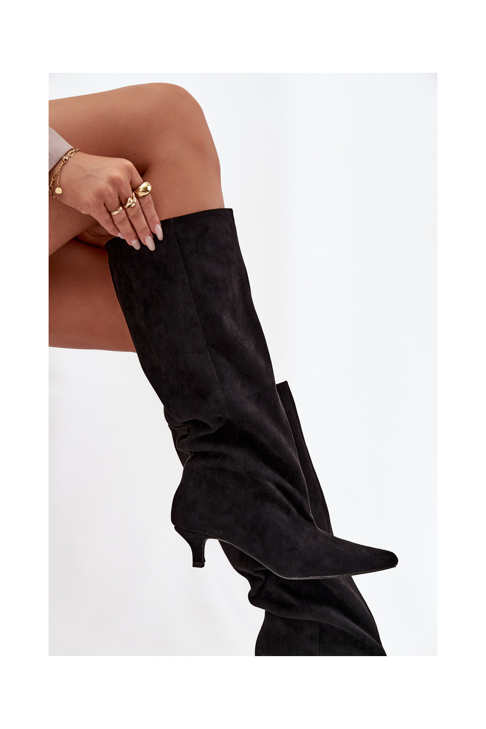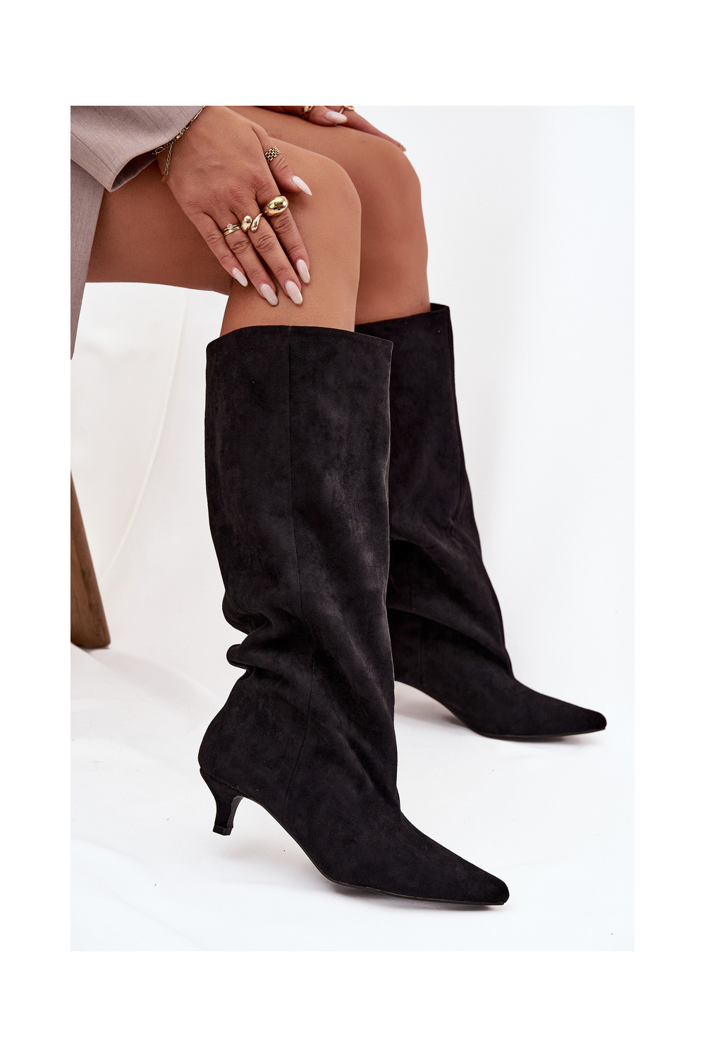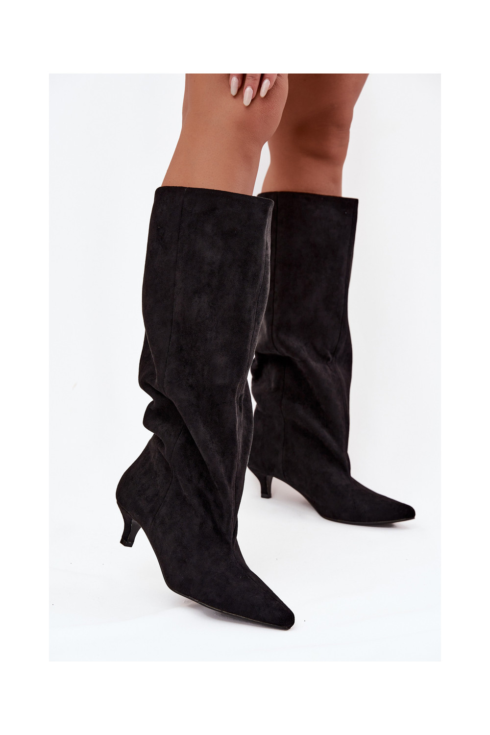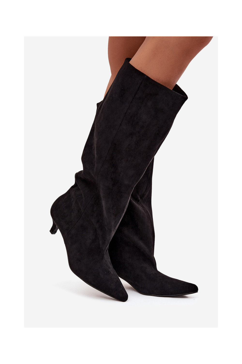 naiste pika säärega saapad kõrge jämeda kontsagaEco Suedeu msuud Pheona