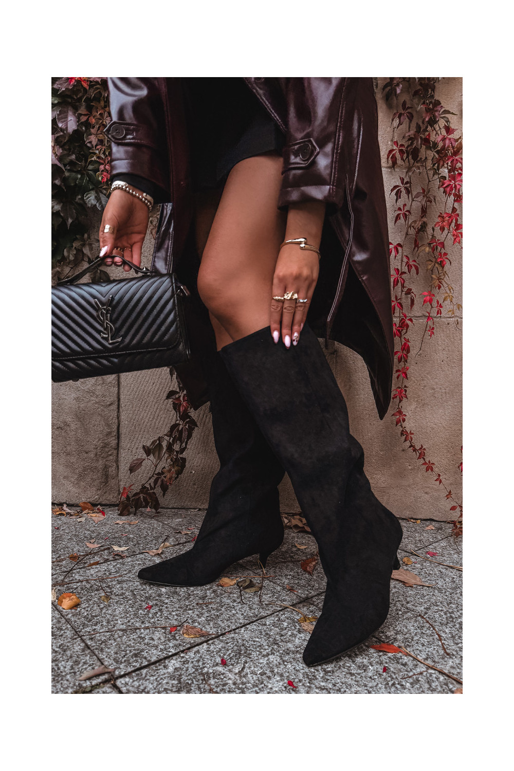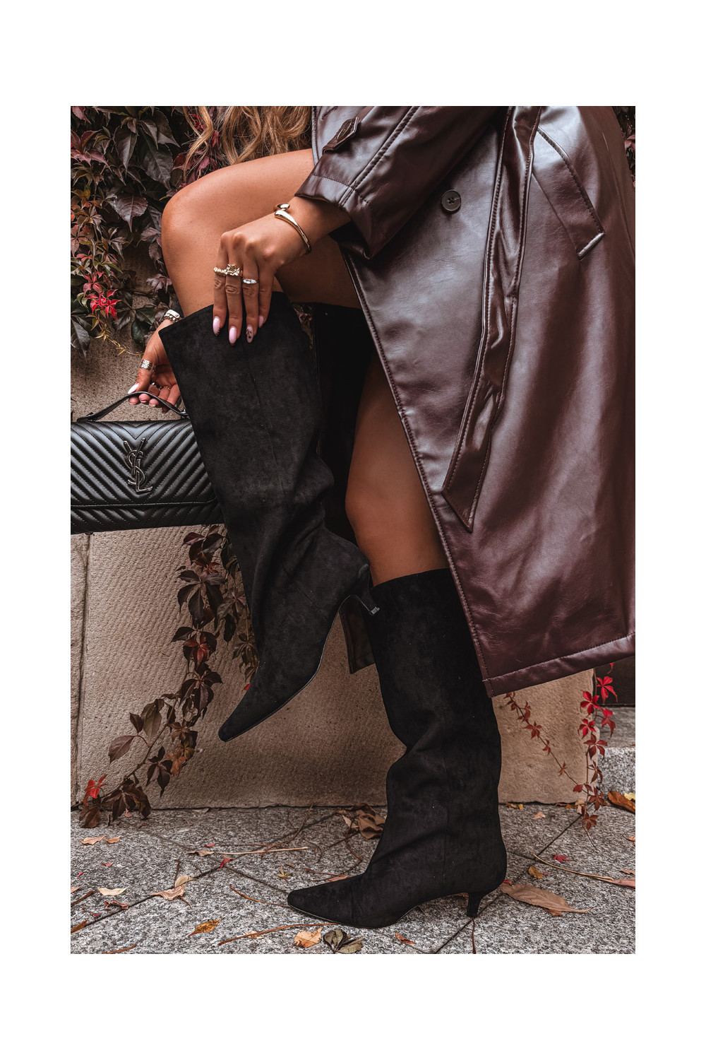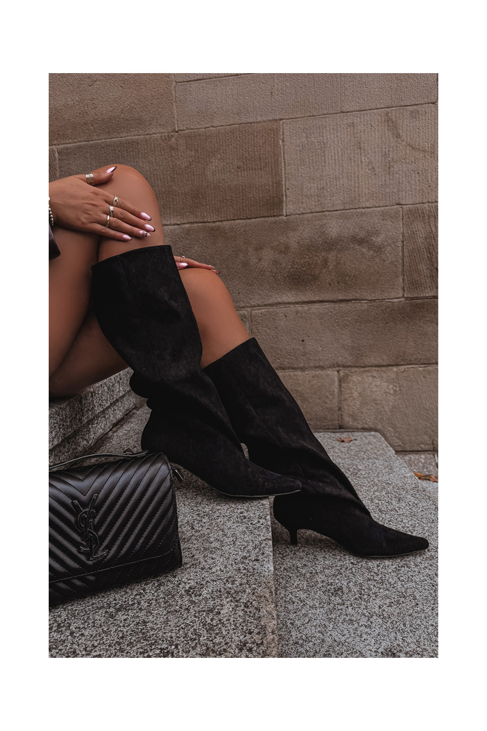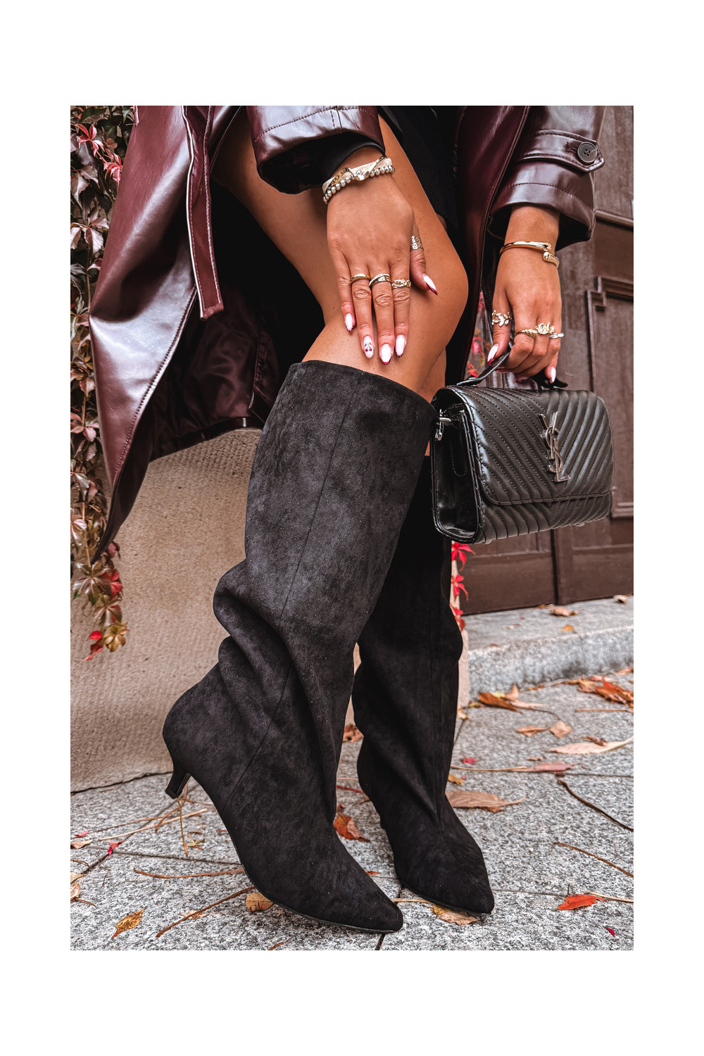 naiste pika säärega saapad kõrge jämeda kontsagaEco Suedeu msuud Pheona