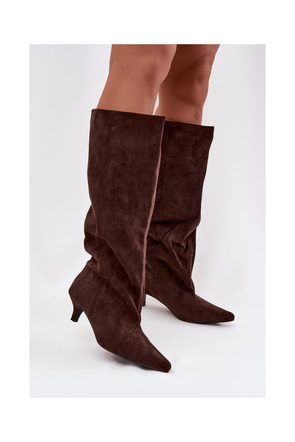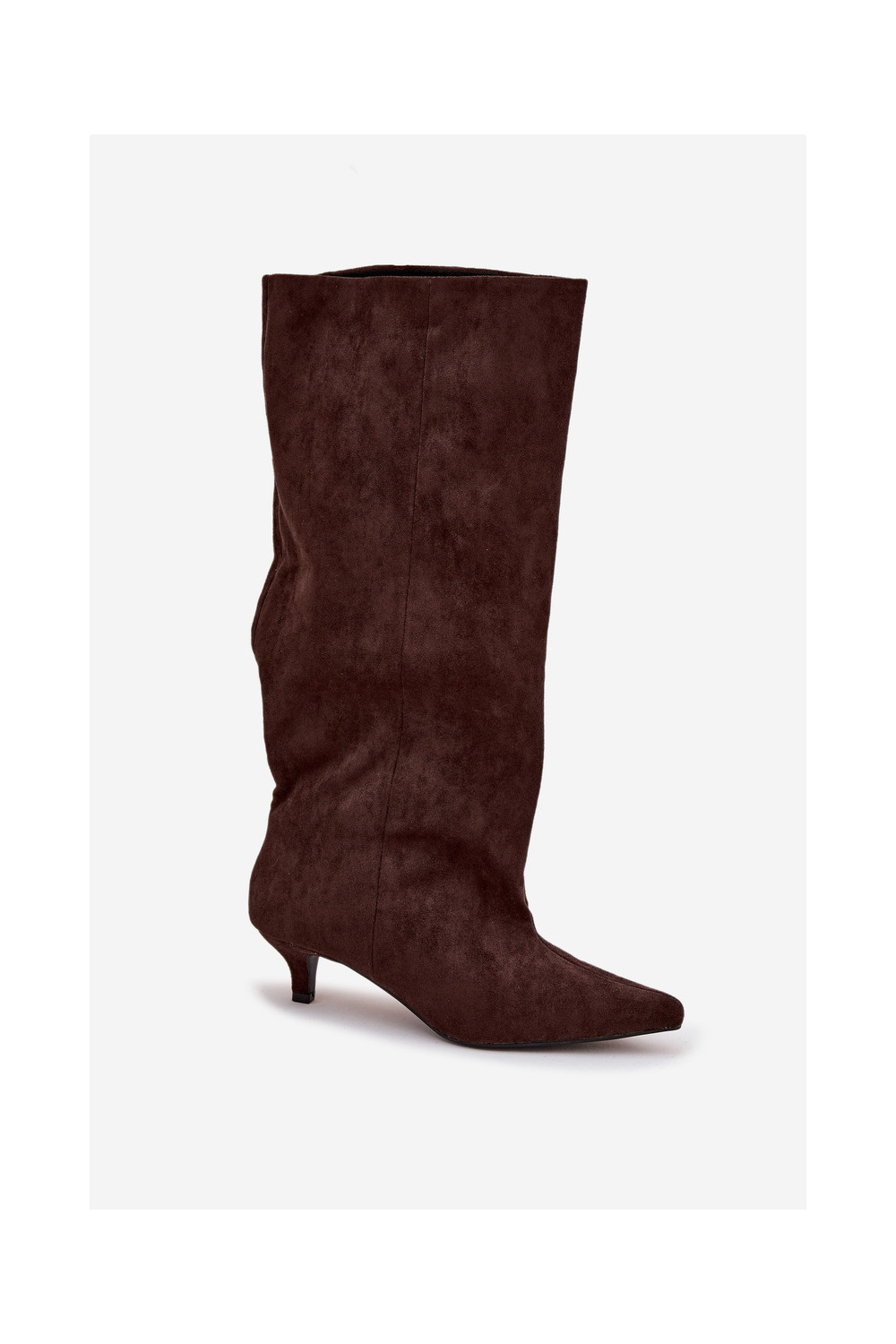 naiste pika säärega saapad kõrge jämeda kontsagaEco Suedeu Czekoladosissee Pheona
