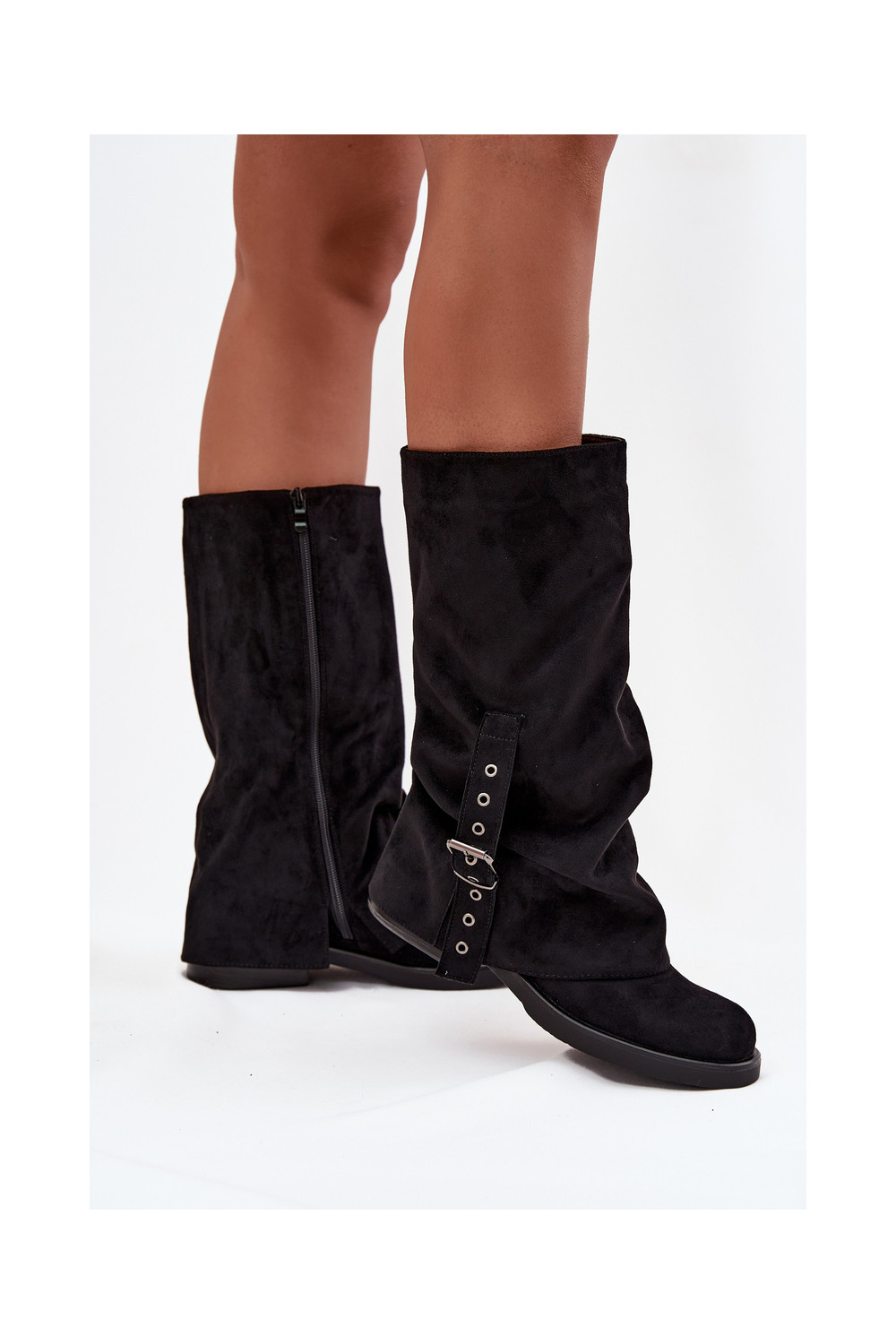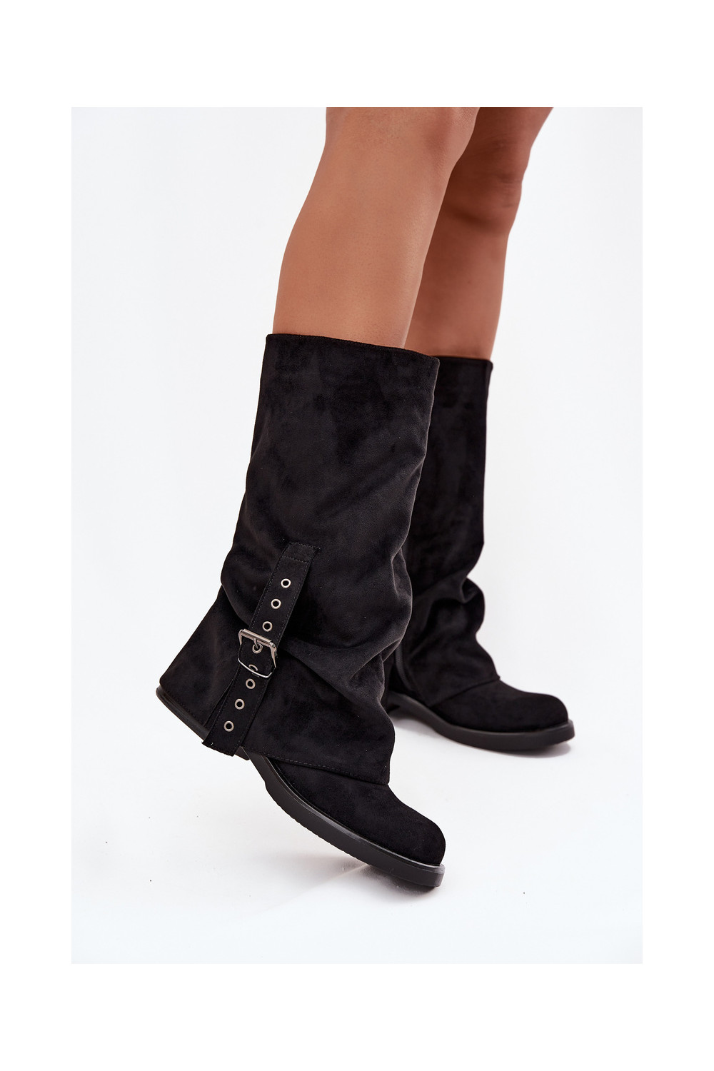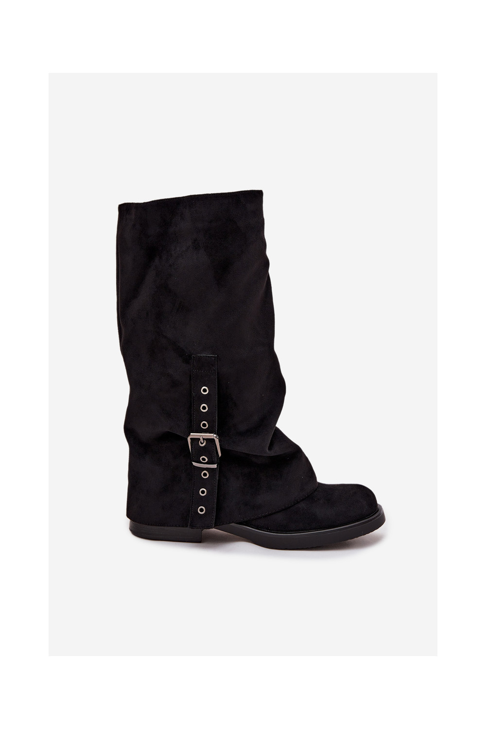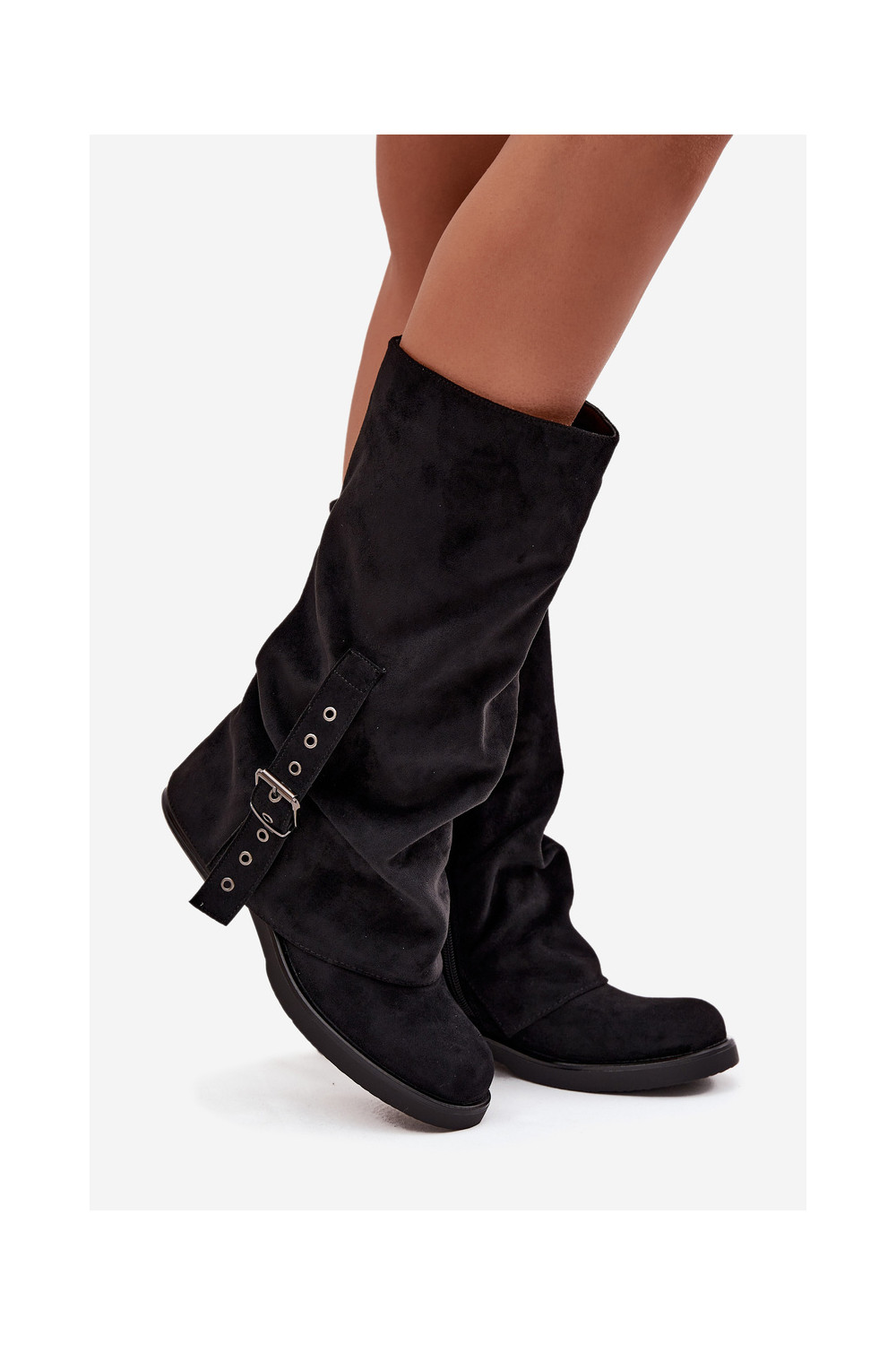 Women's Boots With Wrinkled Shaft And Buckle Black Ophelis