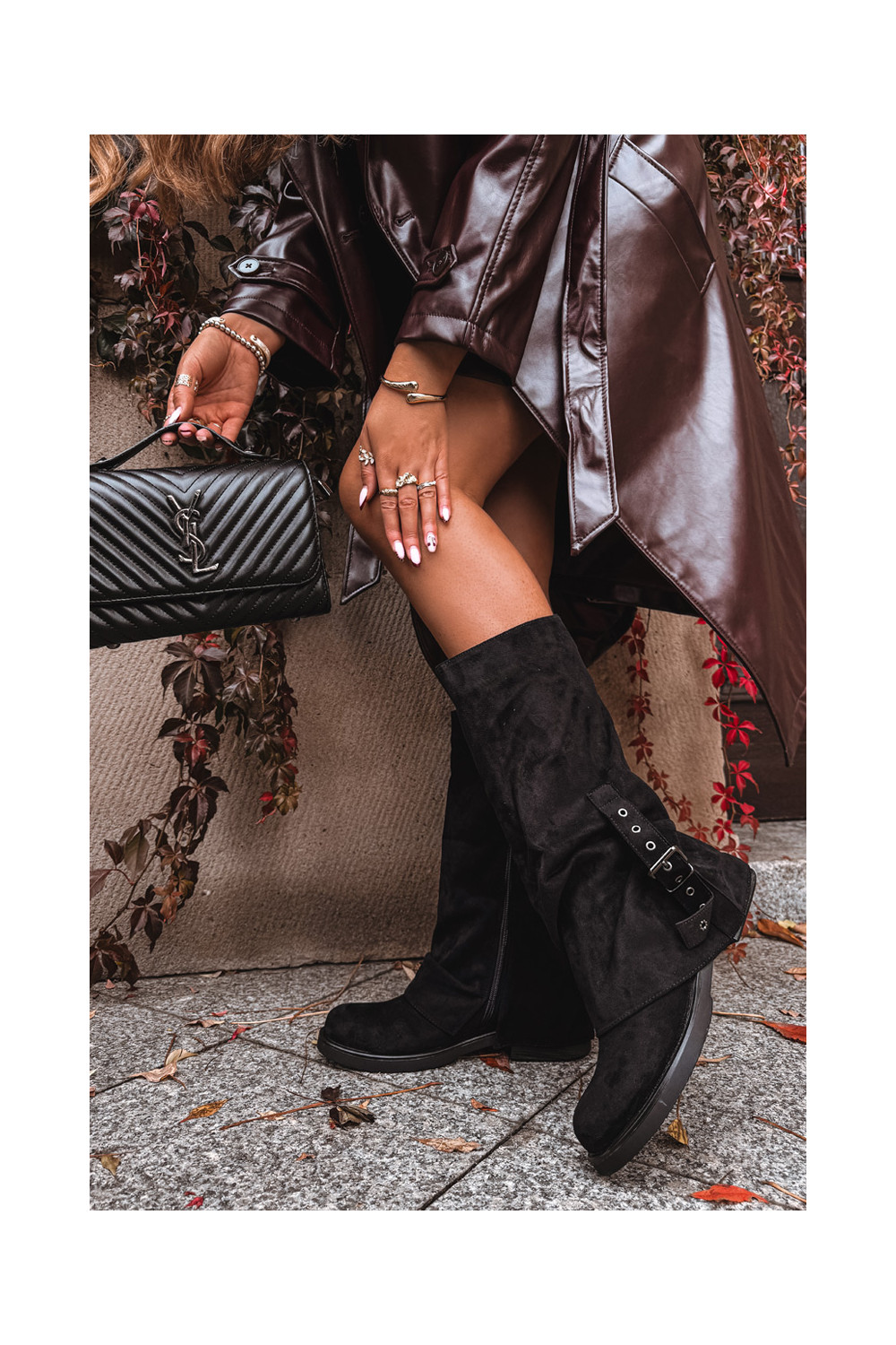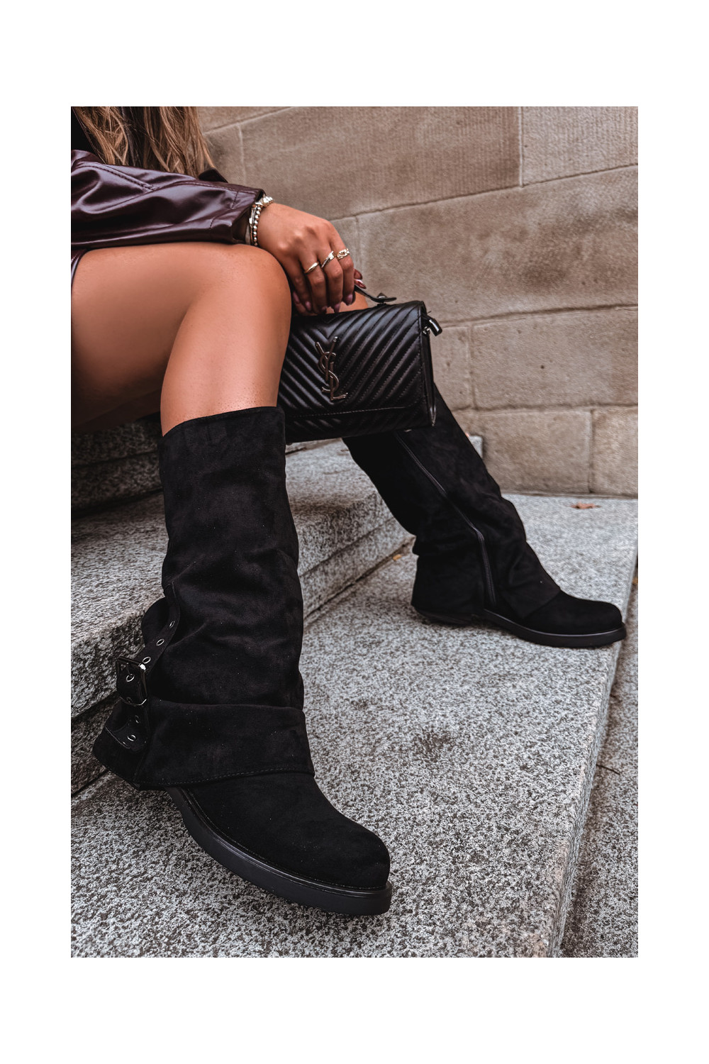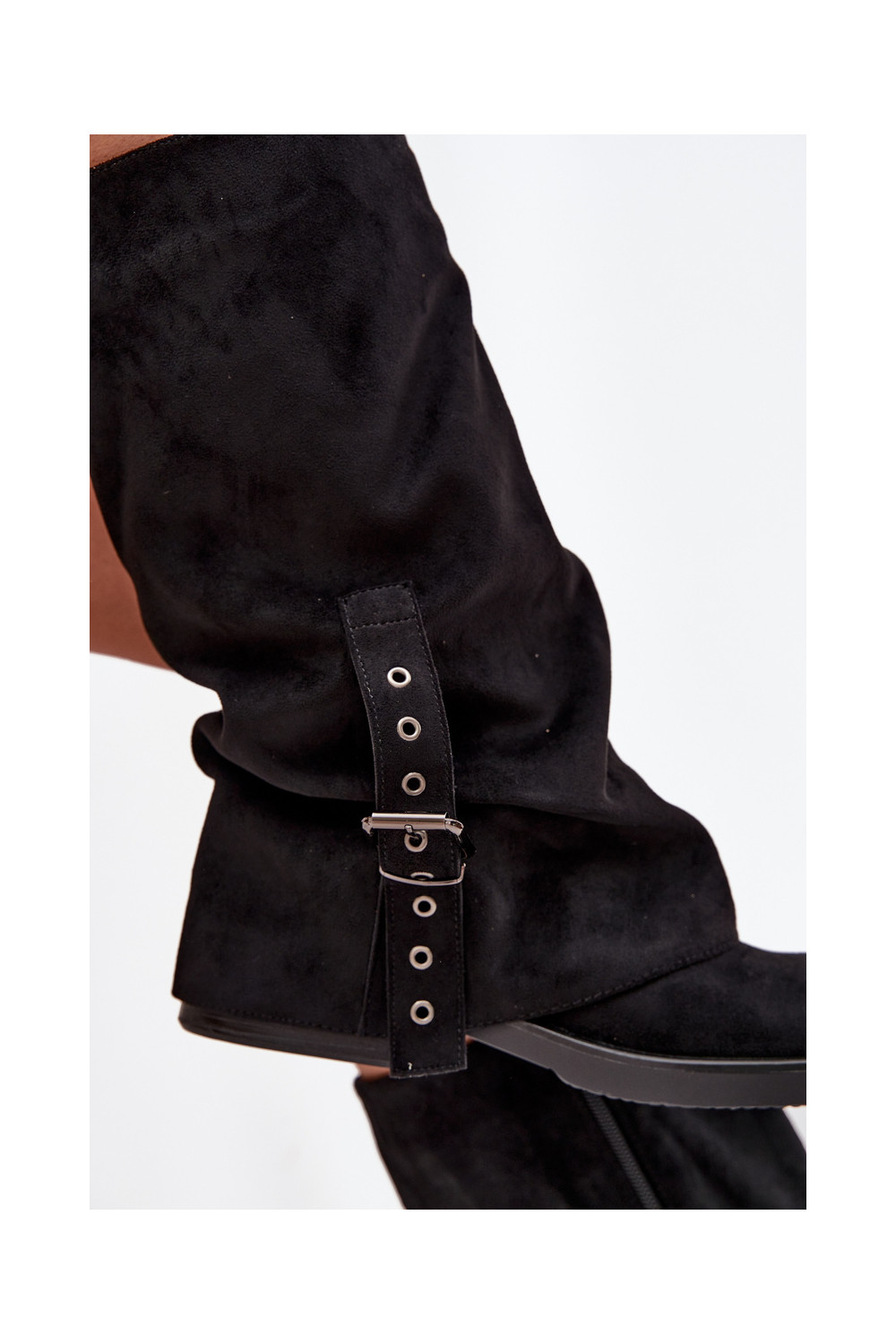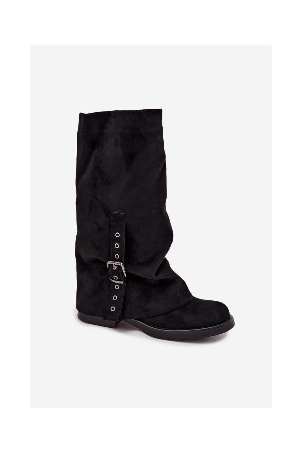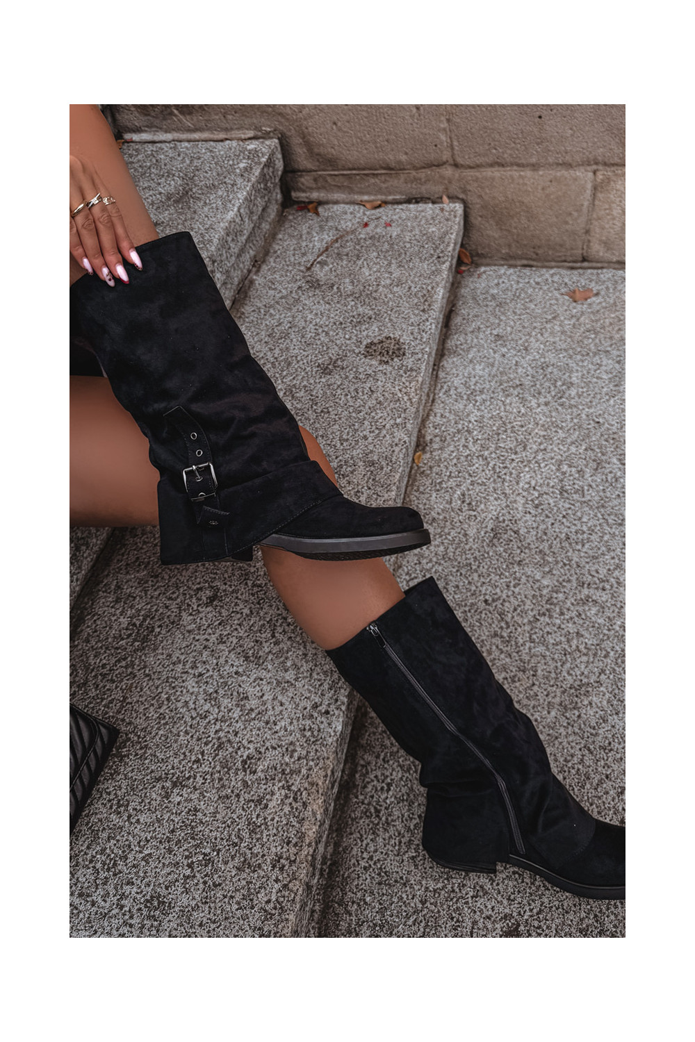 Women's Boots With Wrinkled Shaft And Buckle Black Ophelis