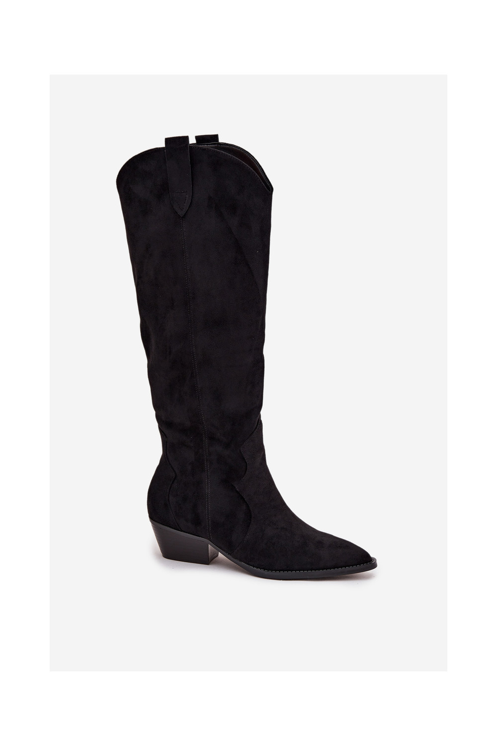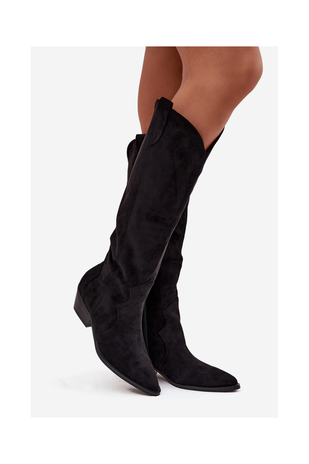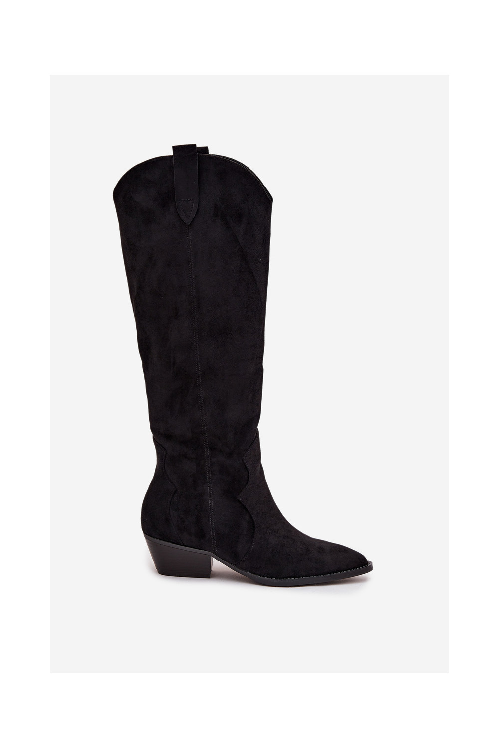 Kunstnahk pikad saapad kauboi stiilis naistele kontsadega musta värvi Jenaya