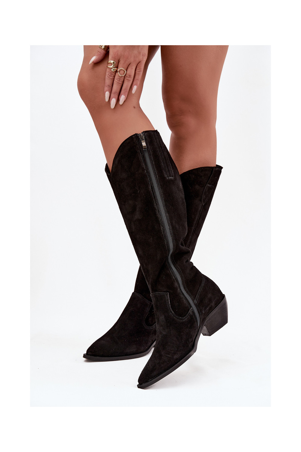 pika säärega saapad Z Naturalnego Zamszu voodriga Zazoo 4225 Must
