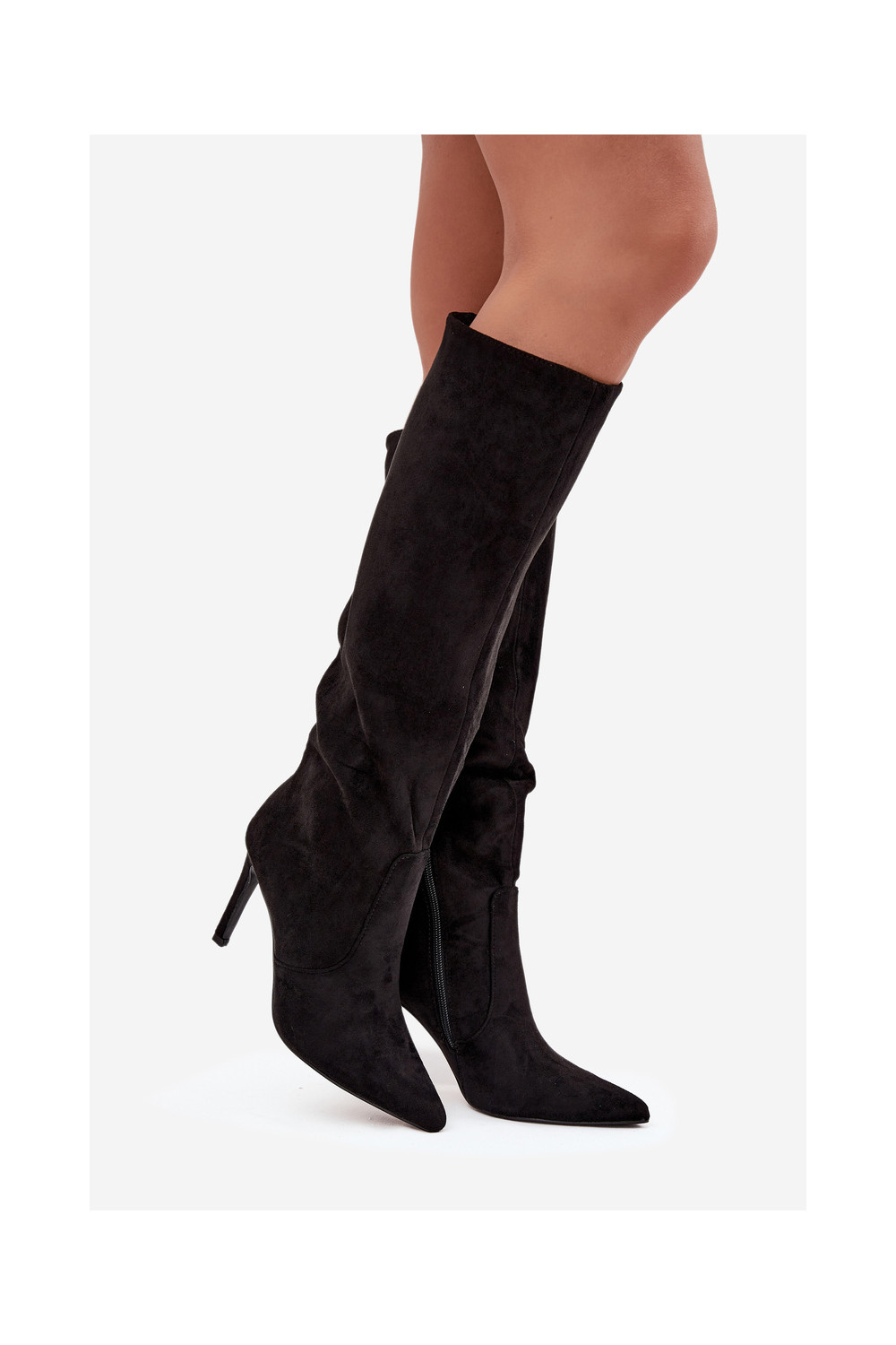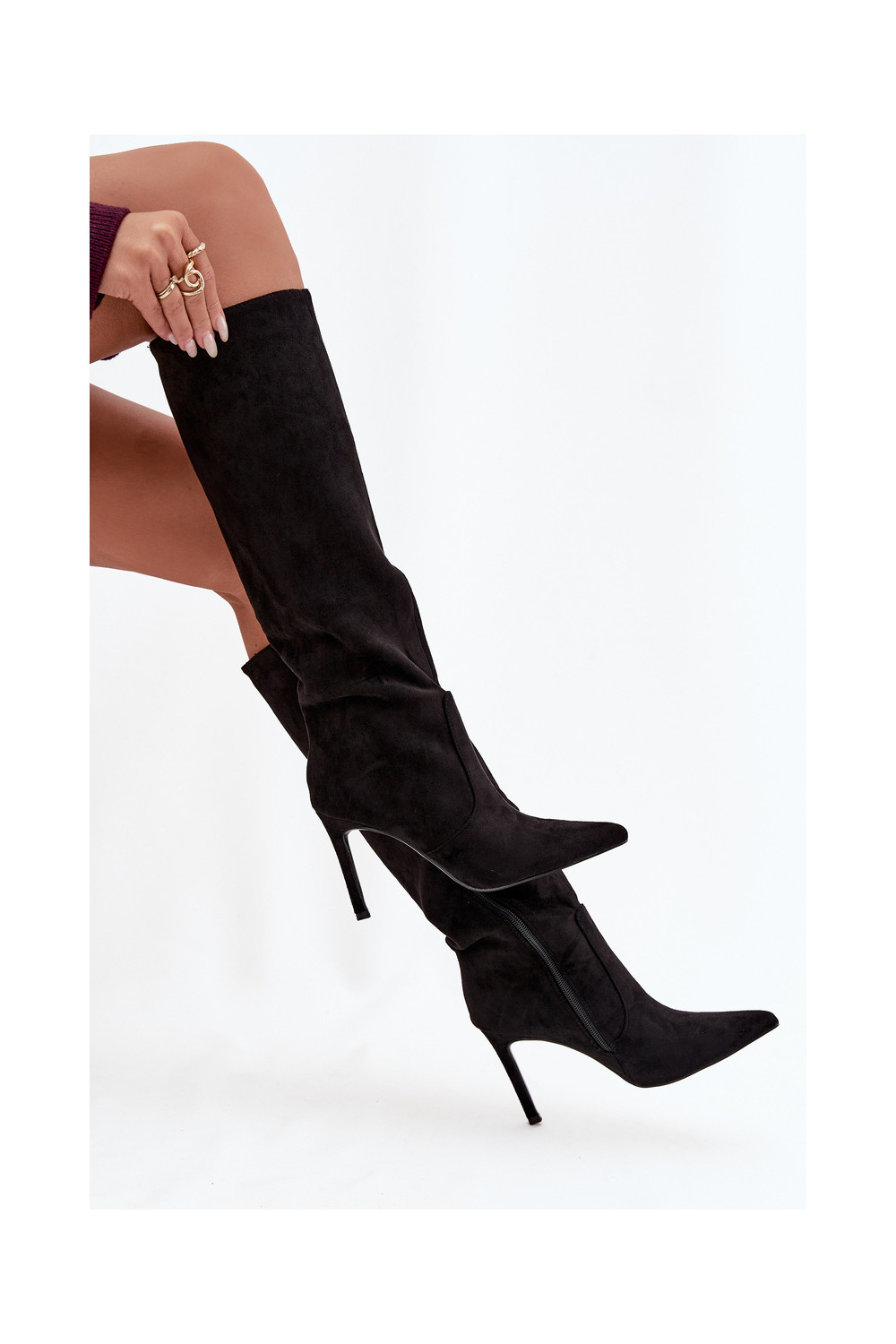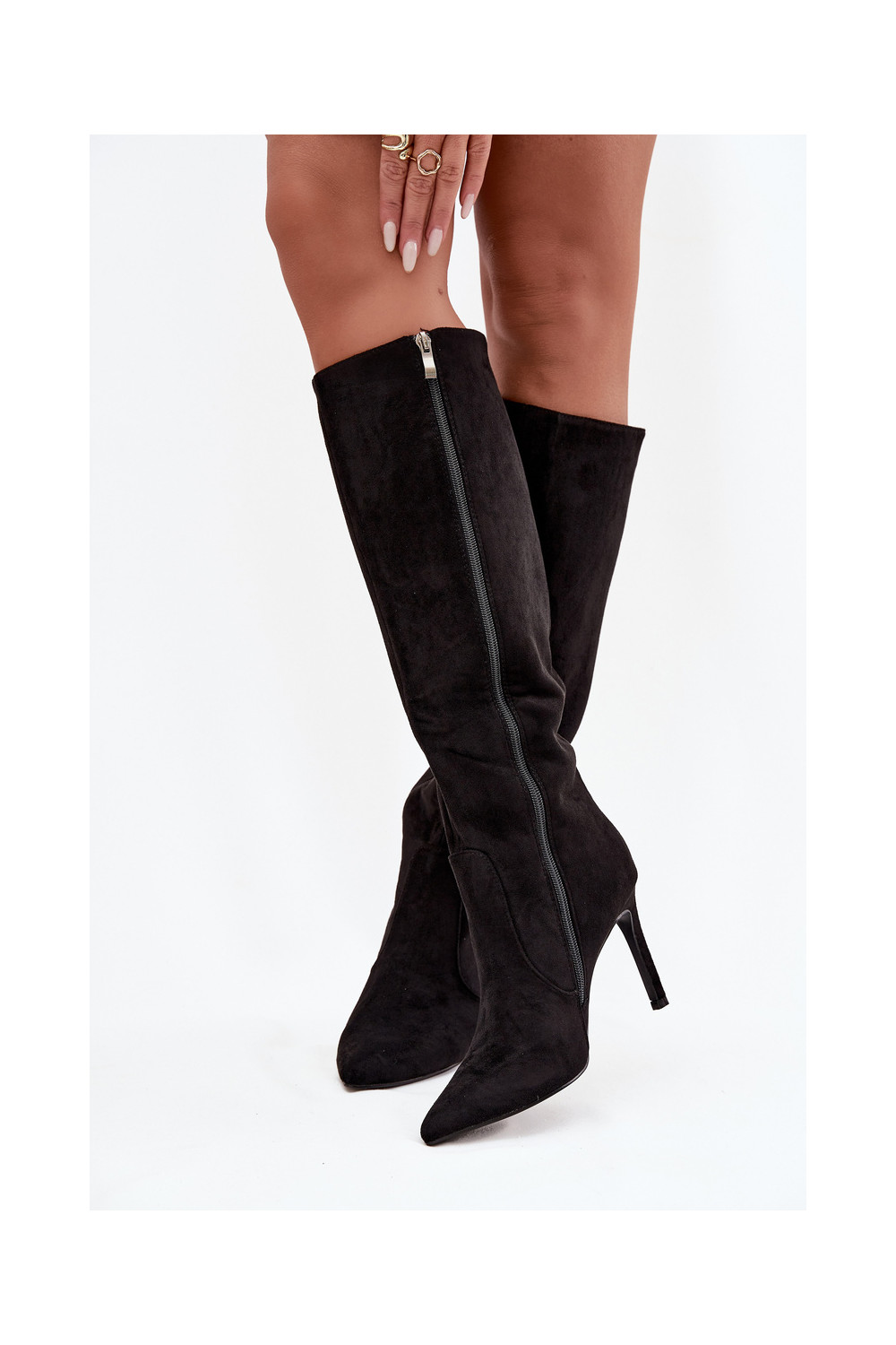 voodriga naiste pika säärega saapad kõrge jämeda kontsaga Z u Must Rosavine