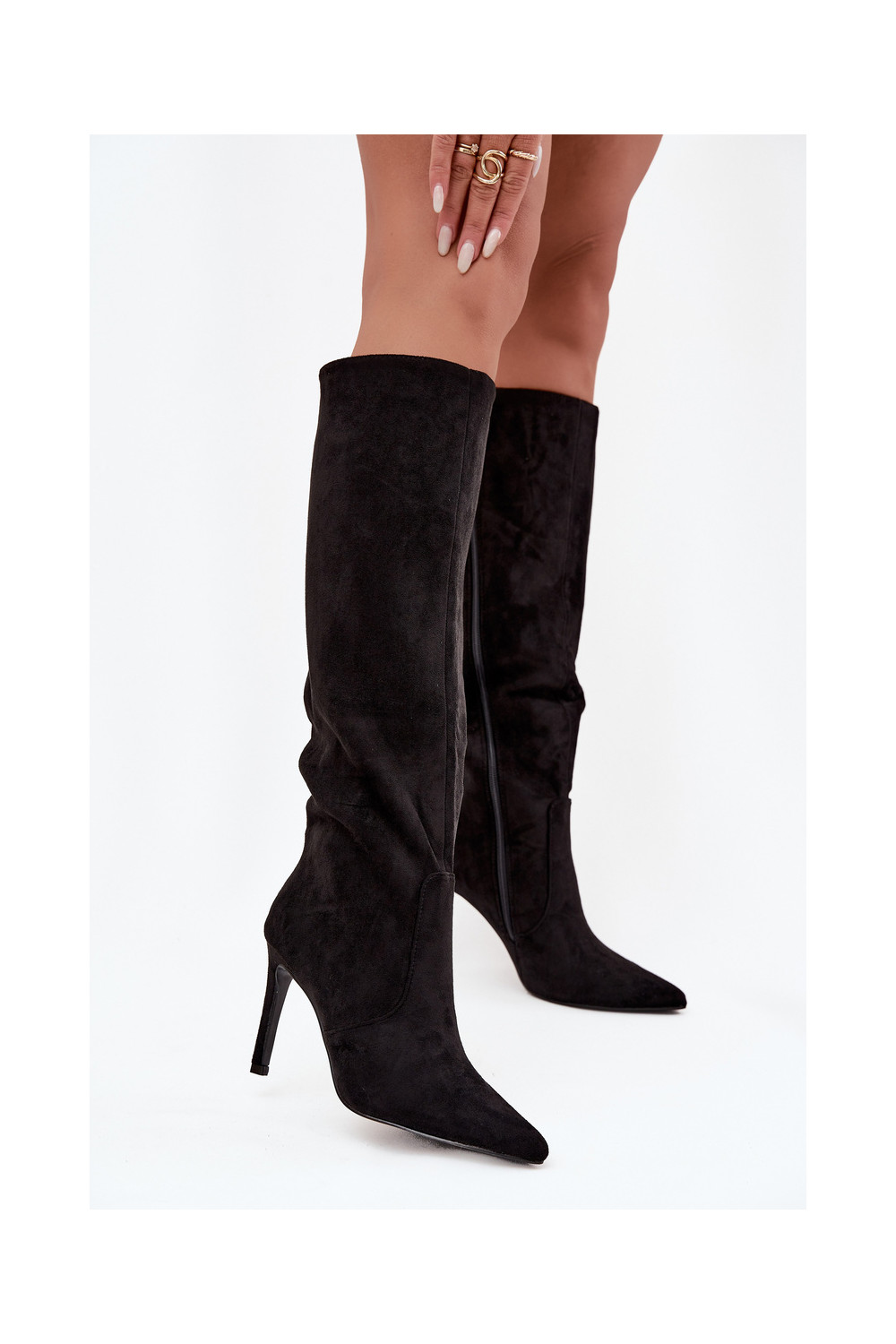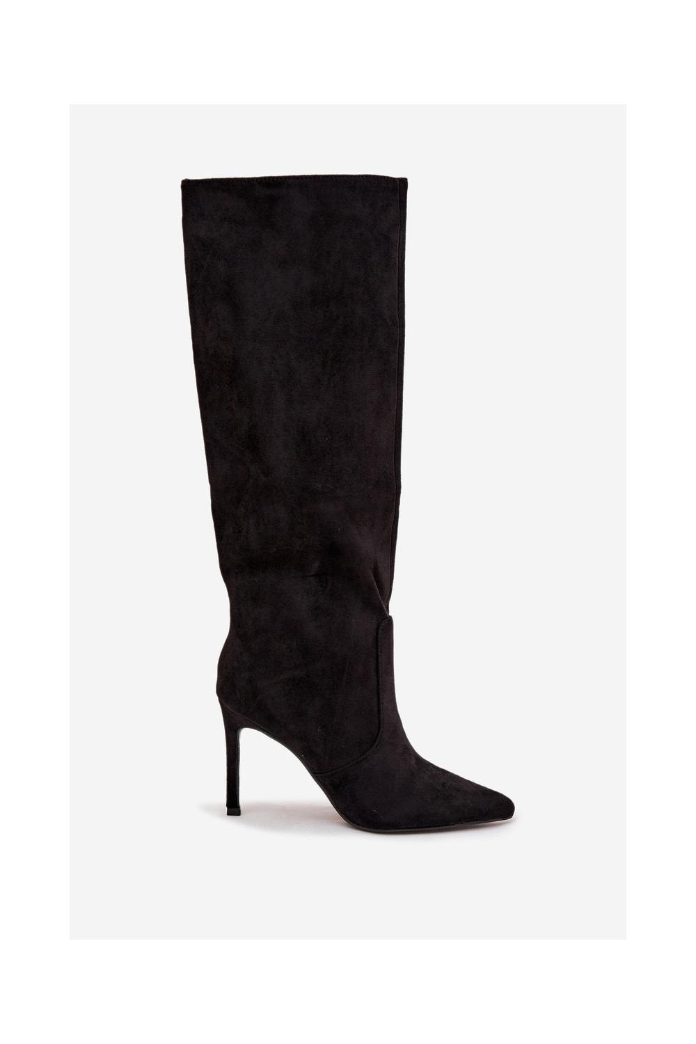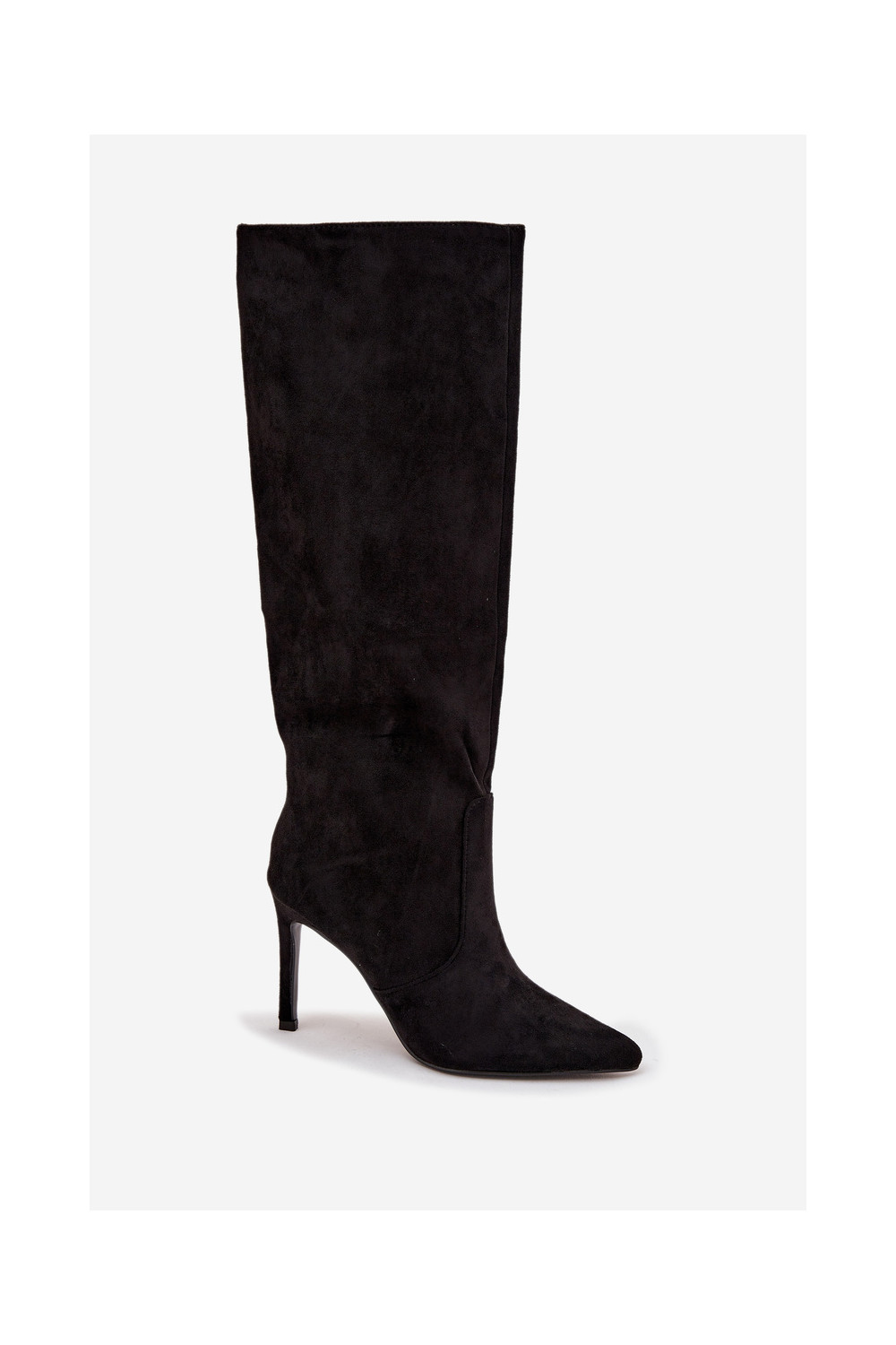 voodriga naiste pika säärega saapad kõrge jämeda kontsaga Z u Must Rosavine