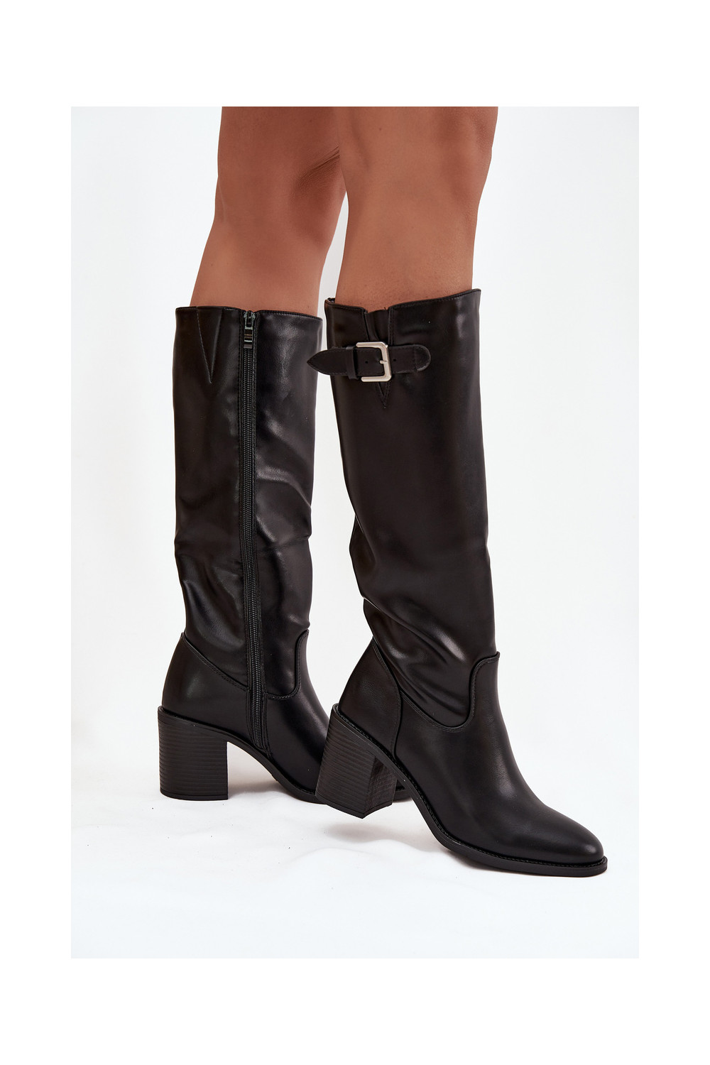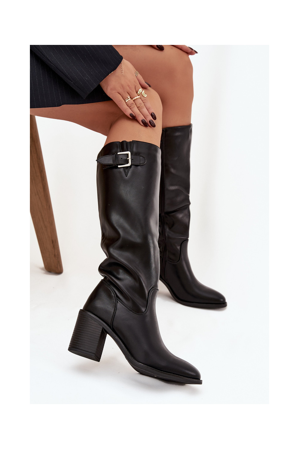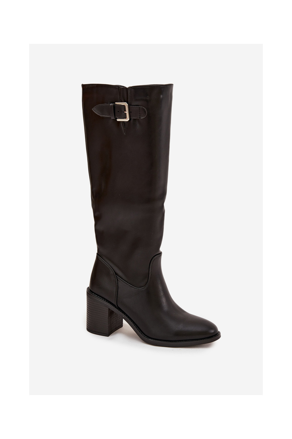 Naisteline kõrged saapad kontsade ja pandlatega musta värvi Brenira