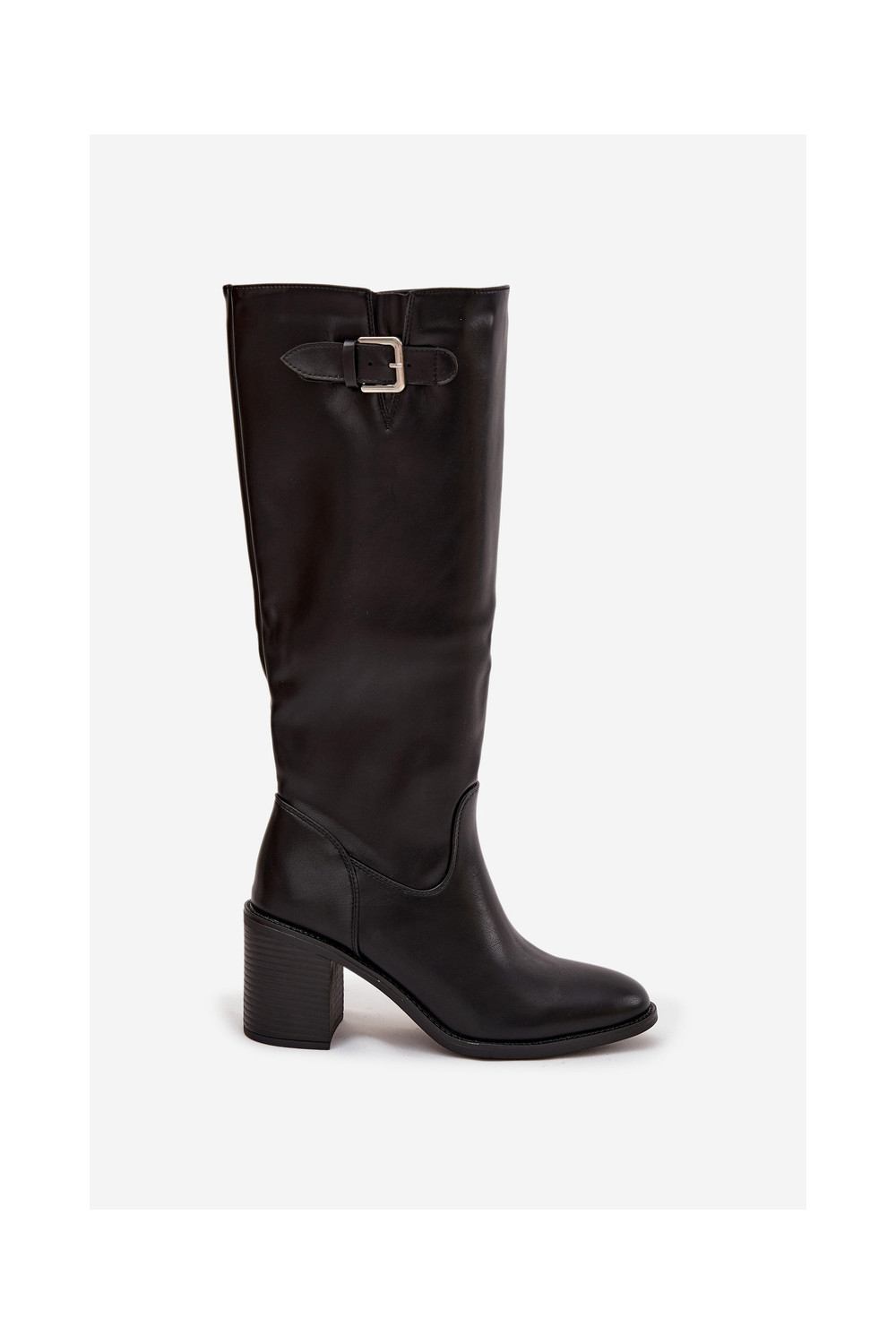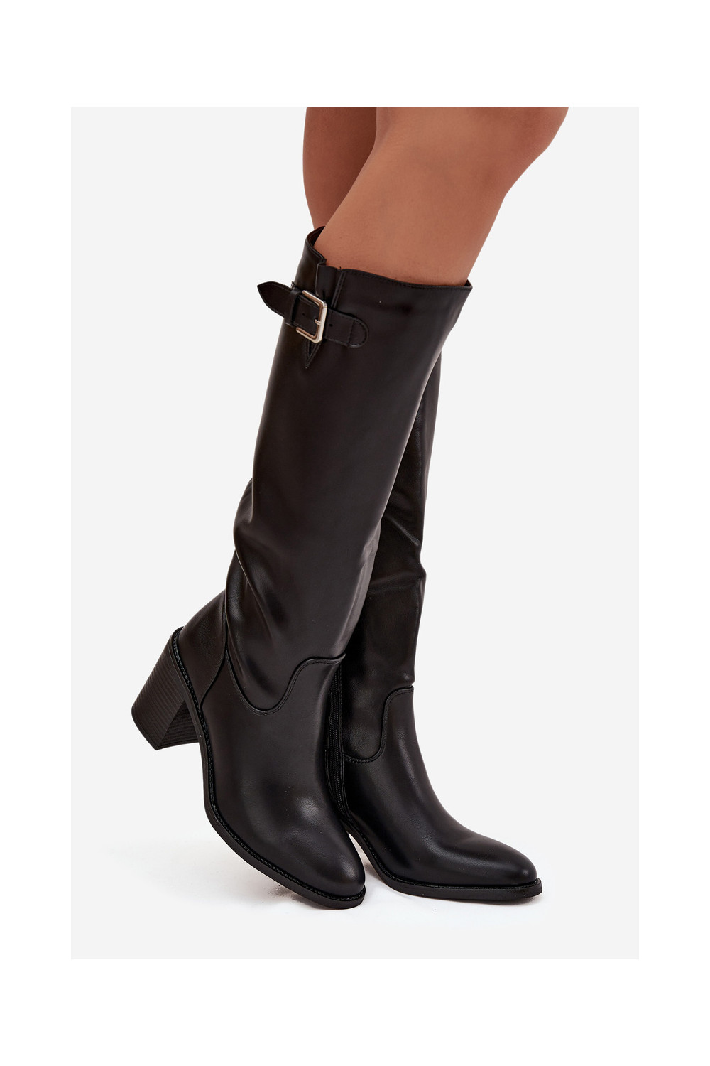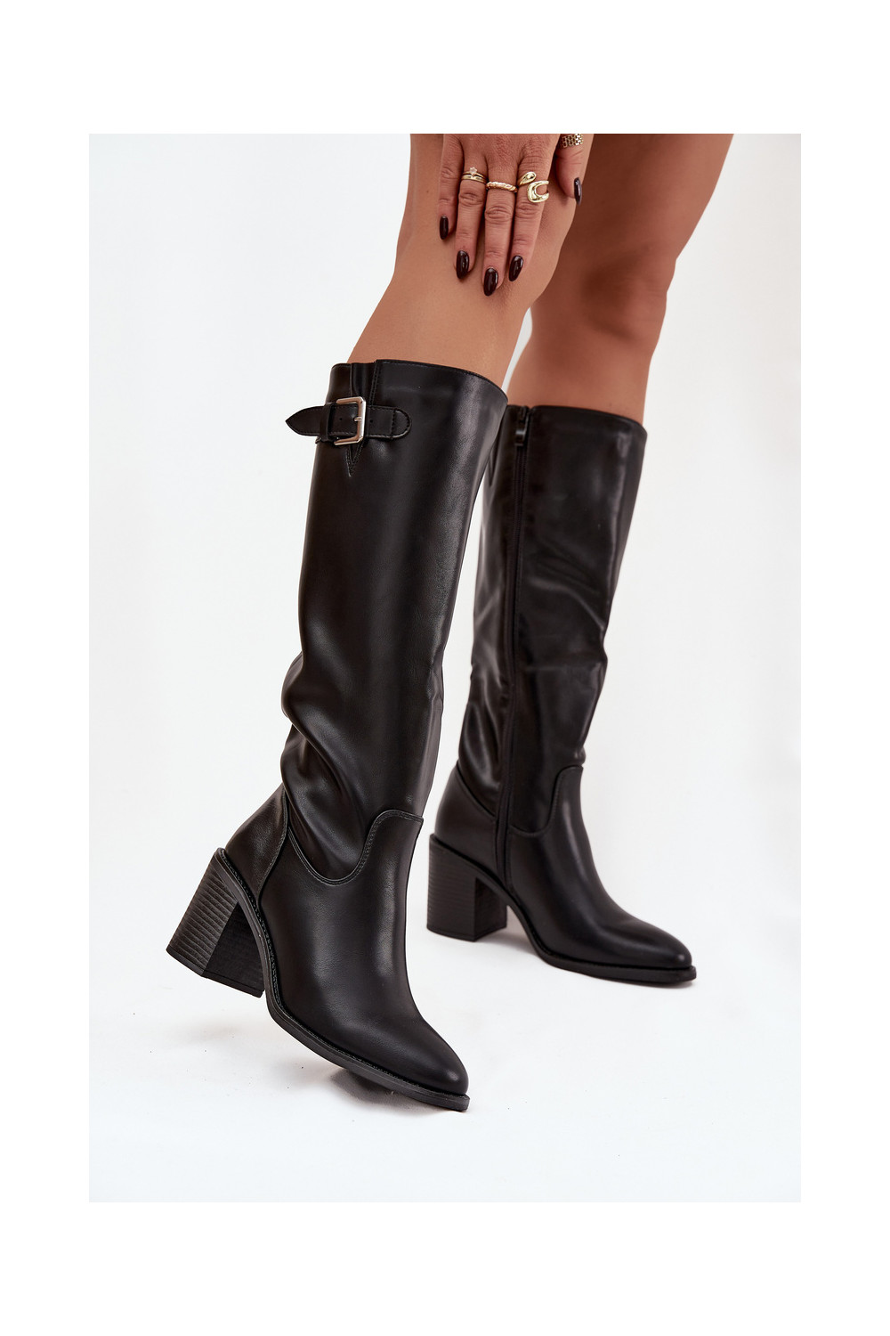 Naisteline kõrged saapad kontsade ja pandlatega musta värvi Brenira