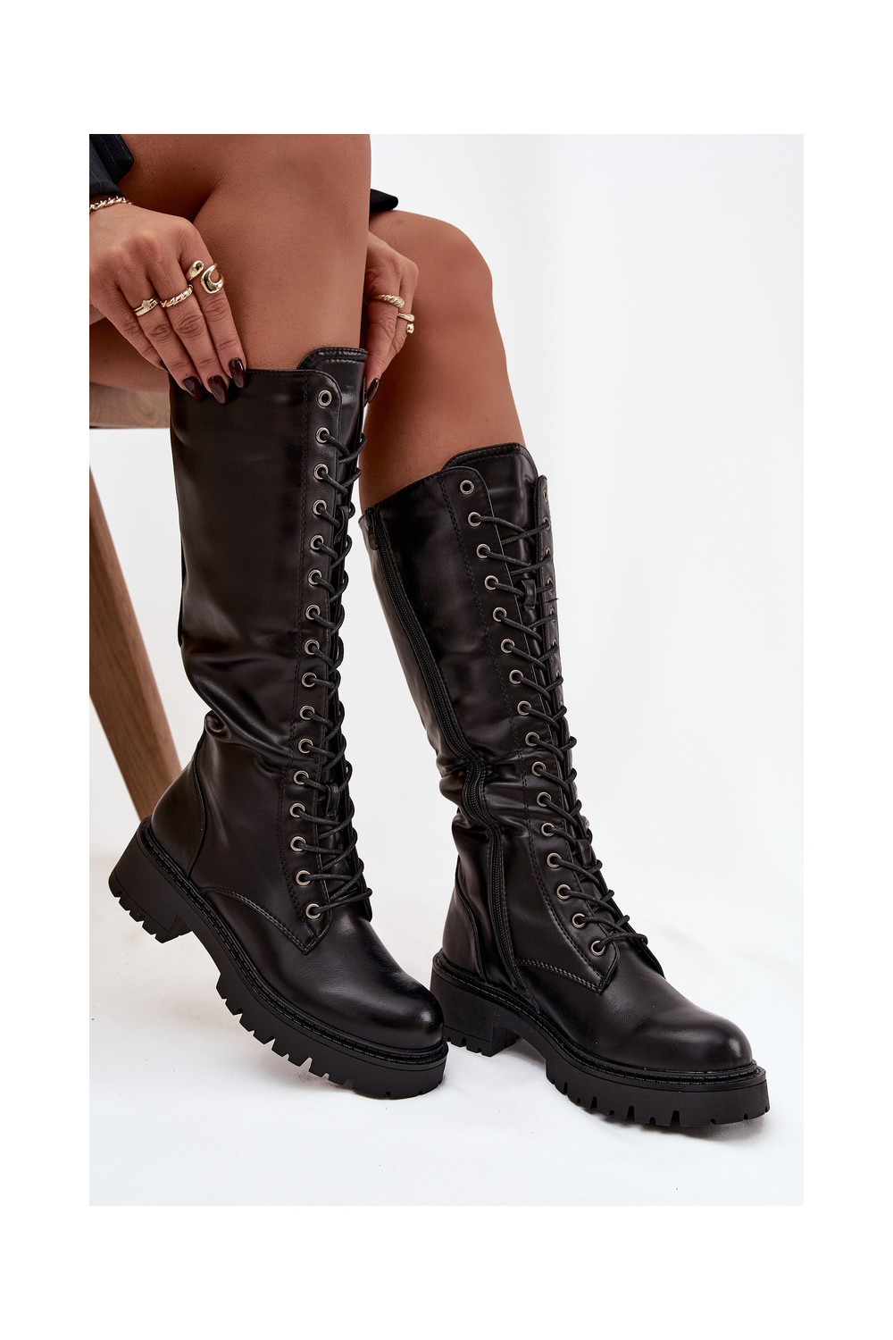 voodriga nööritavad pika säärega saapad nöörsaapad  Must Novissa